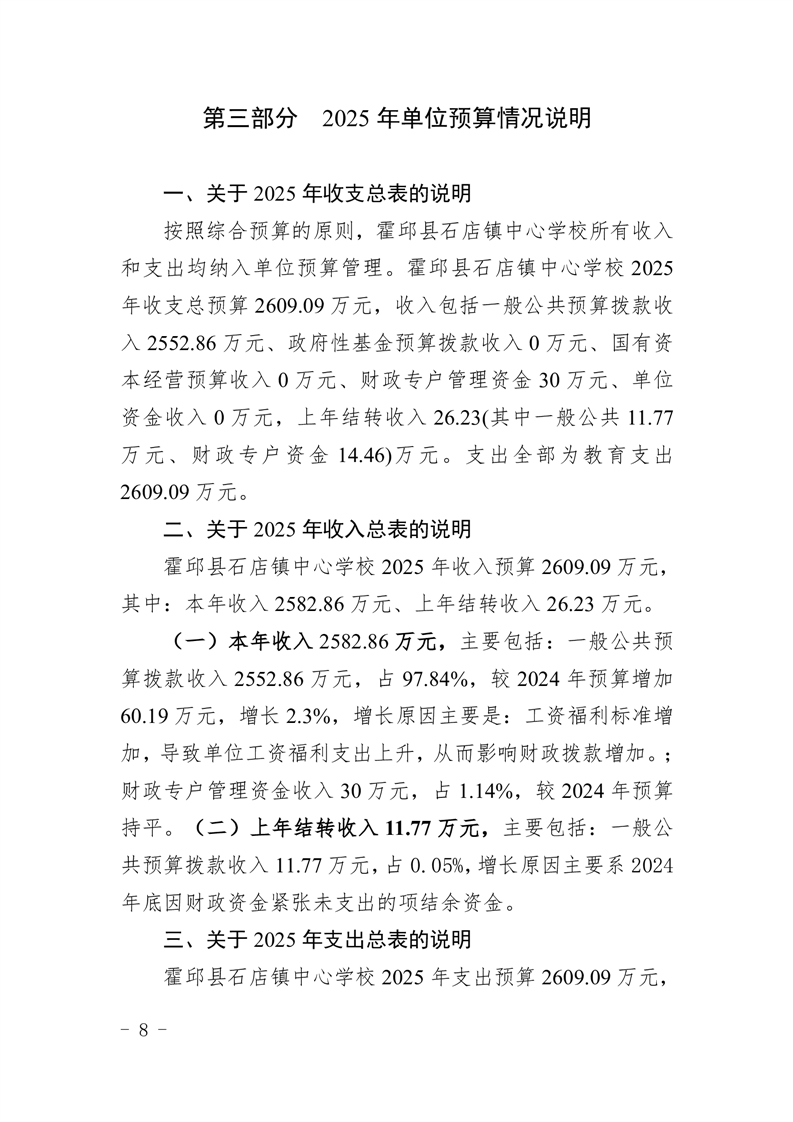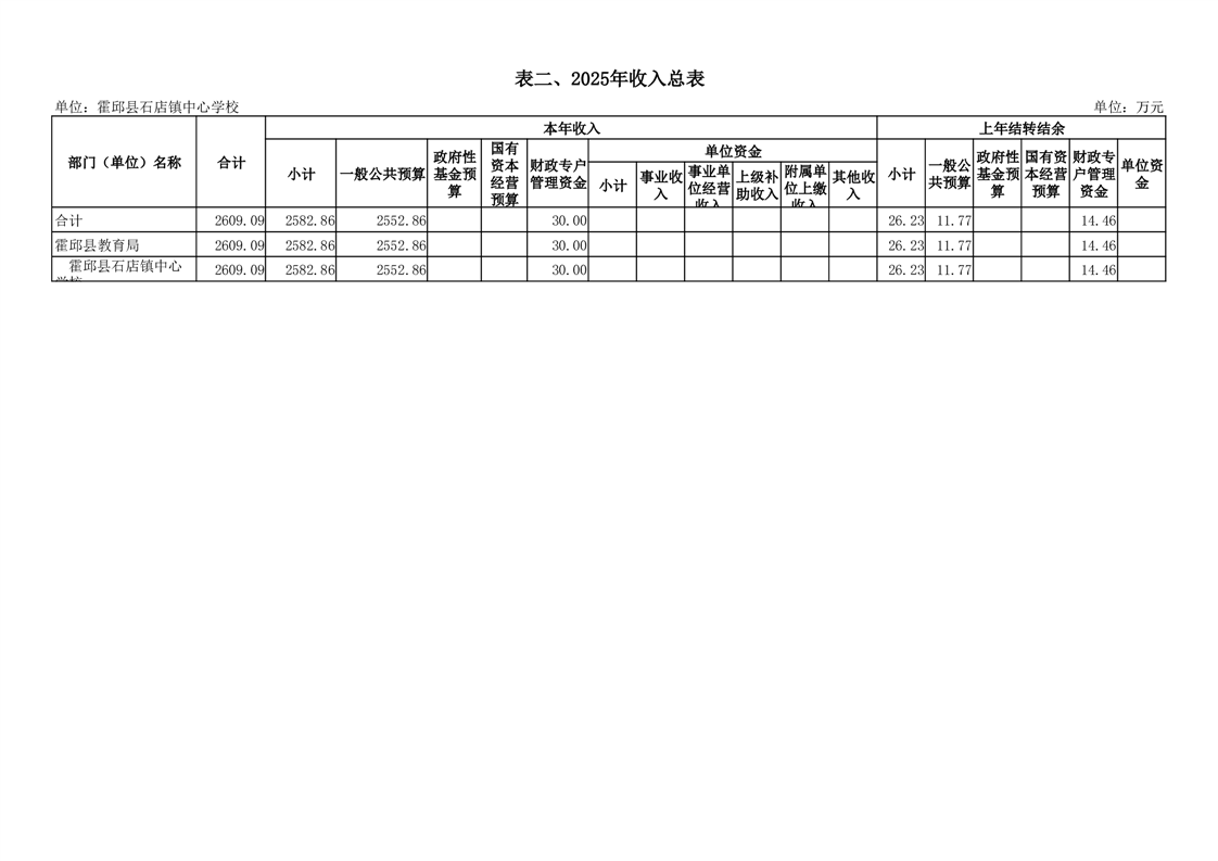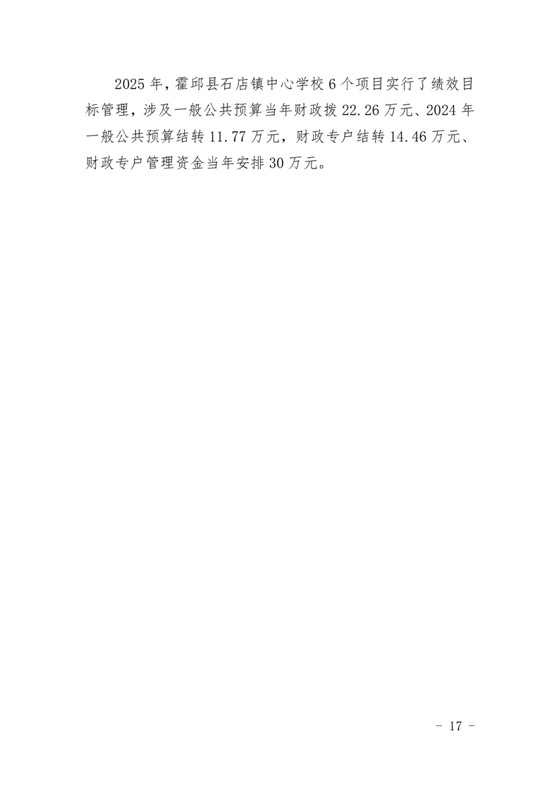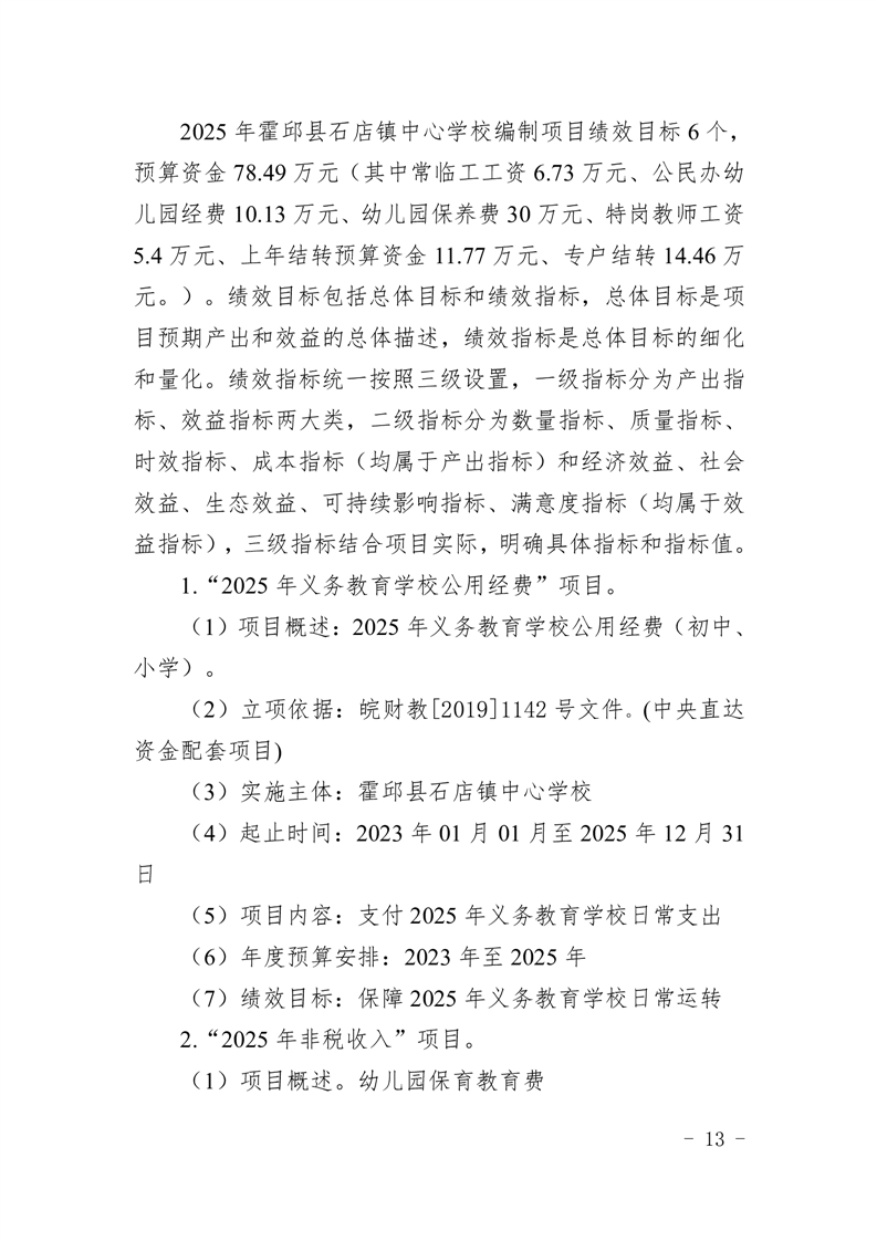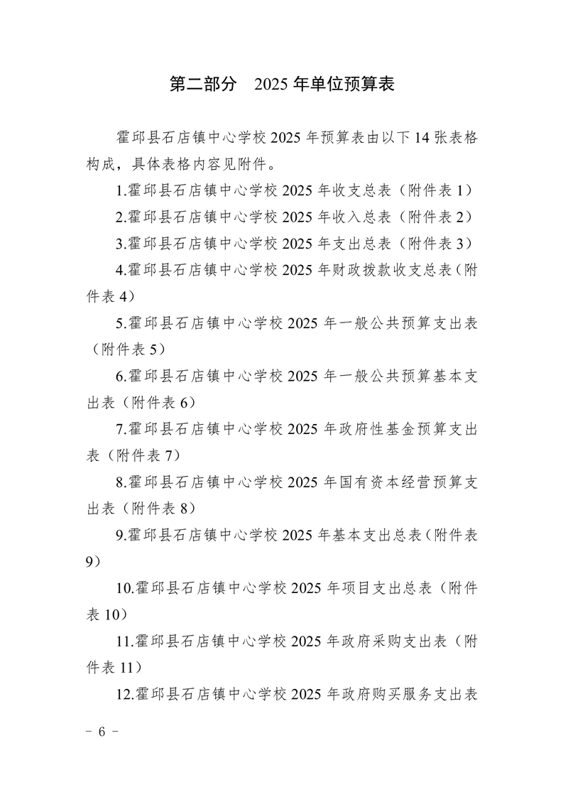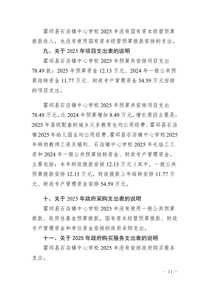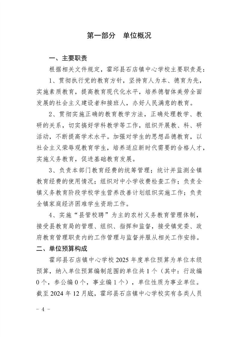 霍邱县石店镇中心学校 2025 年单位预算公开