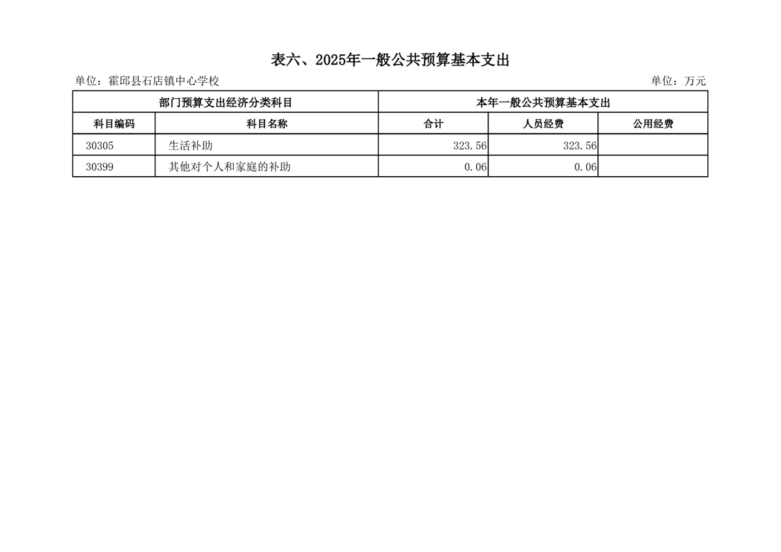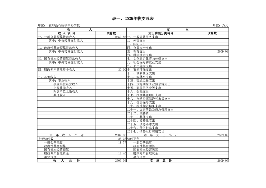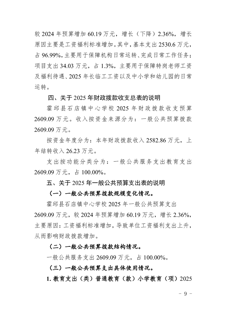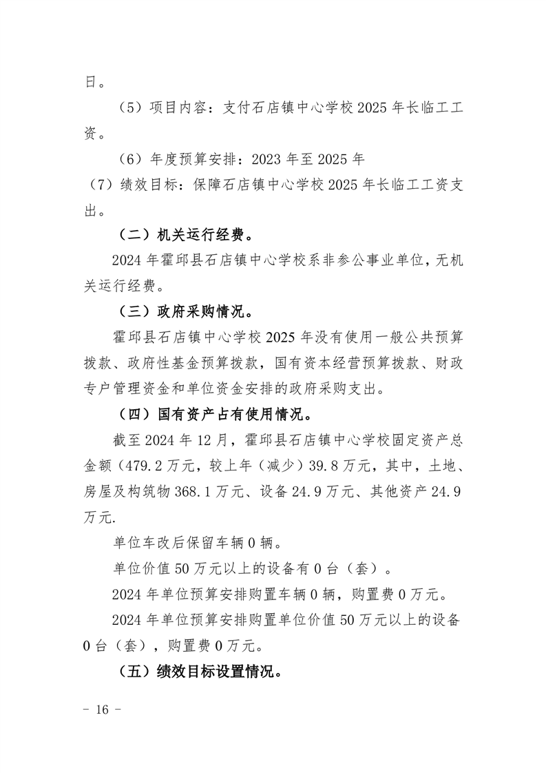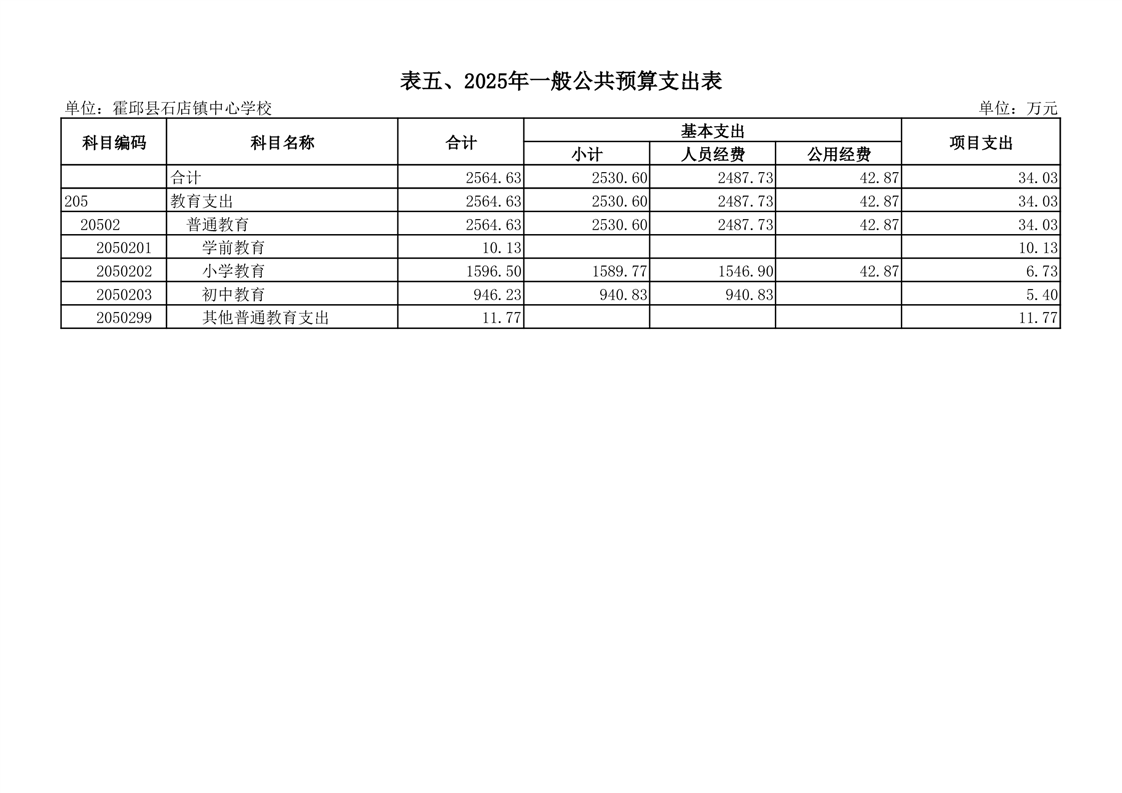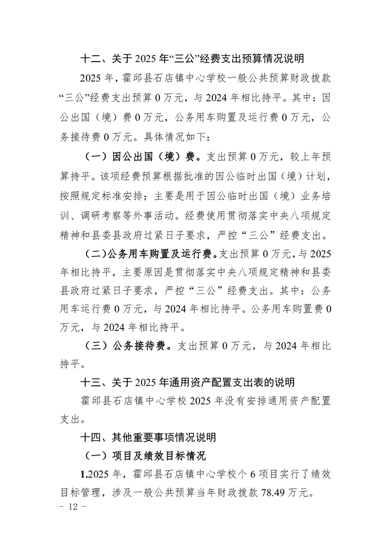 霍邱县石店镇中心学校 2025 年单位预算公开