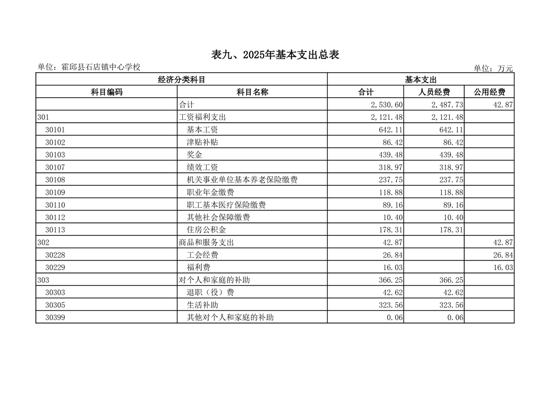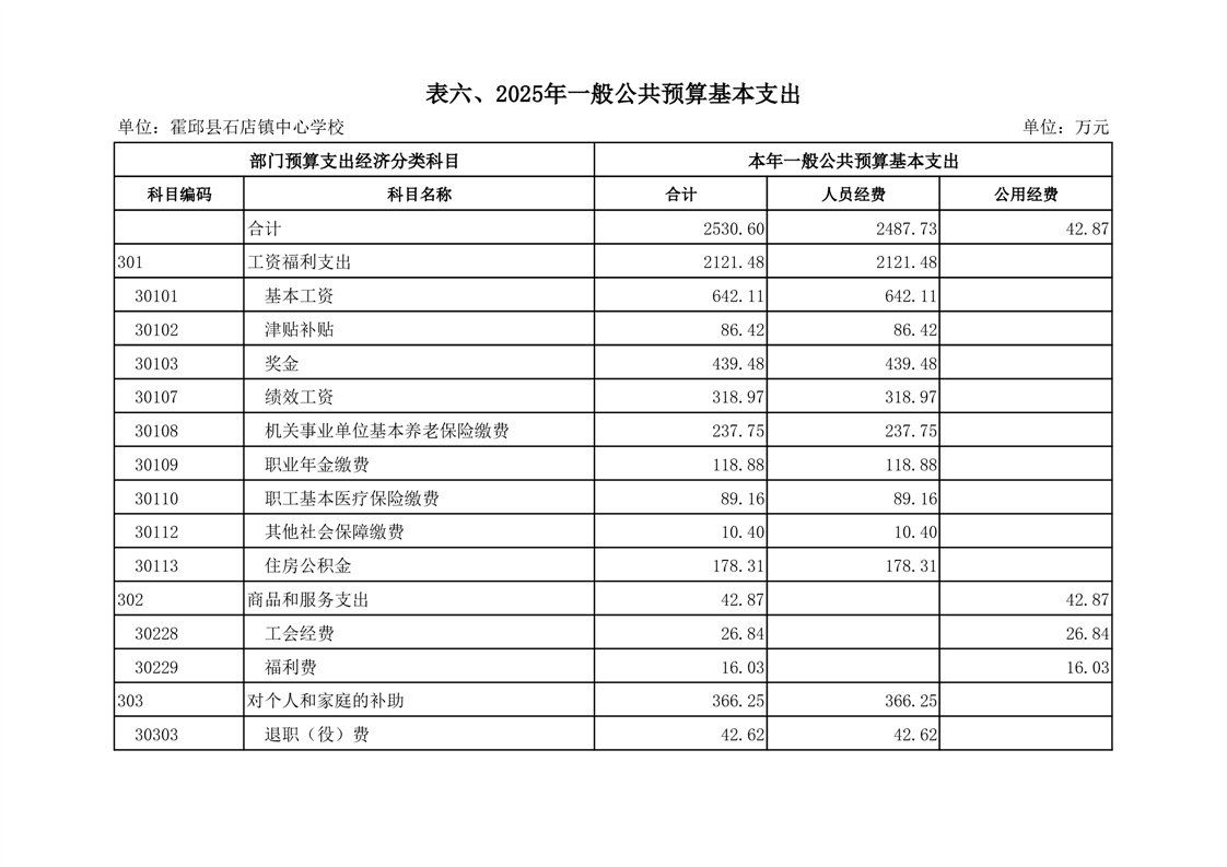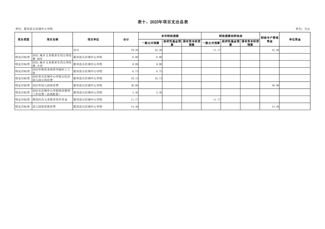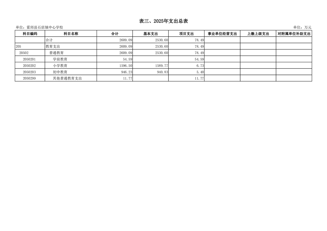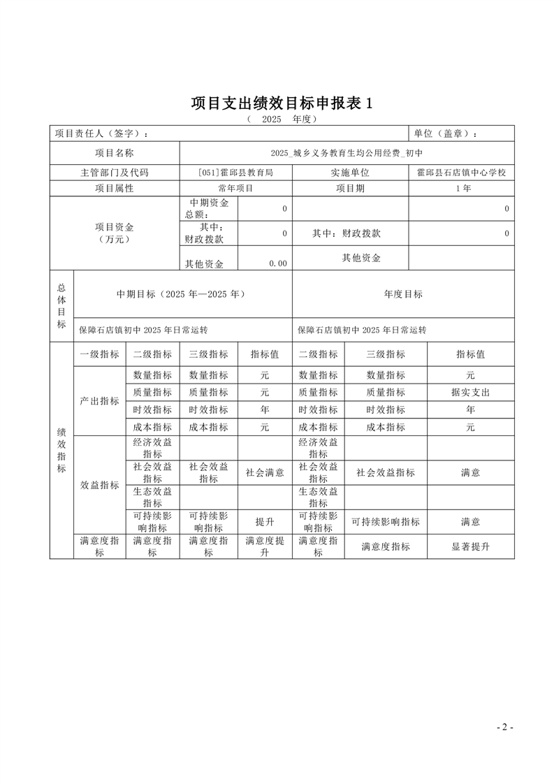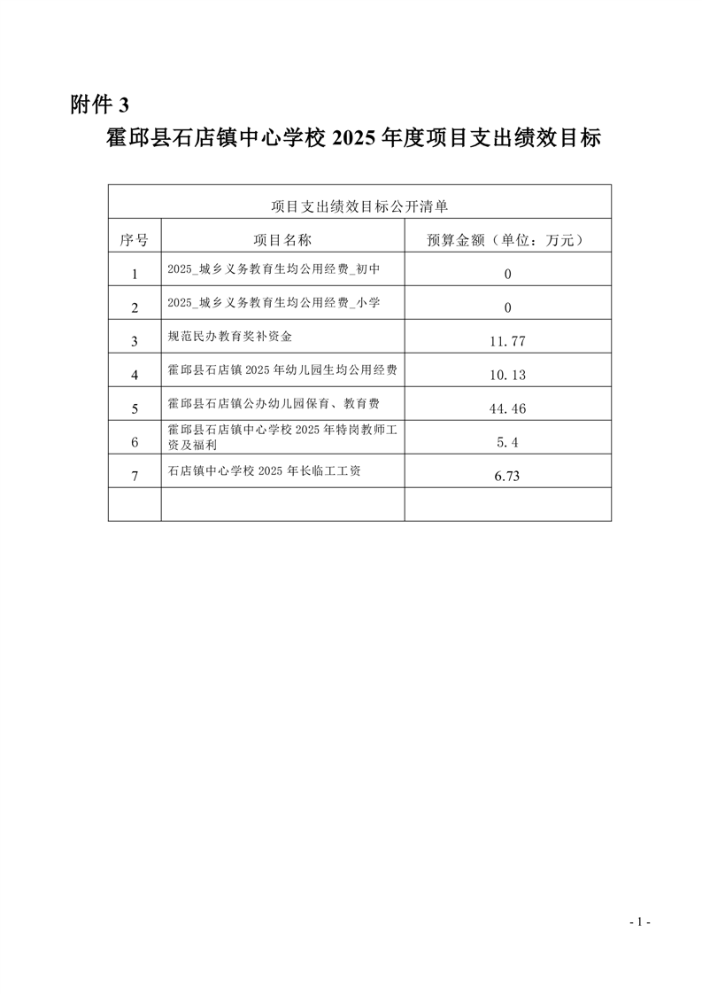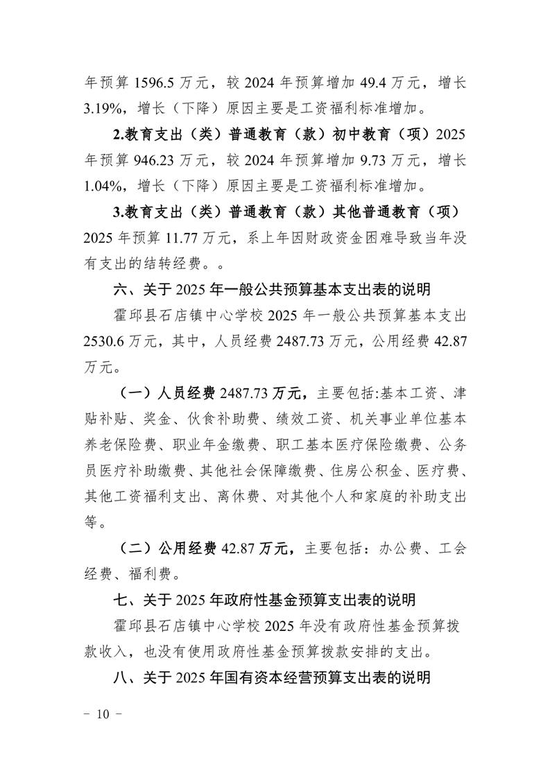 霍邱县石店镇中心学校 2025 年单位预算公开