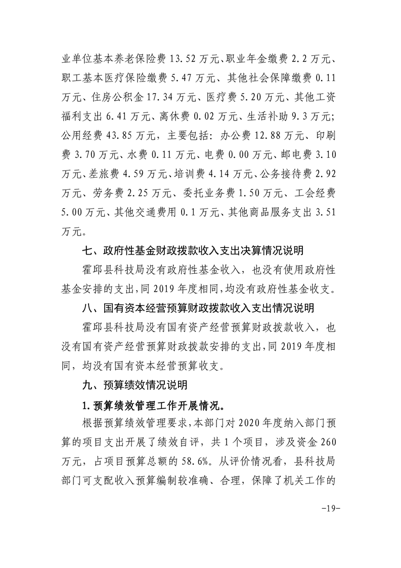霍邱县科技局2020年度部门决算公开