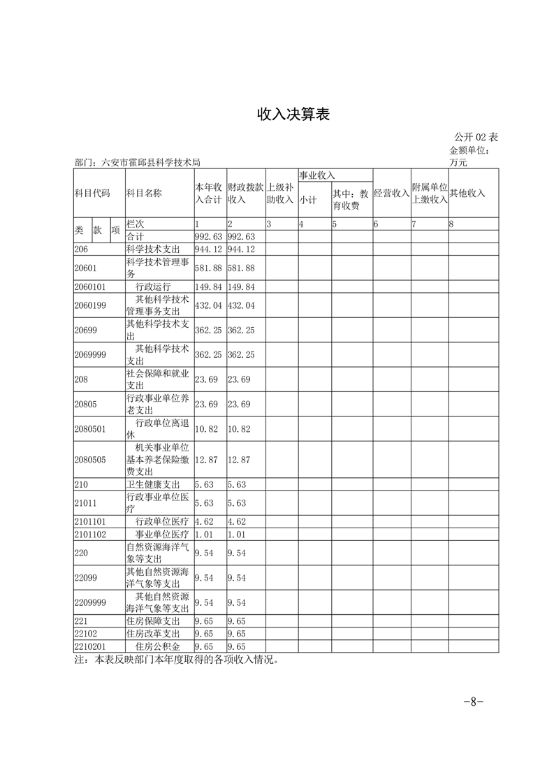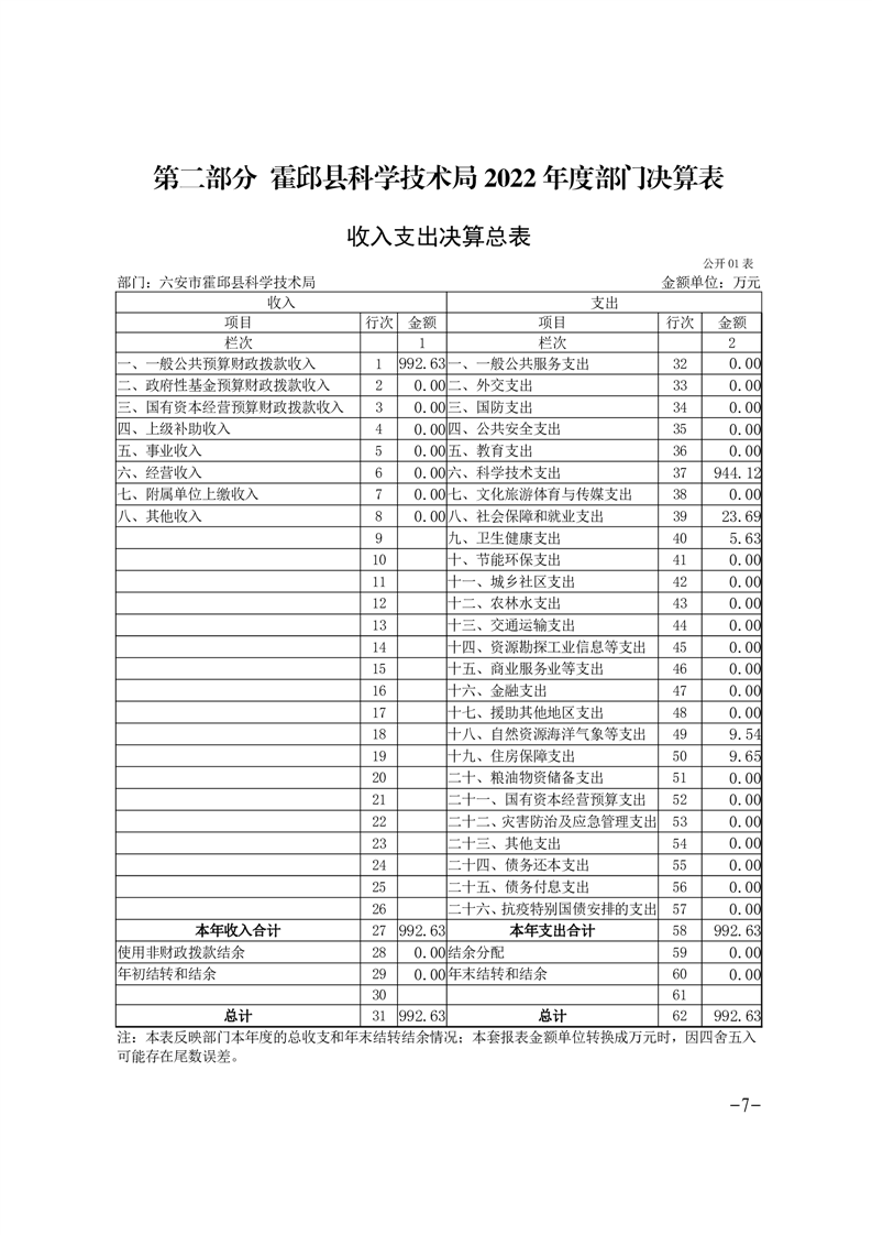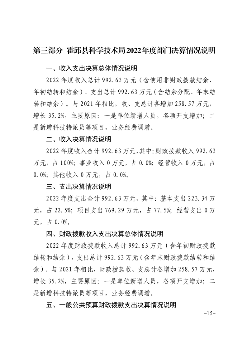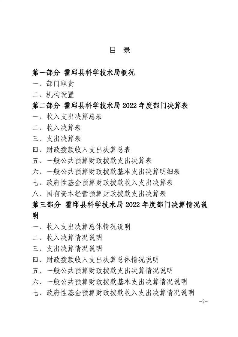 霍邱县科技局2022年度部门决算公开