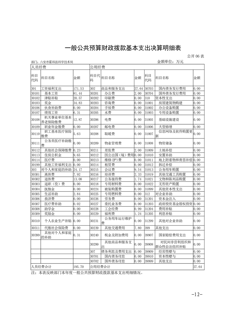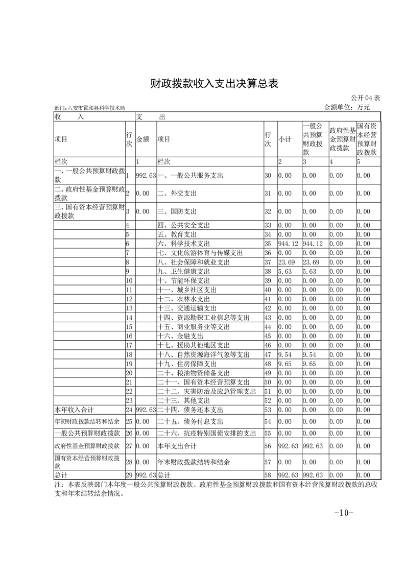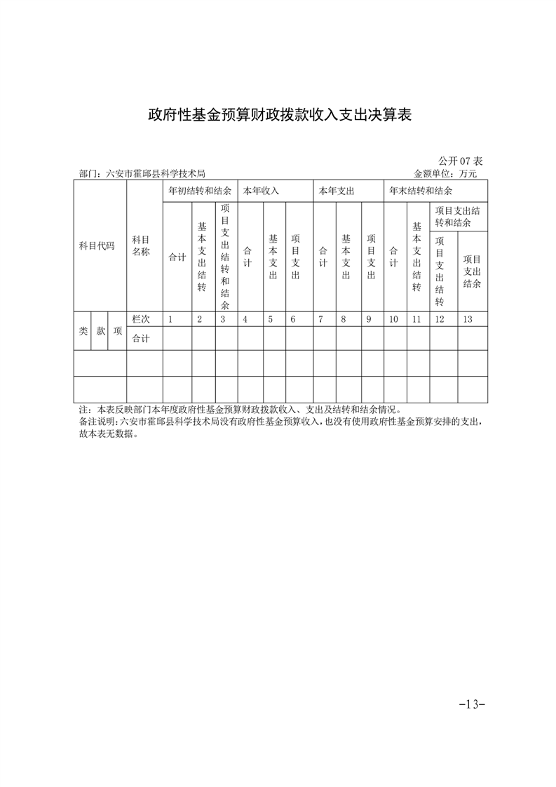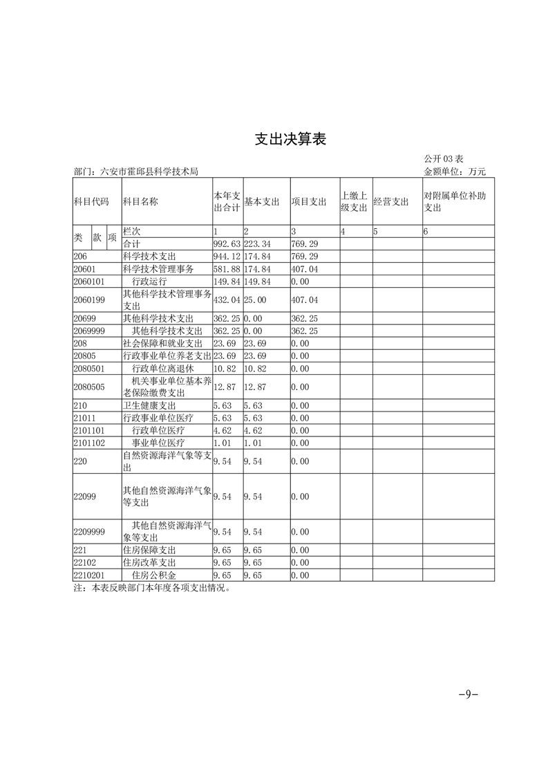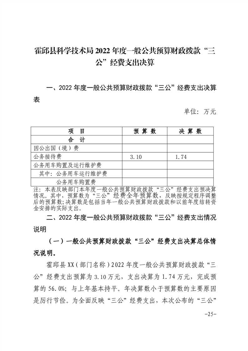 霍邱县科技局2022年度部门决算公开