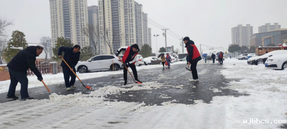 凛冽的寒风、零下5℃的低温、积雪结冰的路面,有的同志的鞋被雪水浸湿了,有的同志没有戴手套,磨伤了手掌,大家的手和脸被冻得通红,但这一切丝毫没有阻挡干部职工扫雪除冰的积极性和热情。经过一天的奋战,周边道路上的积雪被打扫得干干净净,方便了居民群众出行和来往车辆通行,得到来往群众的一致好评。