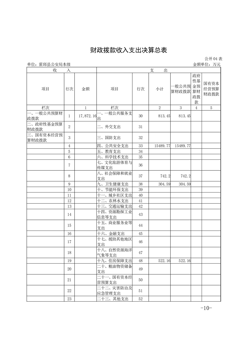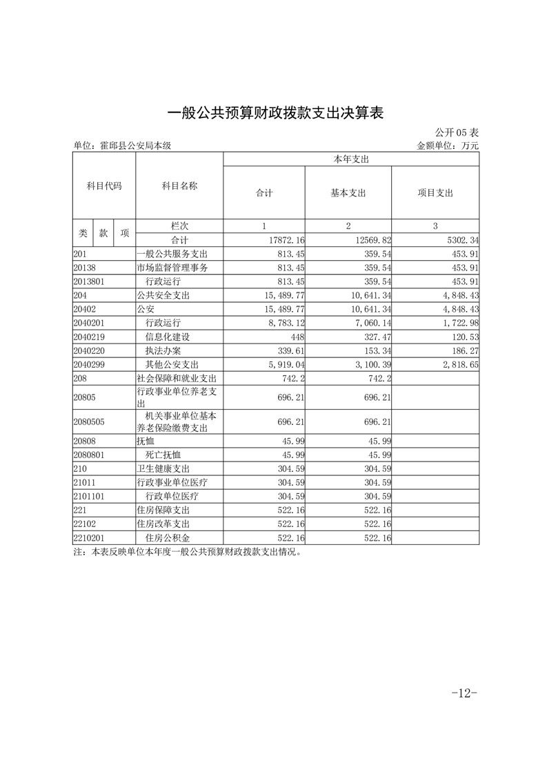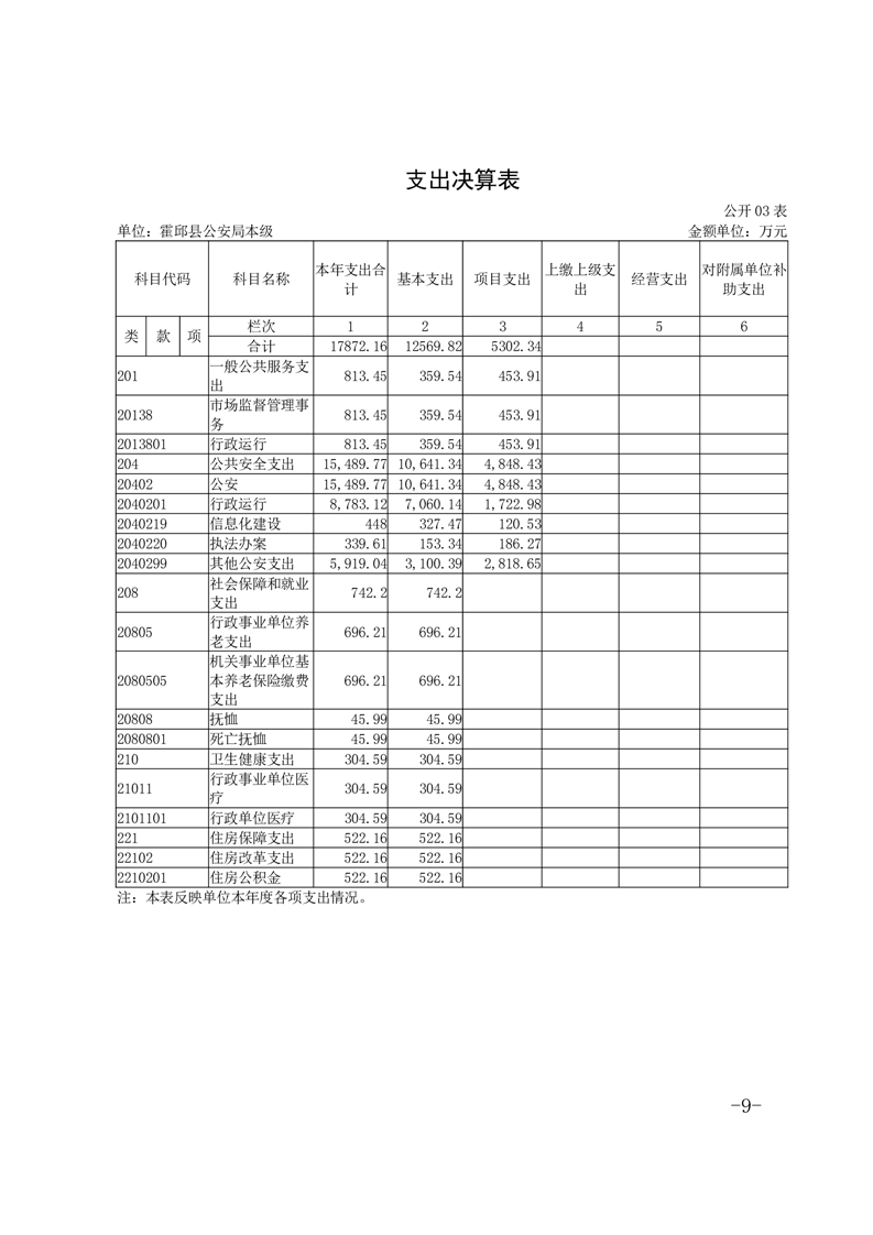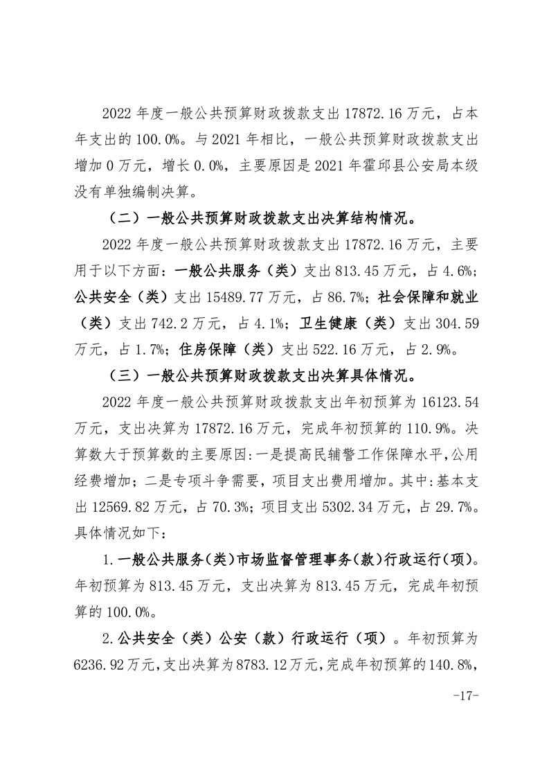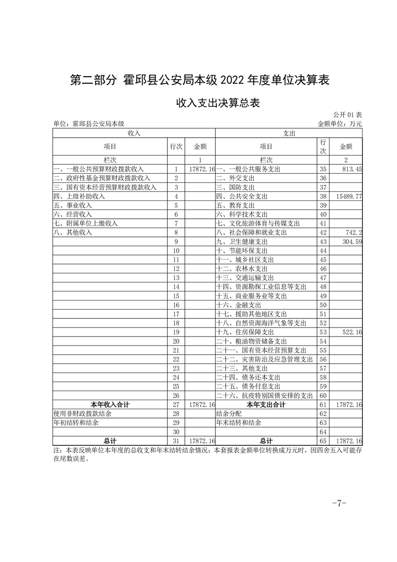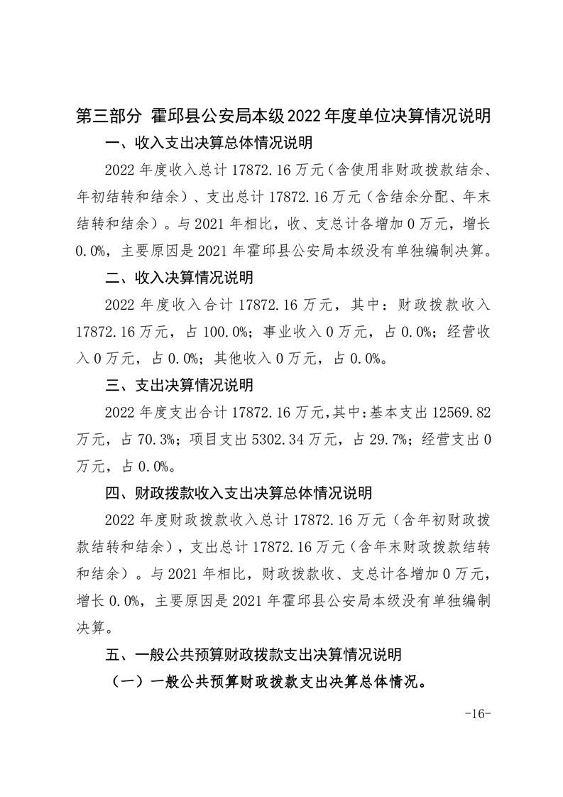 霍邱县公安局本级2022年度单位决算公开(本级)