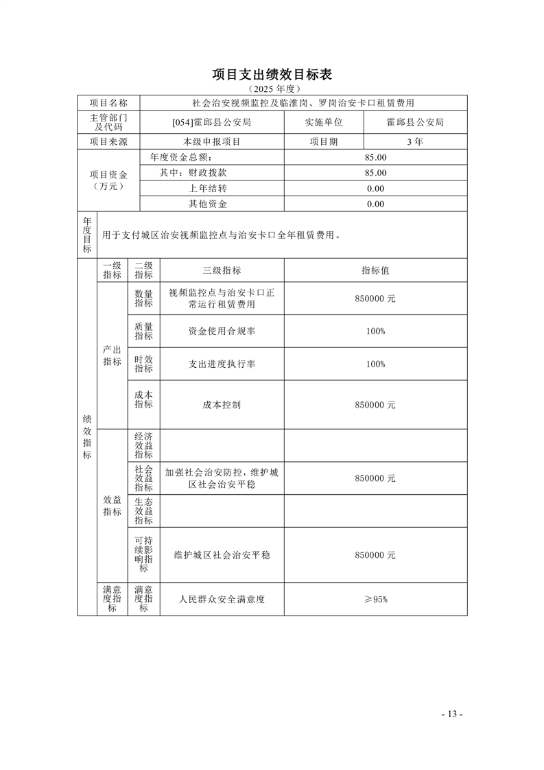 霍邱县公安局2025年部门项目支出绩效目标公开