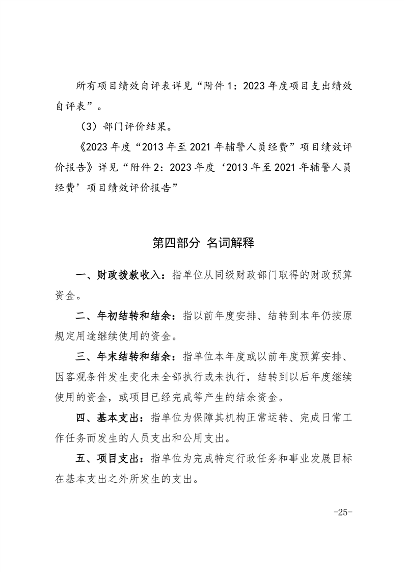 2023年度项目支出绩效自评表及2023年度“2013年至2021年辅警人员经费”项目绩效评价报告.pdf