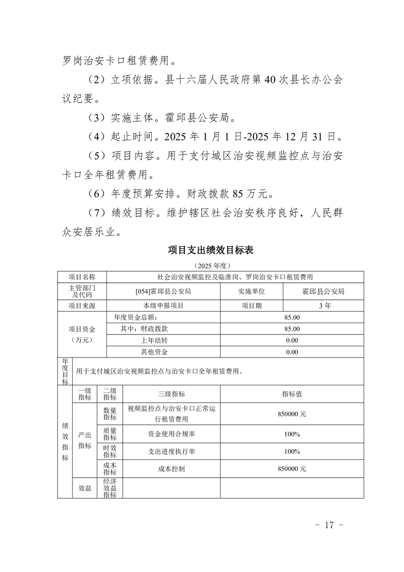 霍邱县公安局(本级)2025年单位项目支出绩效目标公开.pdf