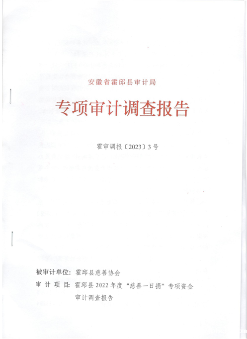 霍邱县2022年度“慈善一日捐专项资金审计调查报告