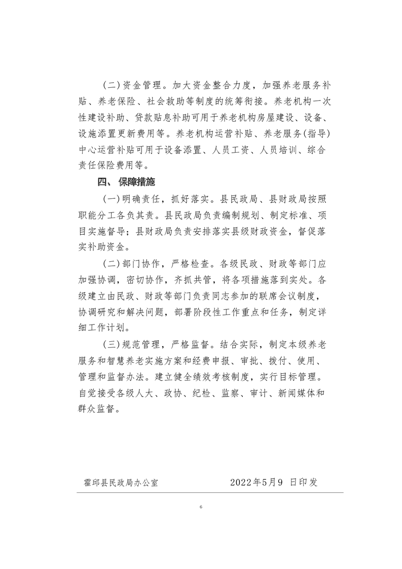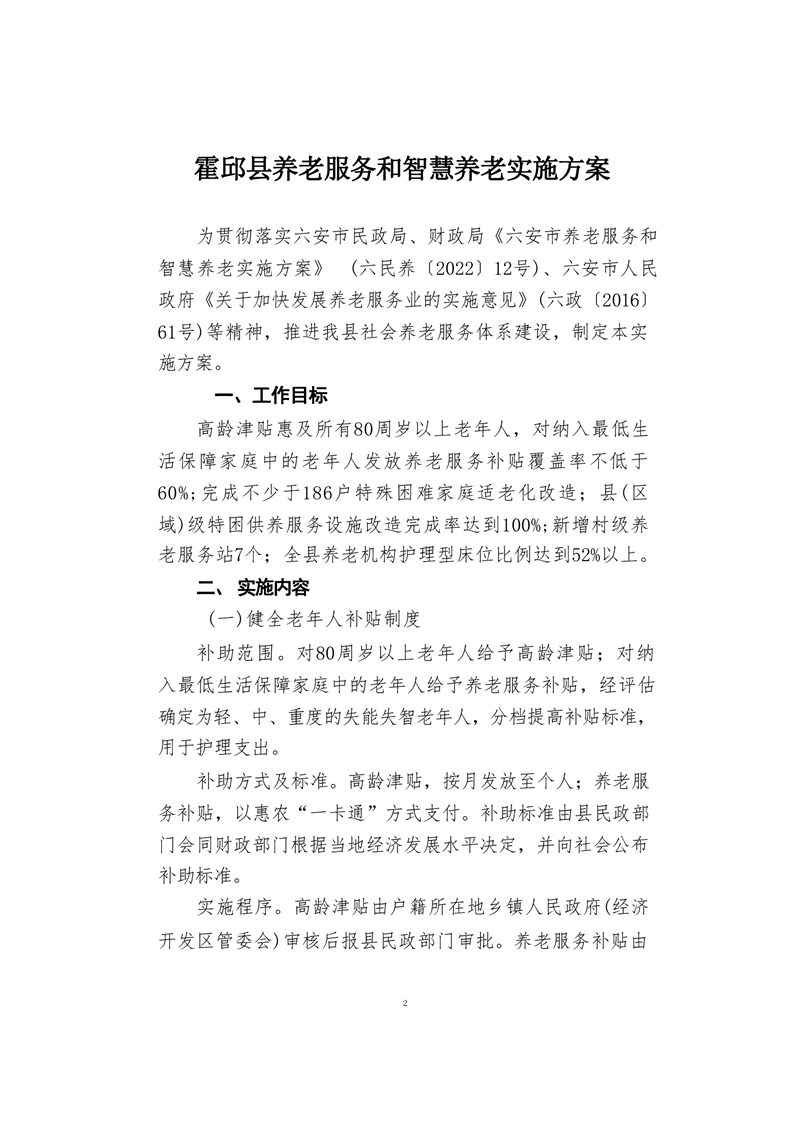 霍邱县民政局霍邱县财政局关于印发《霍邱县养老服务和智慧养老实施方案》的通知