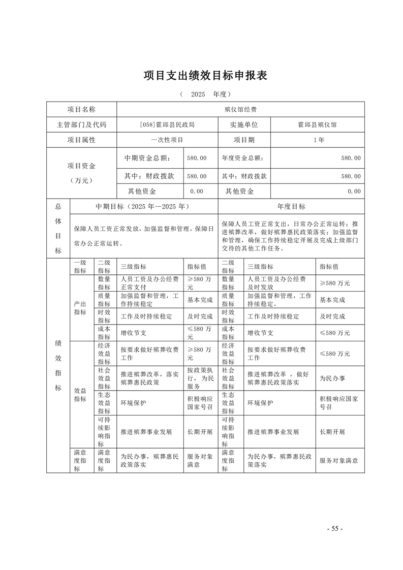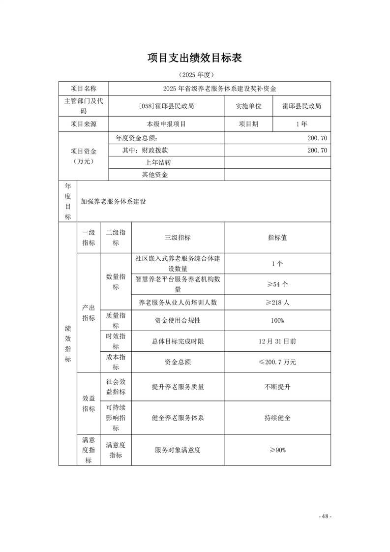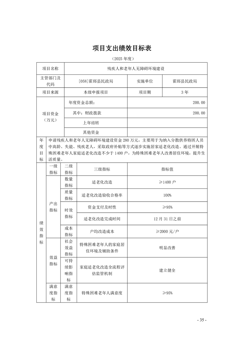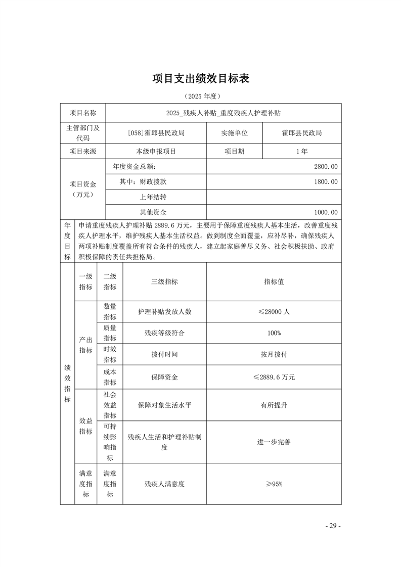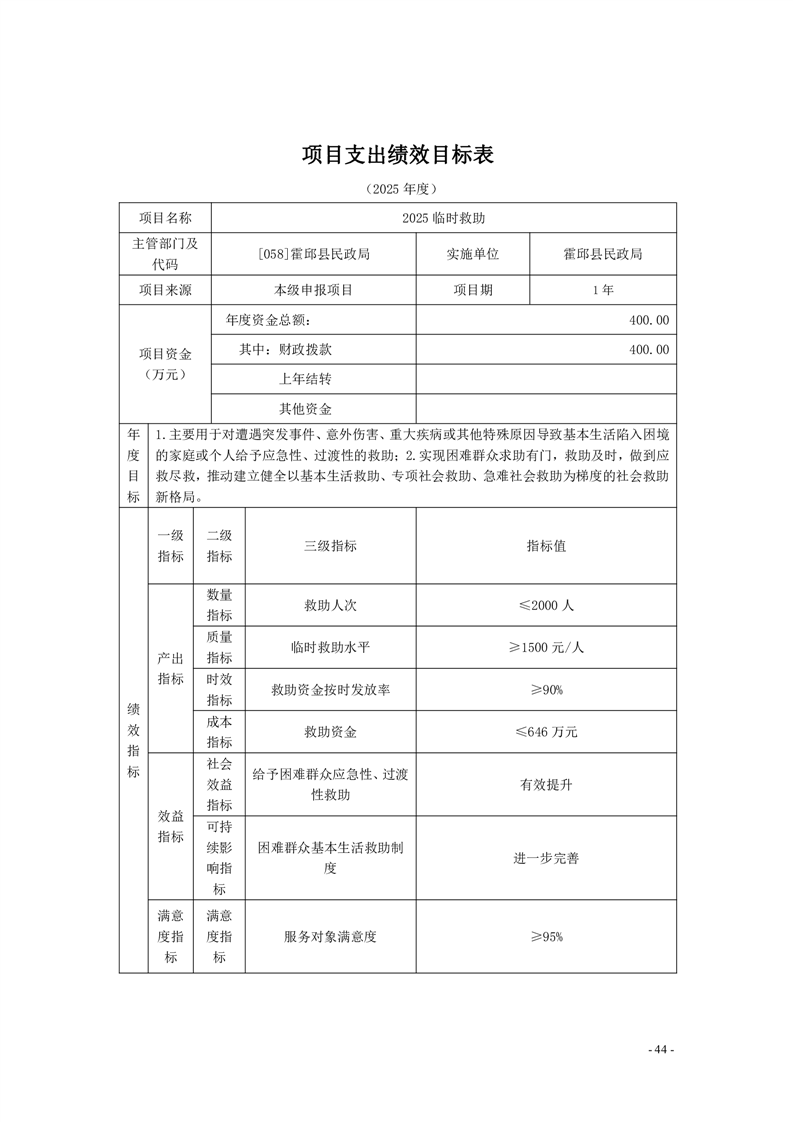 霍邱县民政局2025年部门项目支出绩效目标表