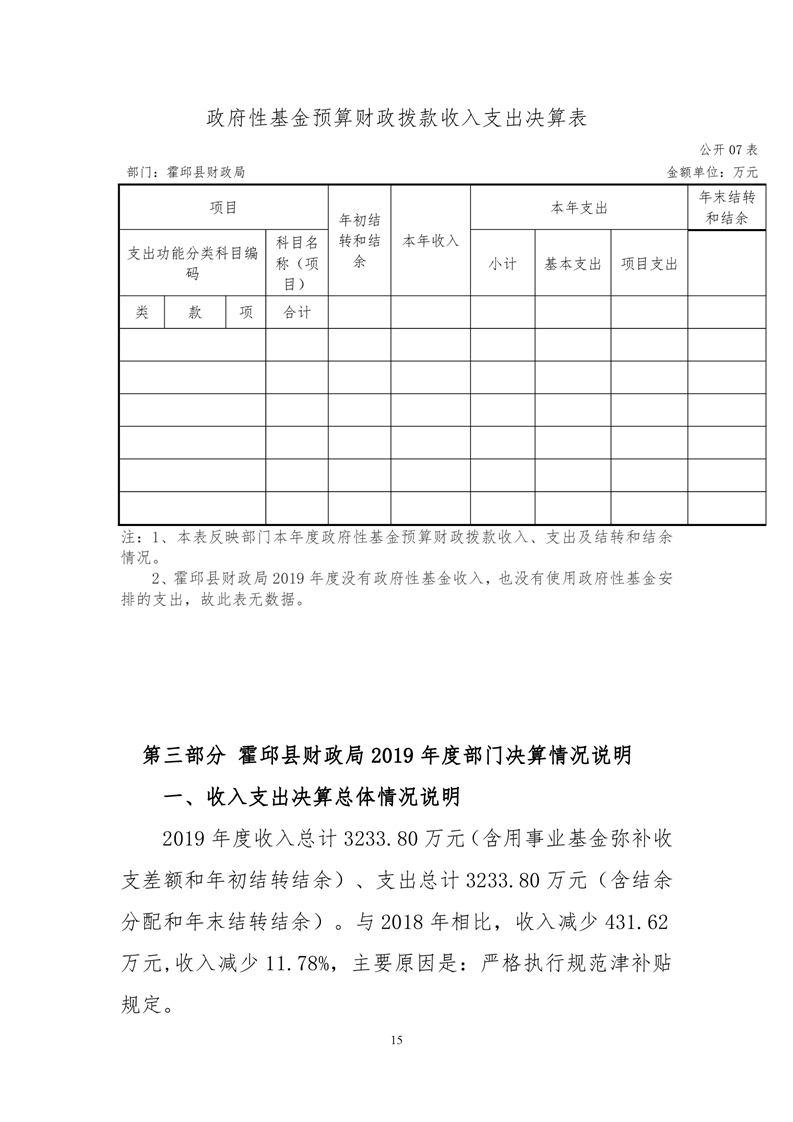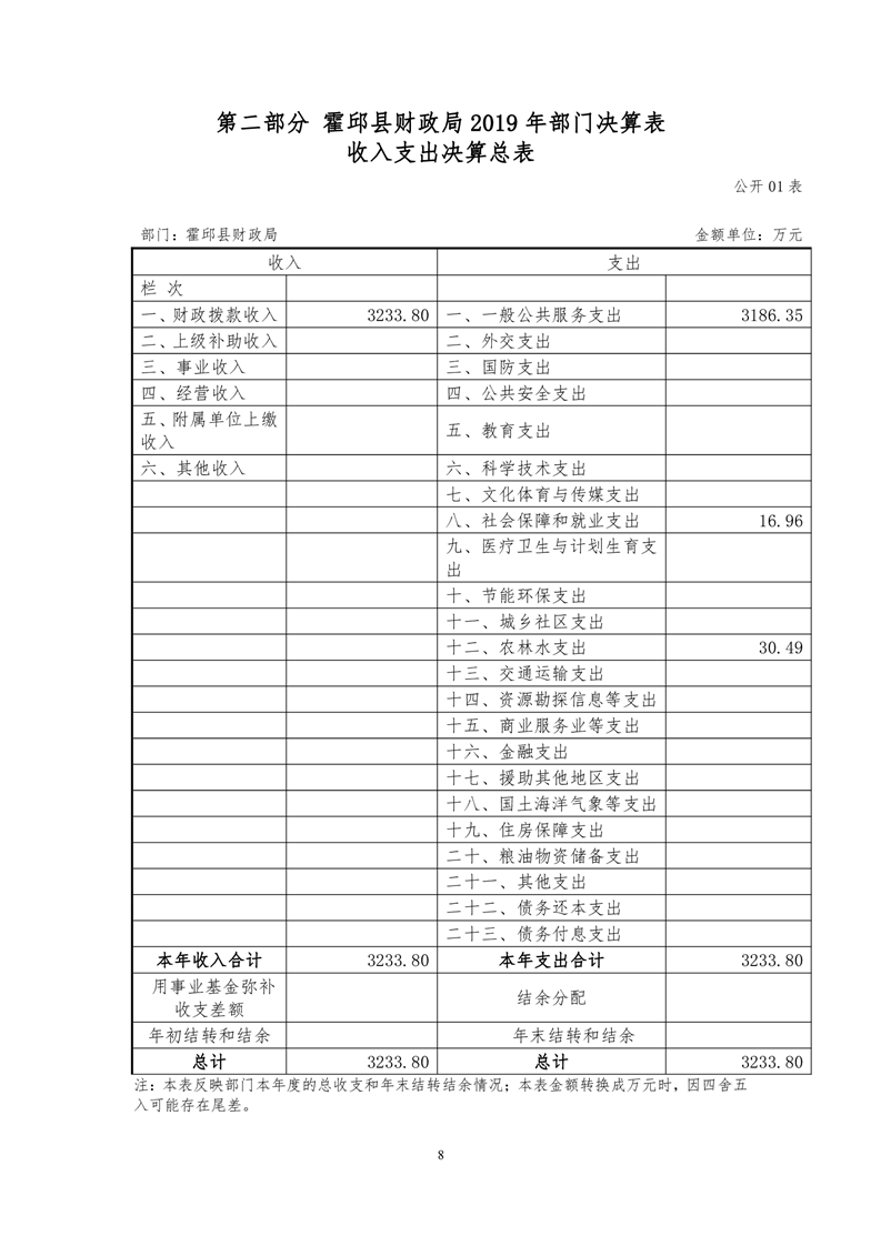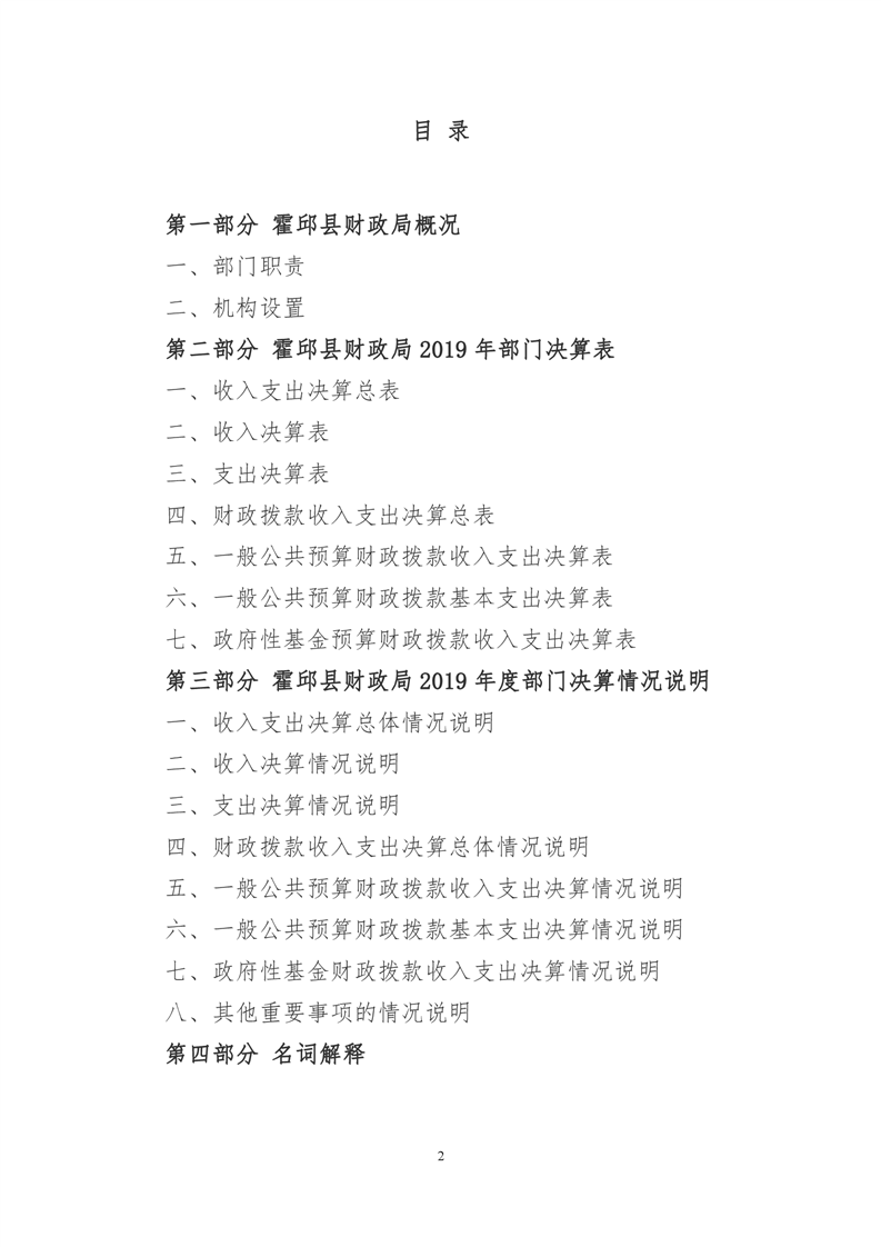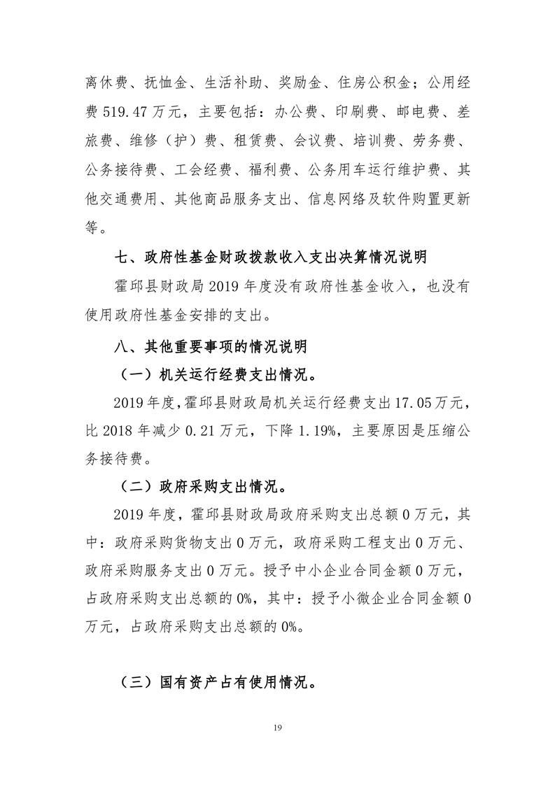 霍邱县财政局2019年决算公开