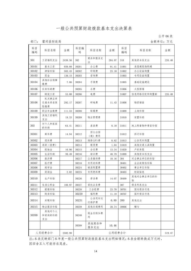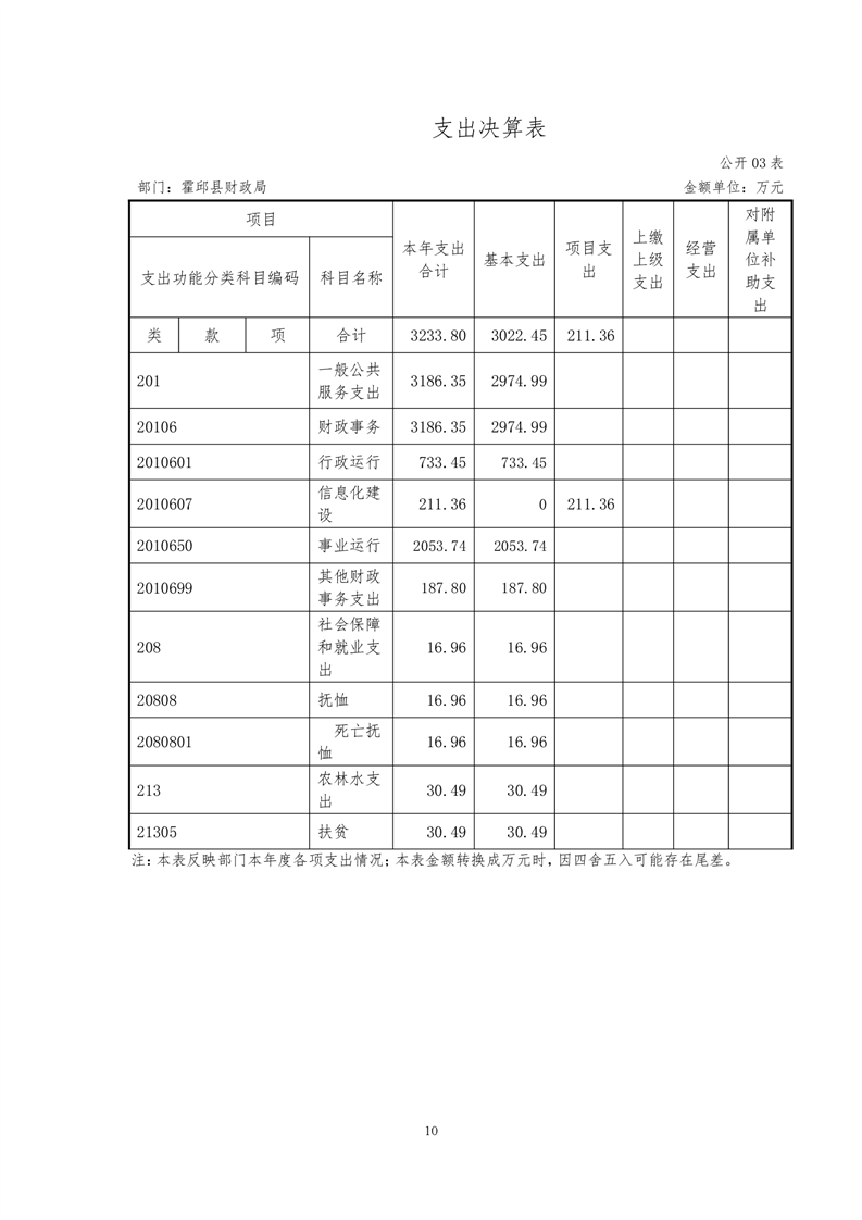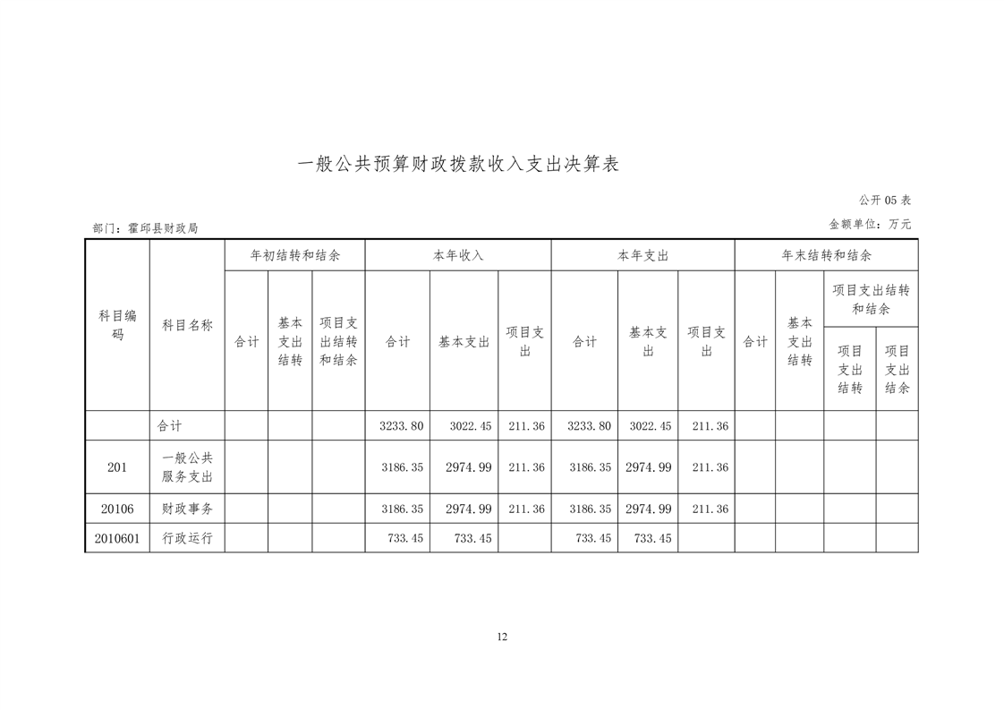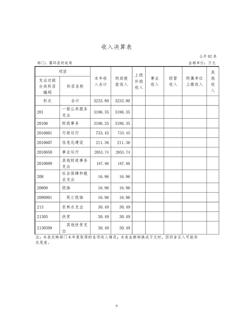 霍邱县财政局2019年决算公开