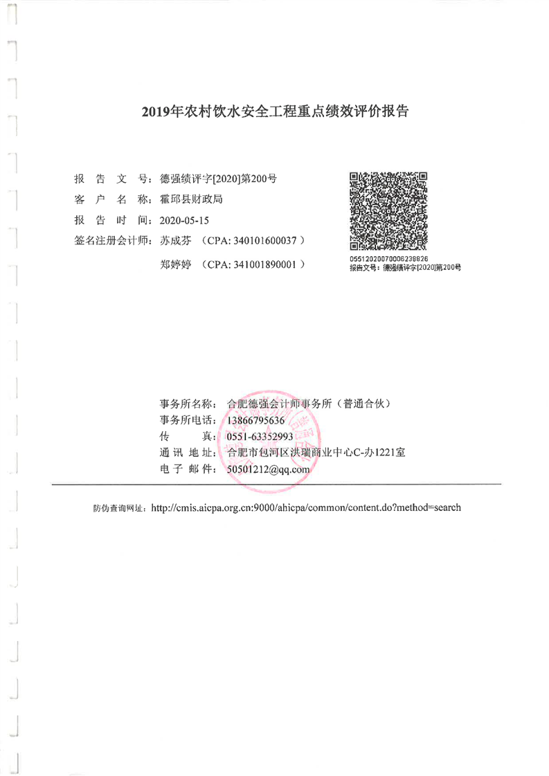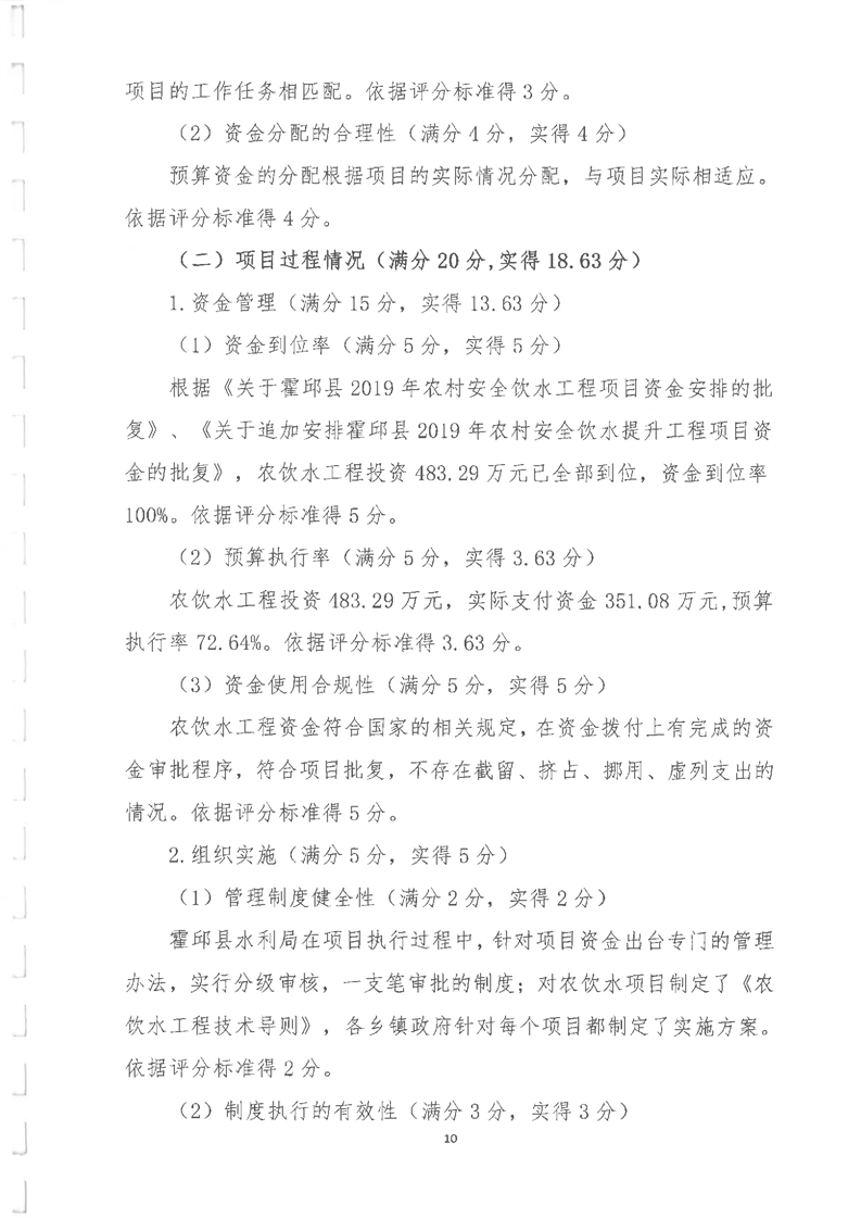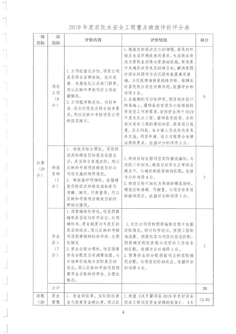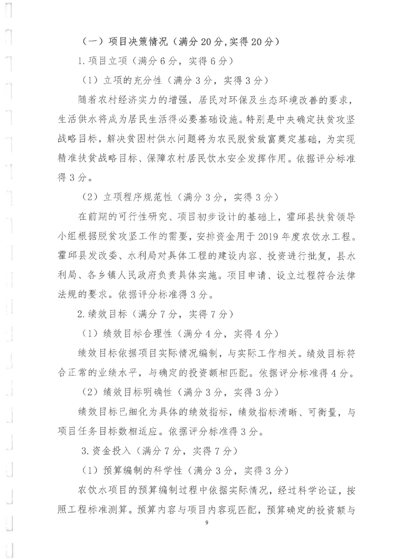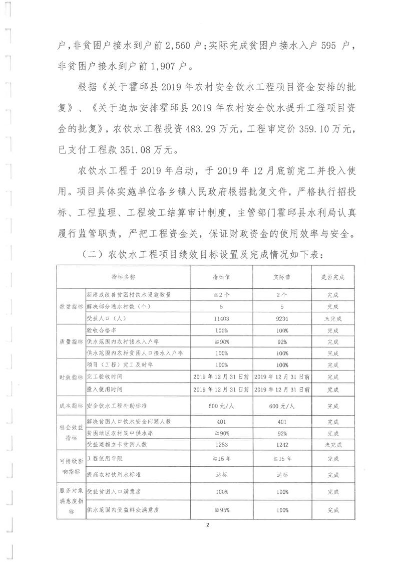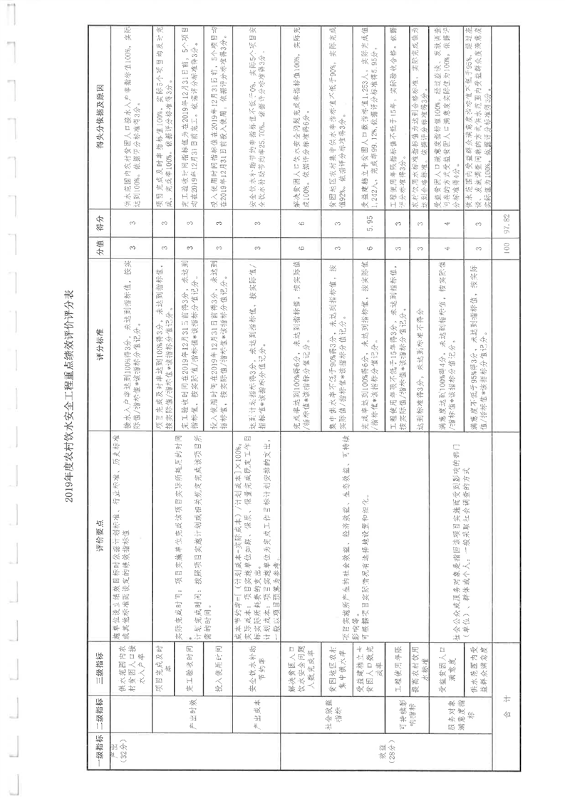 2019年农饮水项目重点评价报告及附表