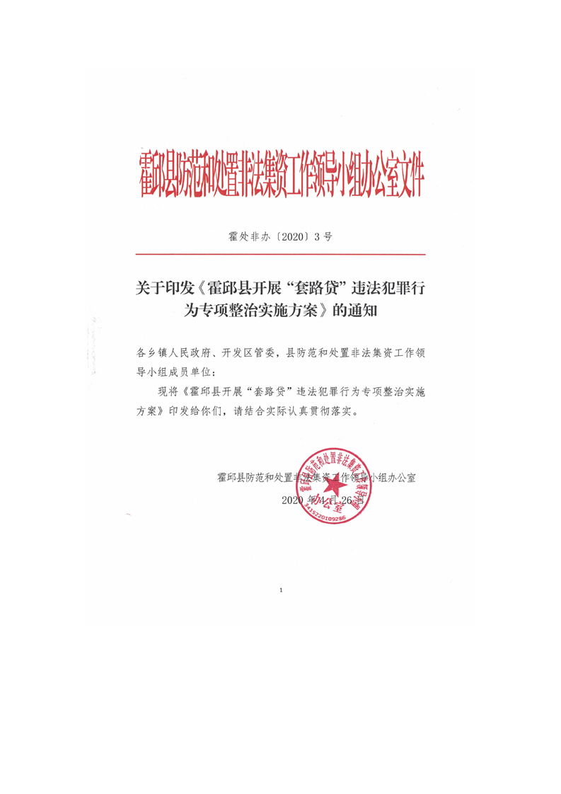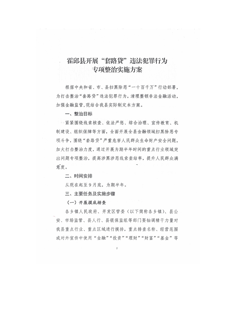 关于印发《霍邱县开展“套路贷”违法犯罪行为专项整治实施方案》的通知