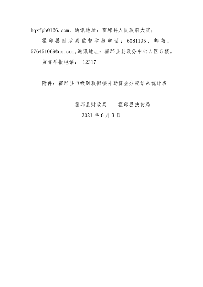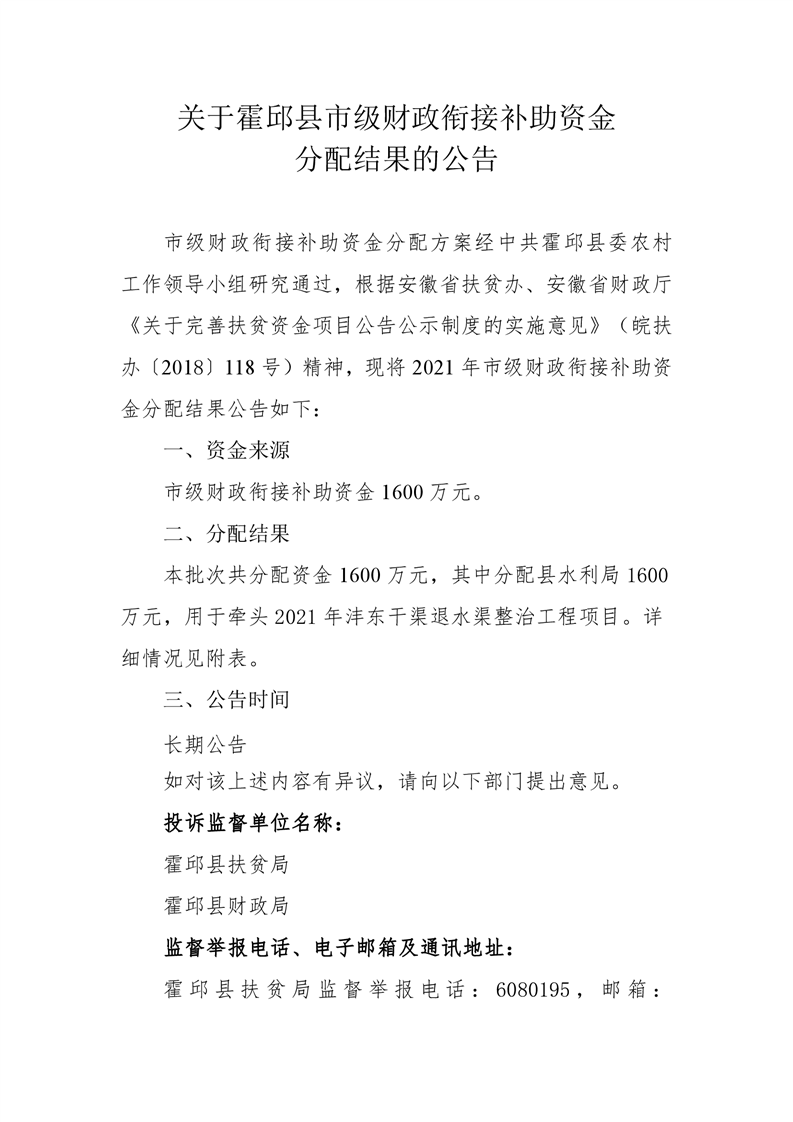 关于霍邱县市级财政衔接补助资金分配结果的公告9175
