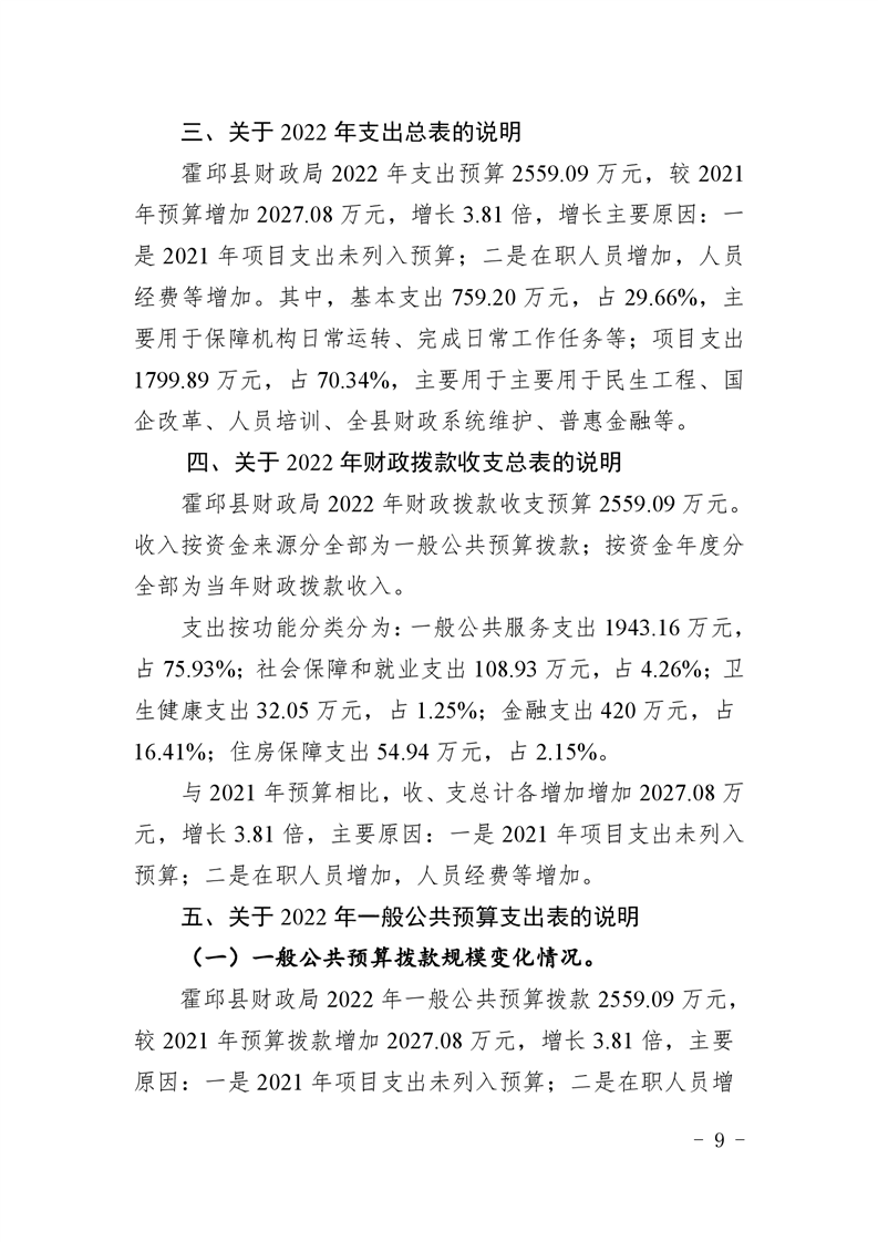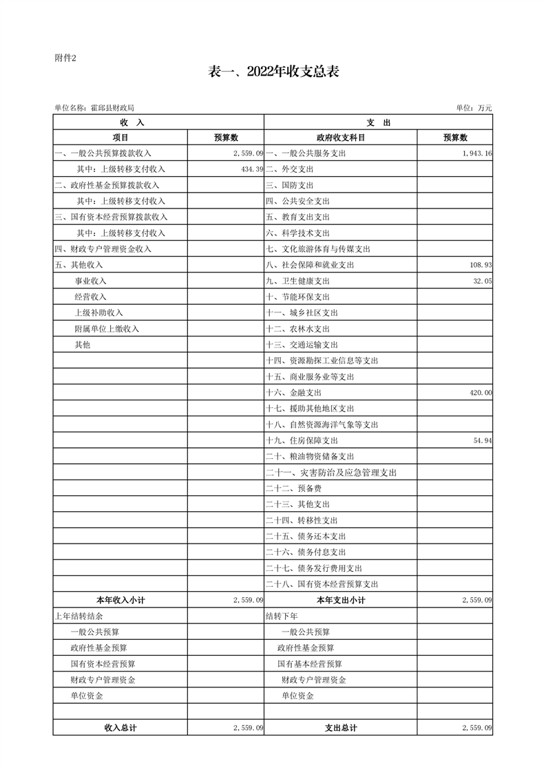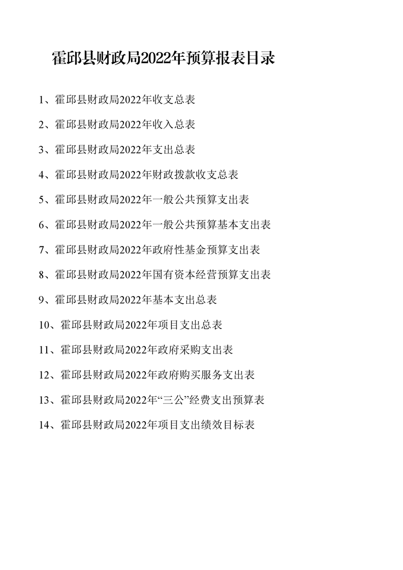 霍邱县财政局2022年单位预算公开