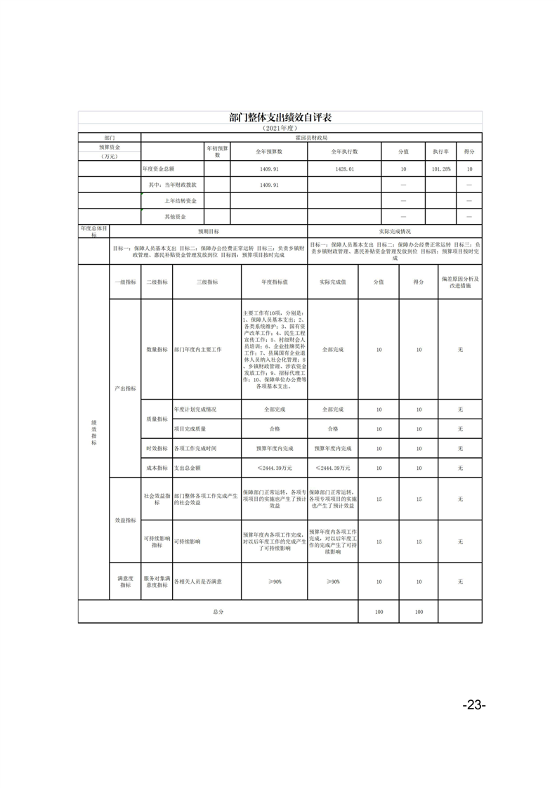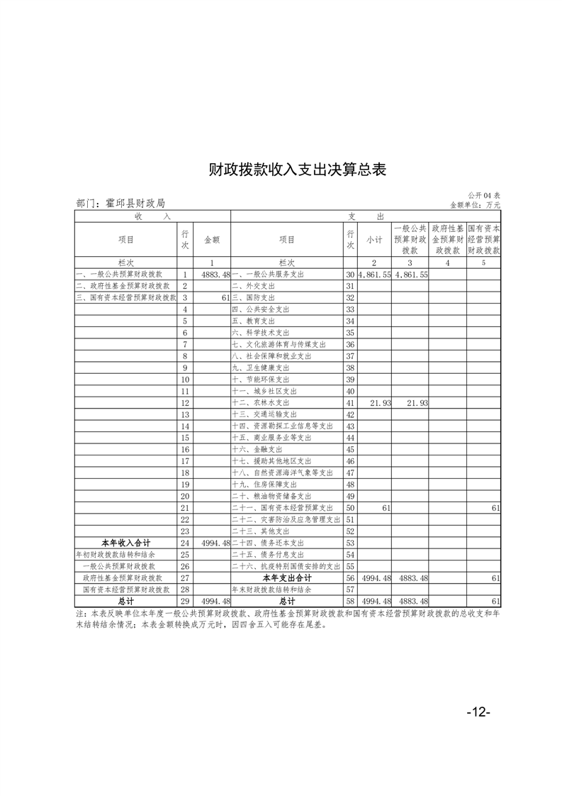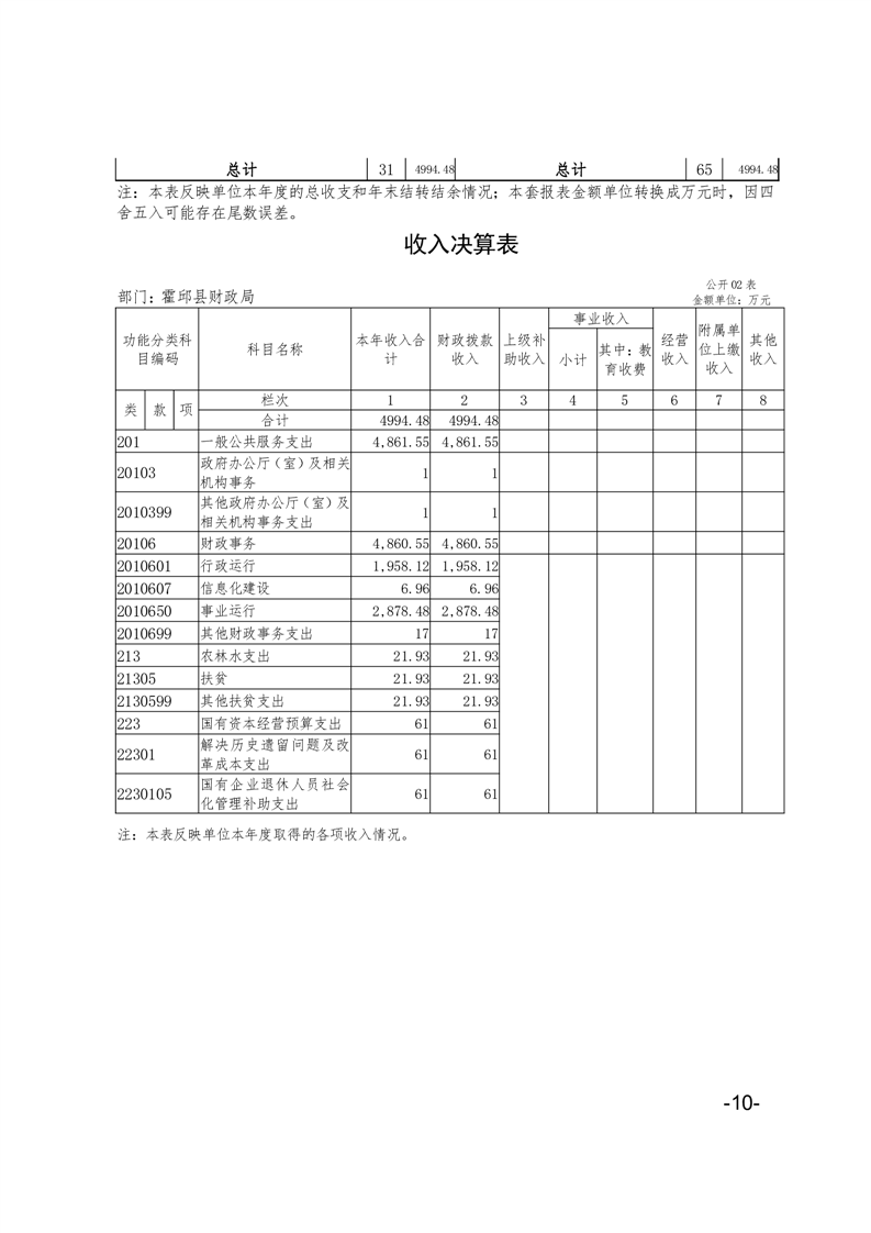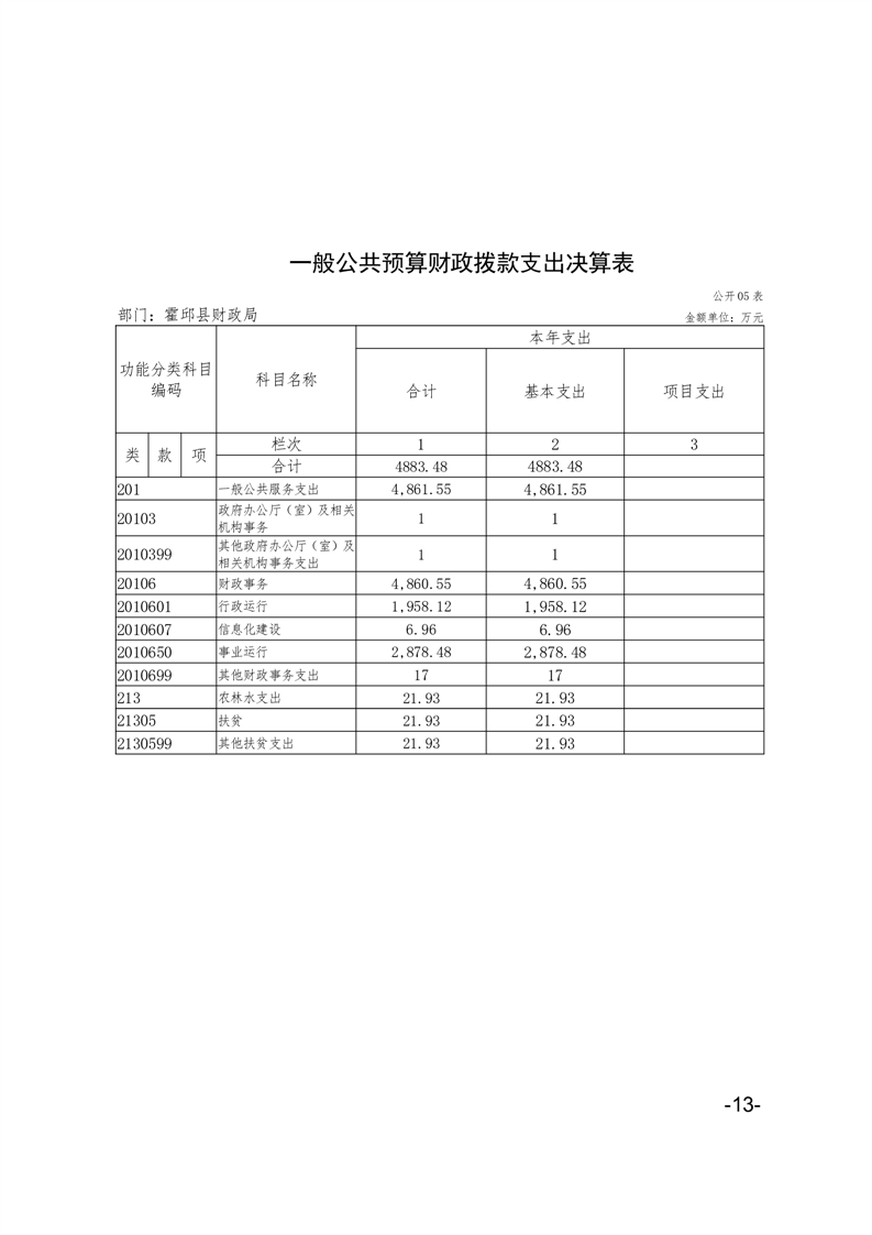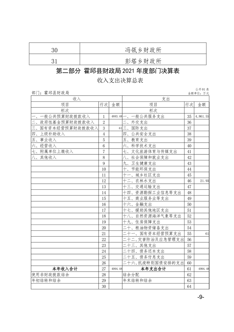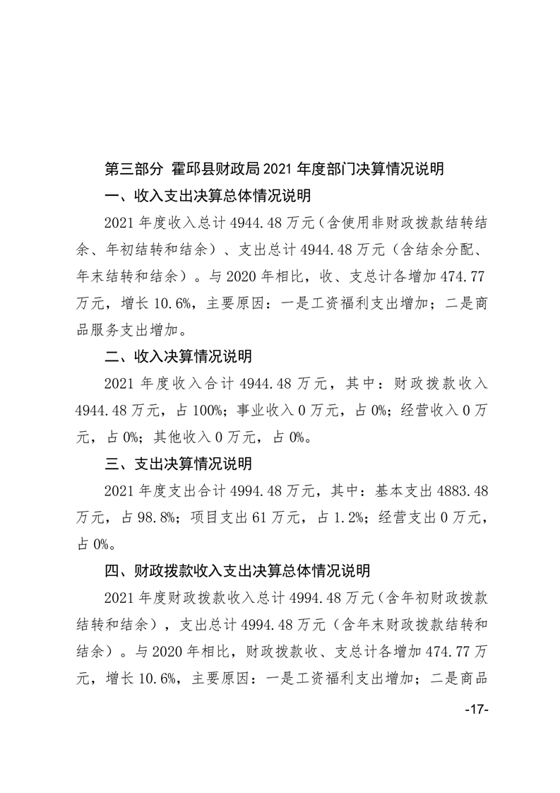 霍邱县财政局2021年部门决算