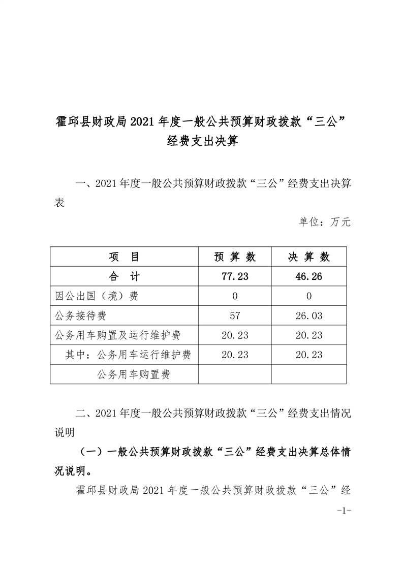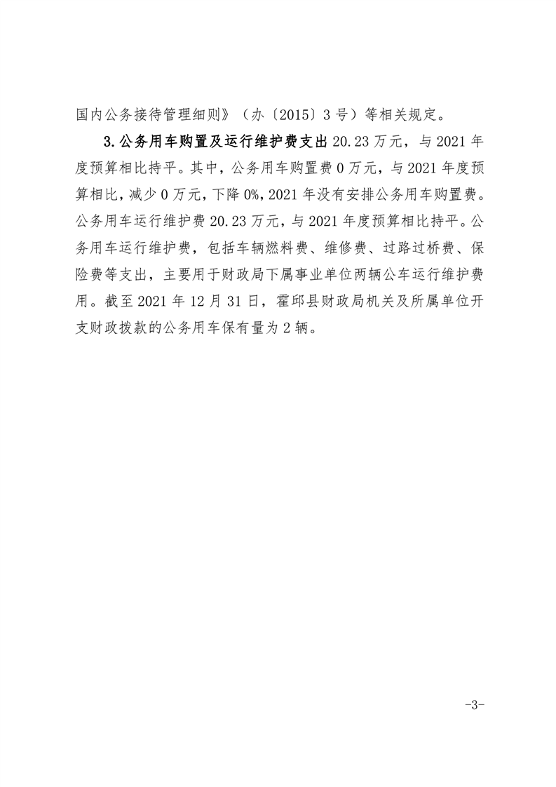 霍邱县财政局2021年度一般公共预算财政拨款“三公”经费支出决算