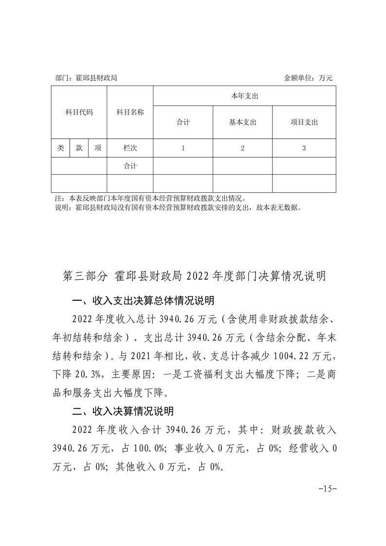 霍邱县财政局2022年度部门决算