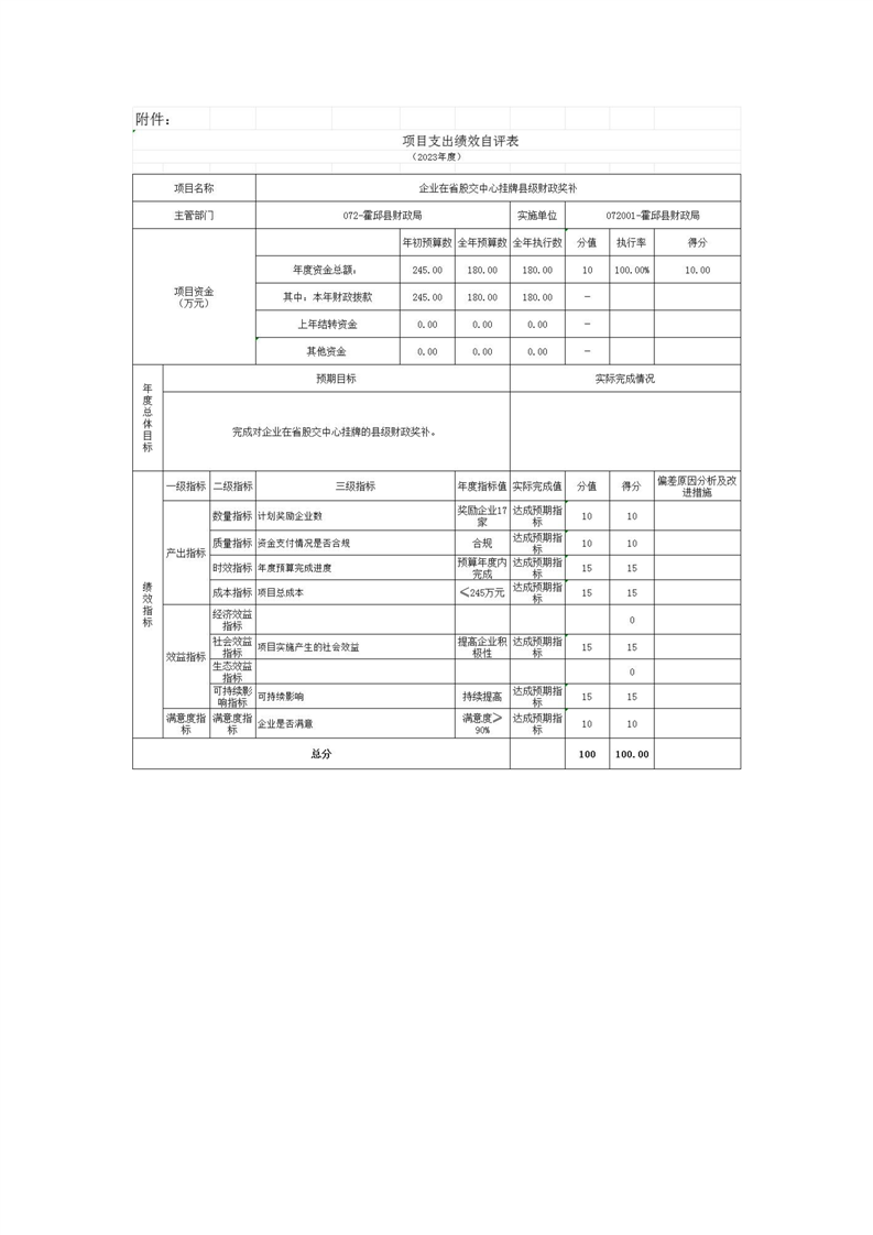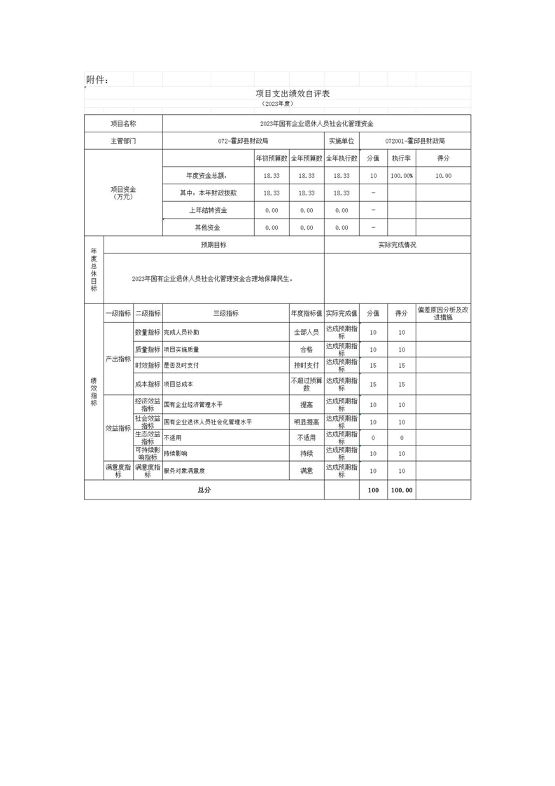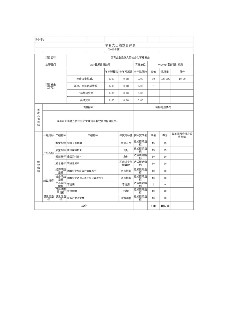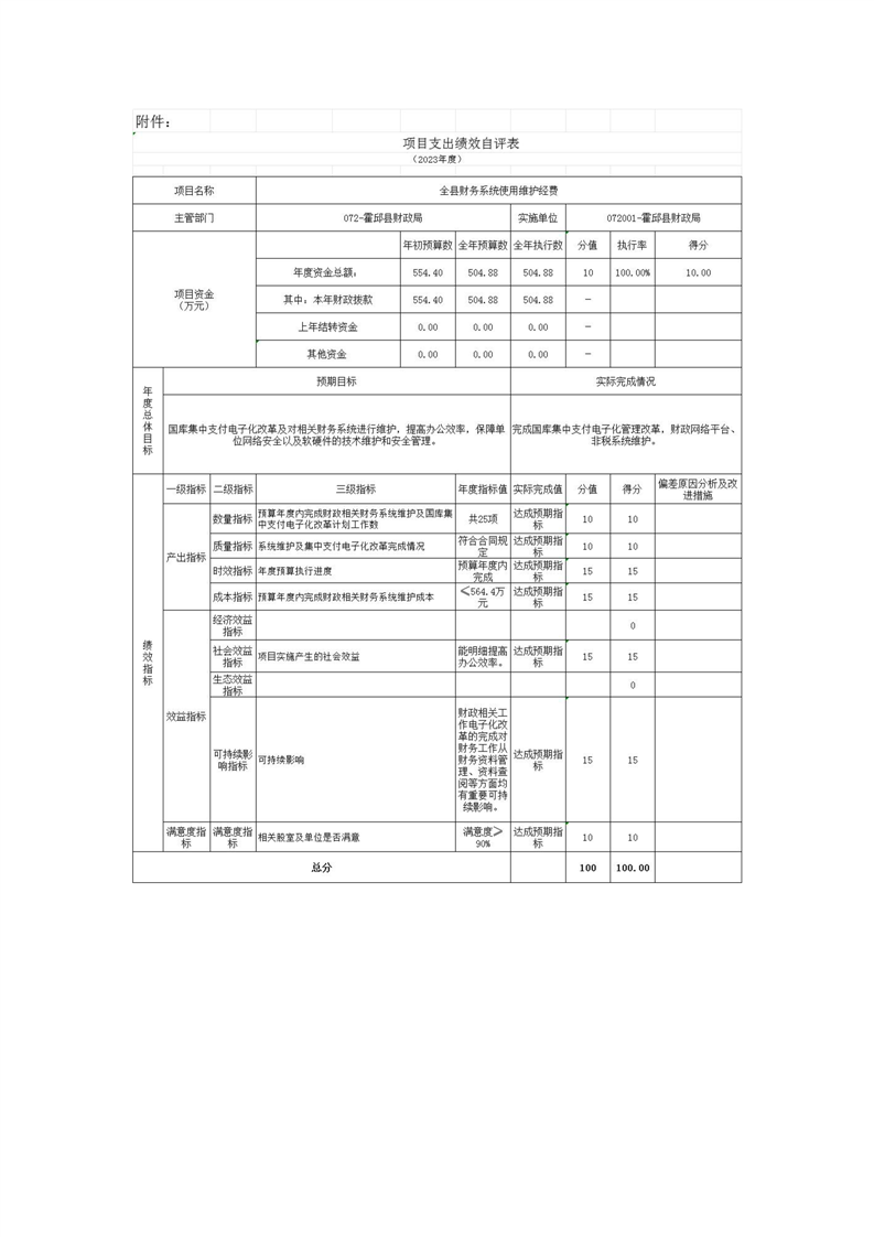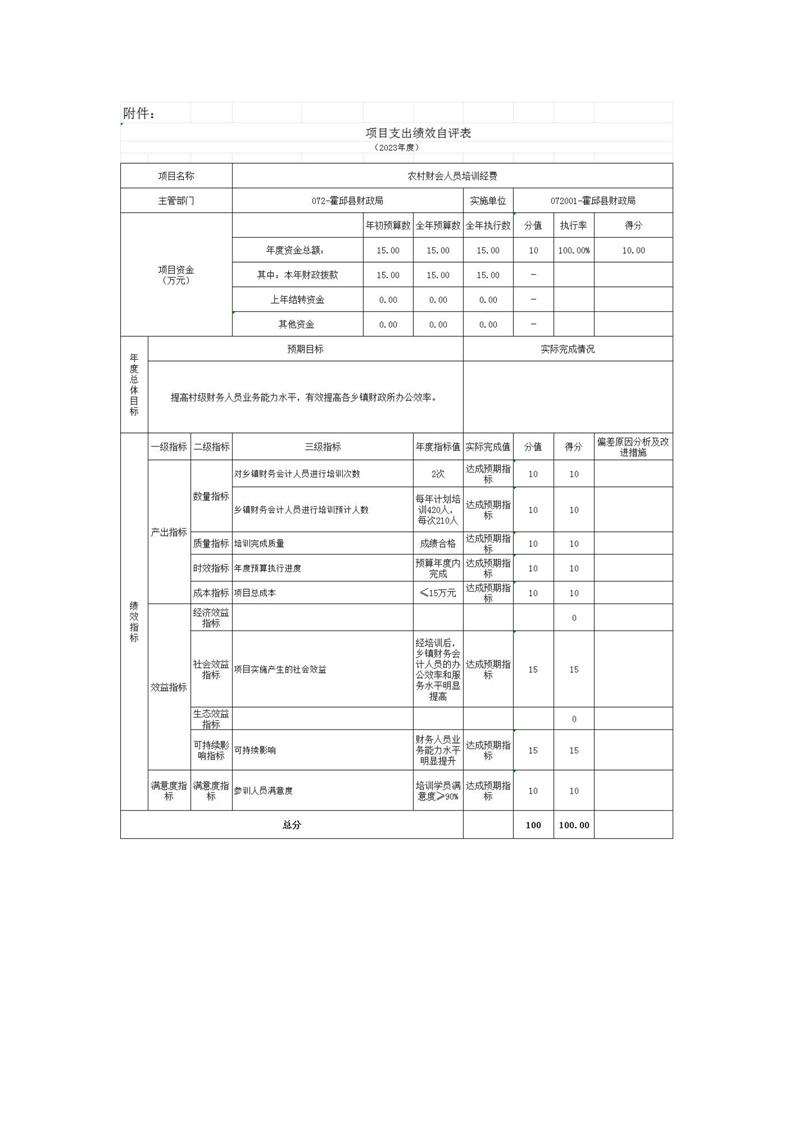 2023年度项目支出绩效自评表