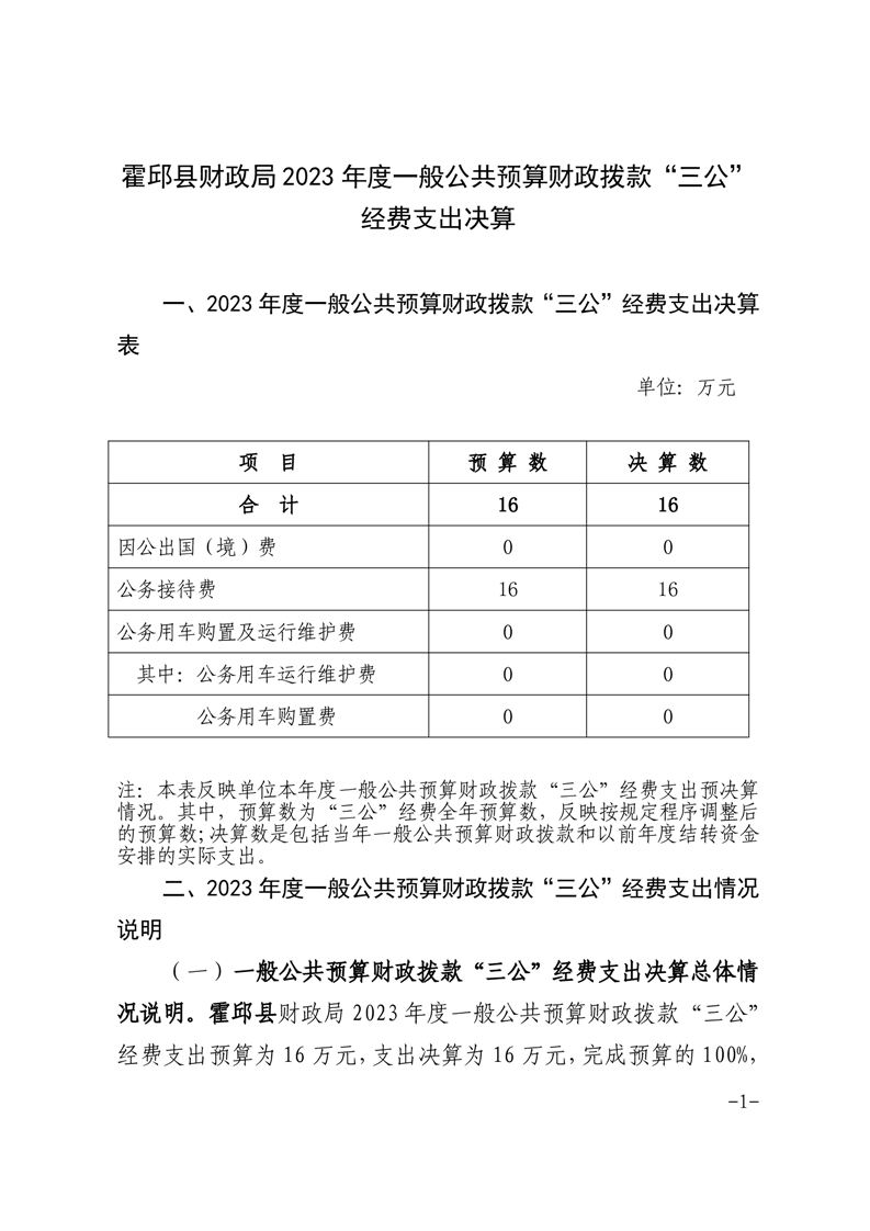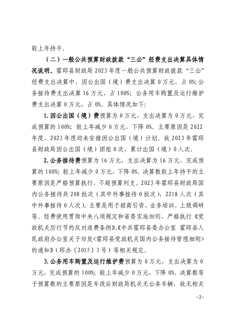 霍邱县财政局本级2023年度一般公共预算财政拨款“三公”经费支出决算