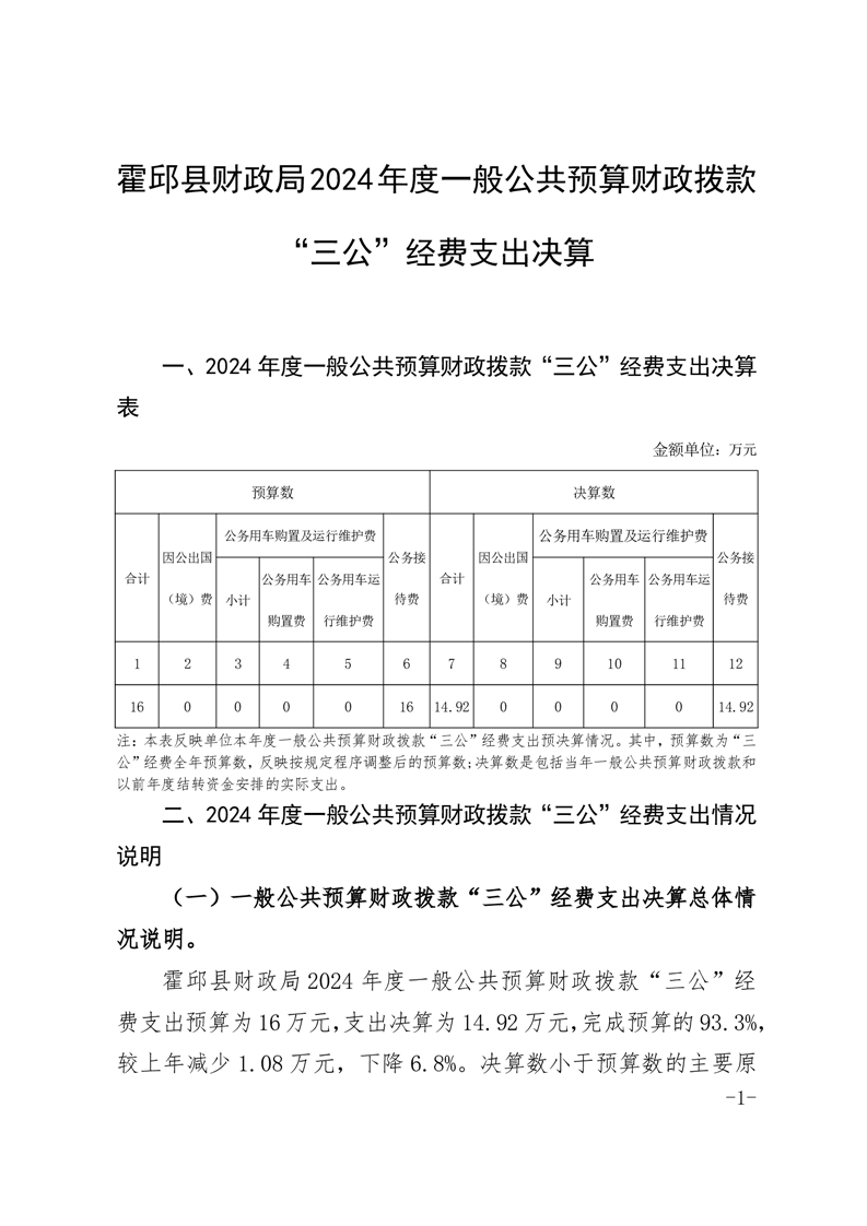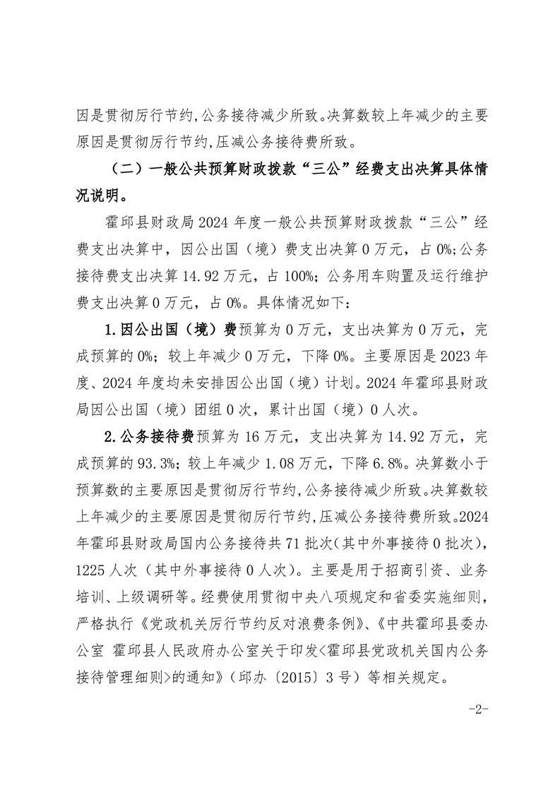 霍邱县财政局2024年度单位一般公共预算财政拨款“三公”经费支出决算
