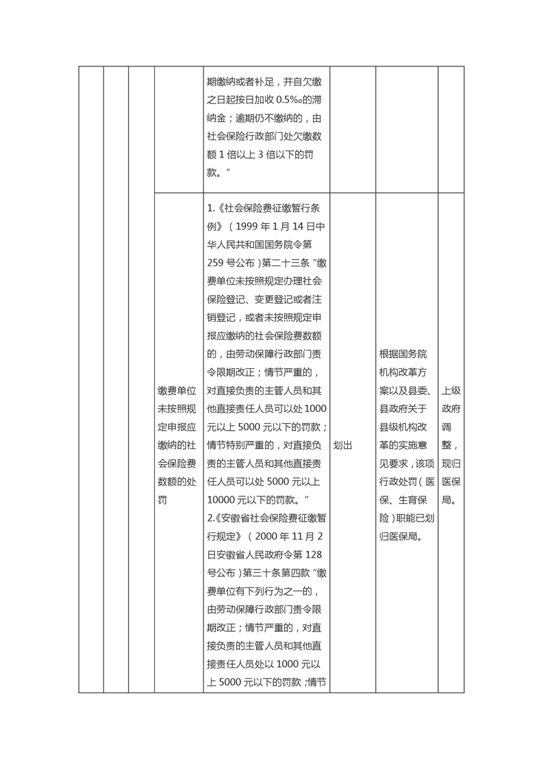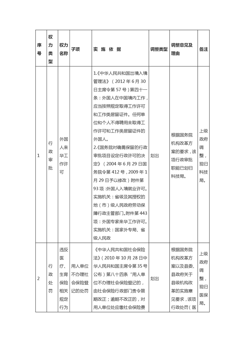 霍邱县人力资源和社会保障局清理和调整权力清单目录