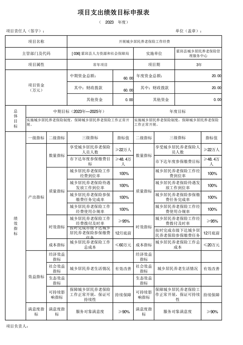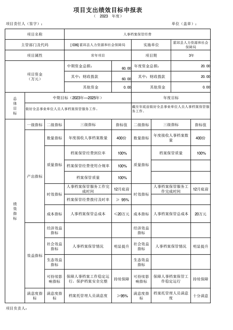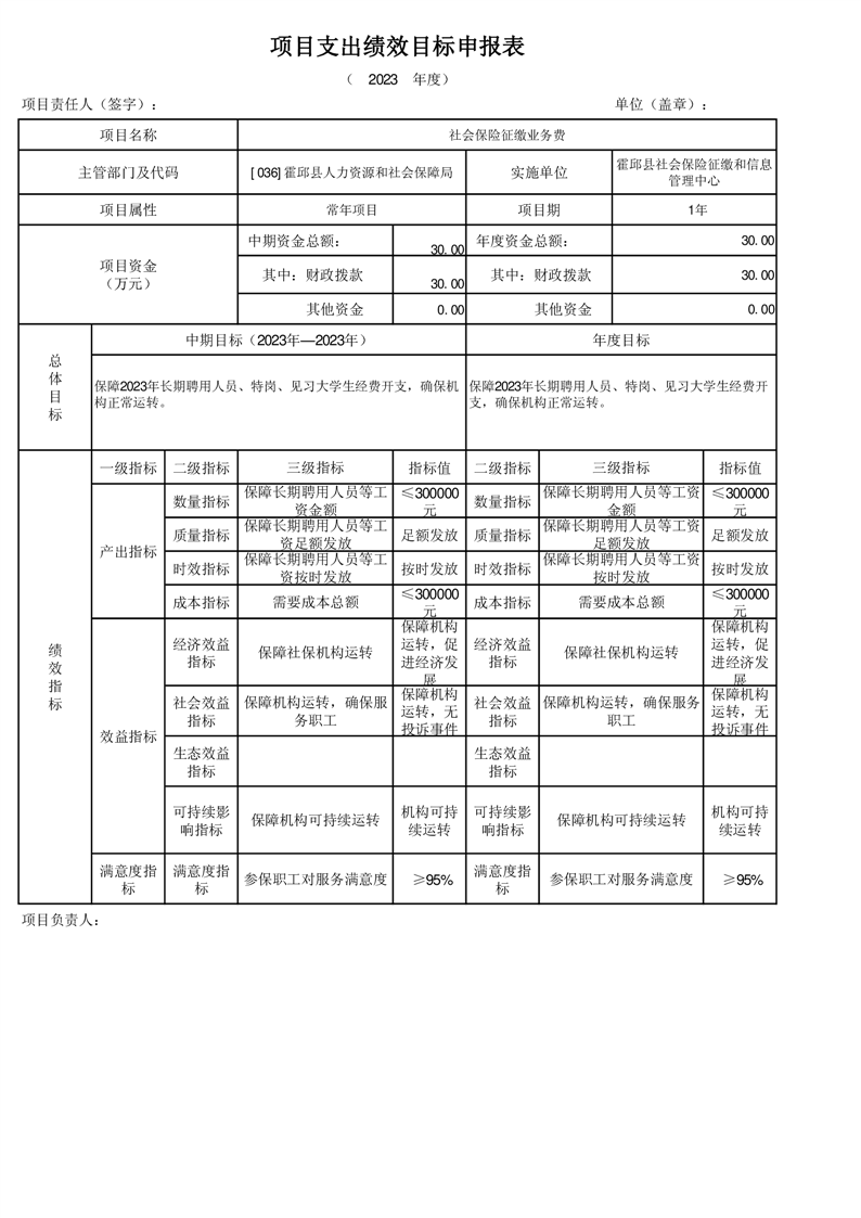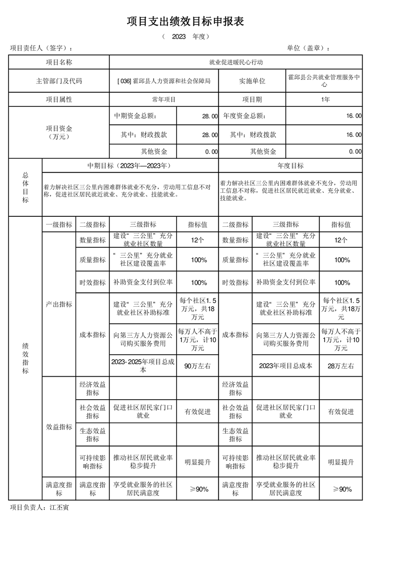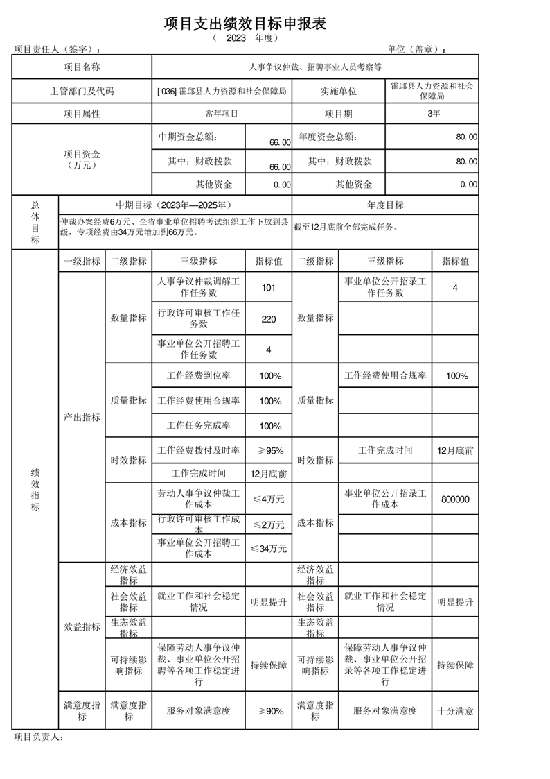 霍邱县人力资源和社会保障局2023年部门项目绩效目标表