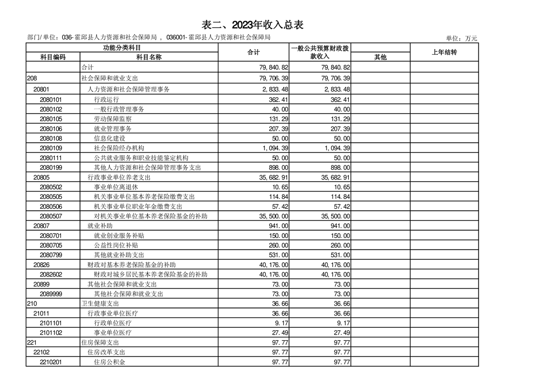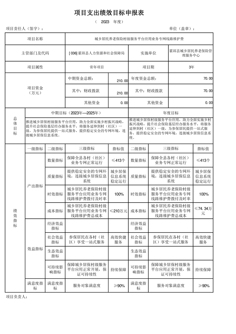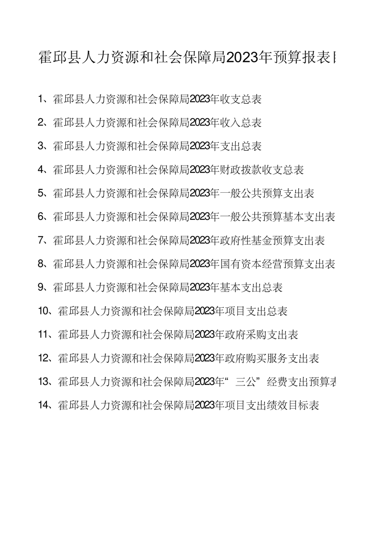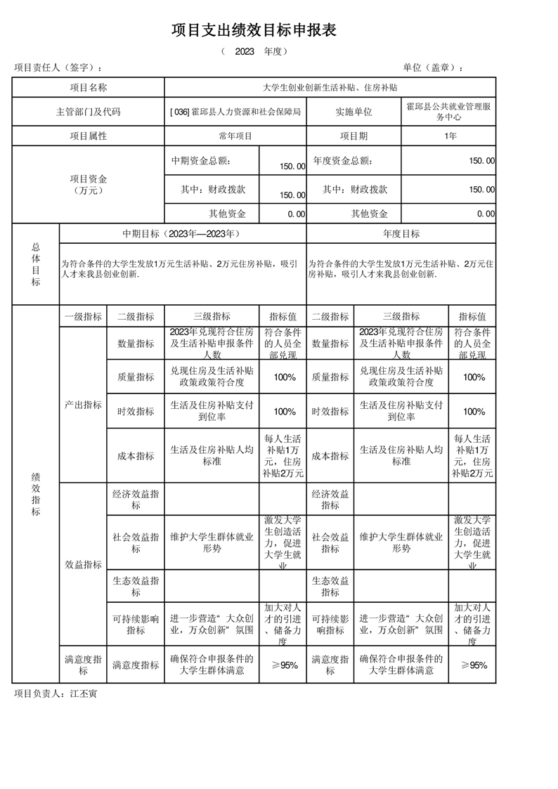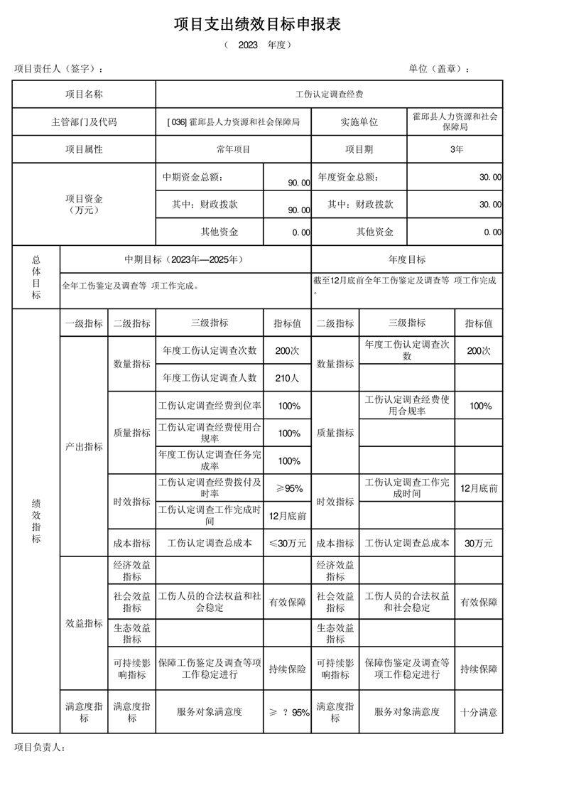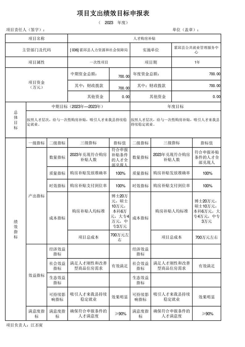 霍邱县人力资源和社会保障局2023年部门项目绩效目标表