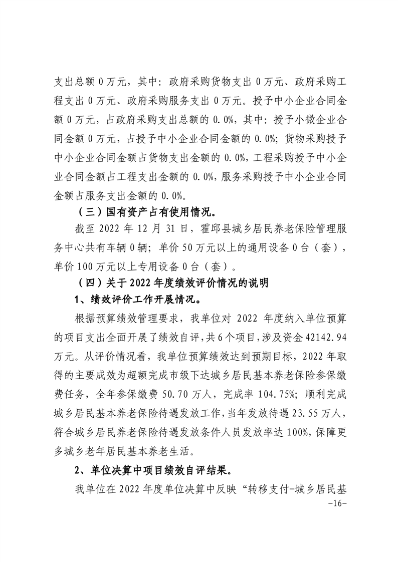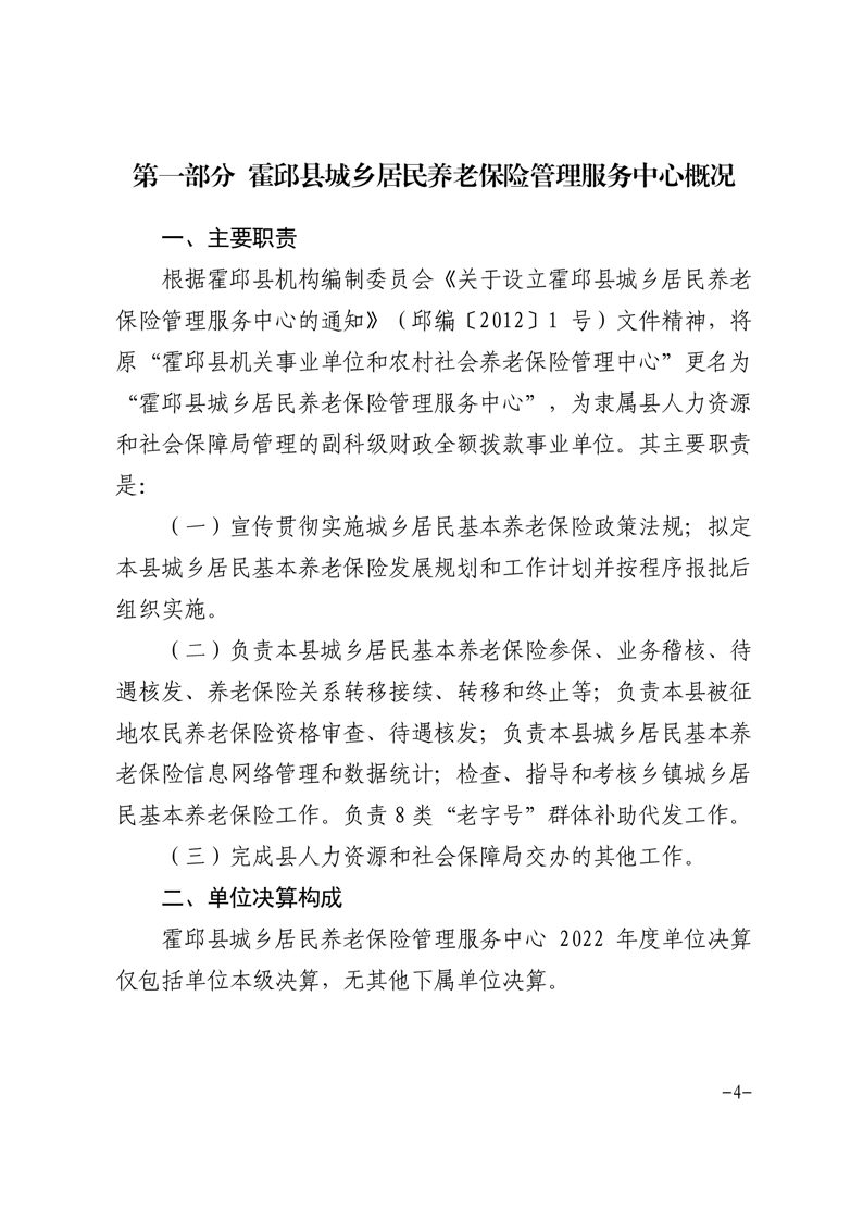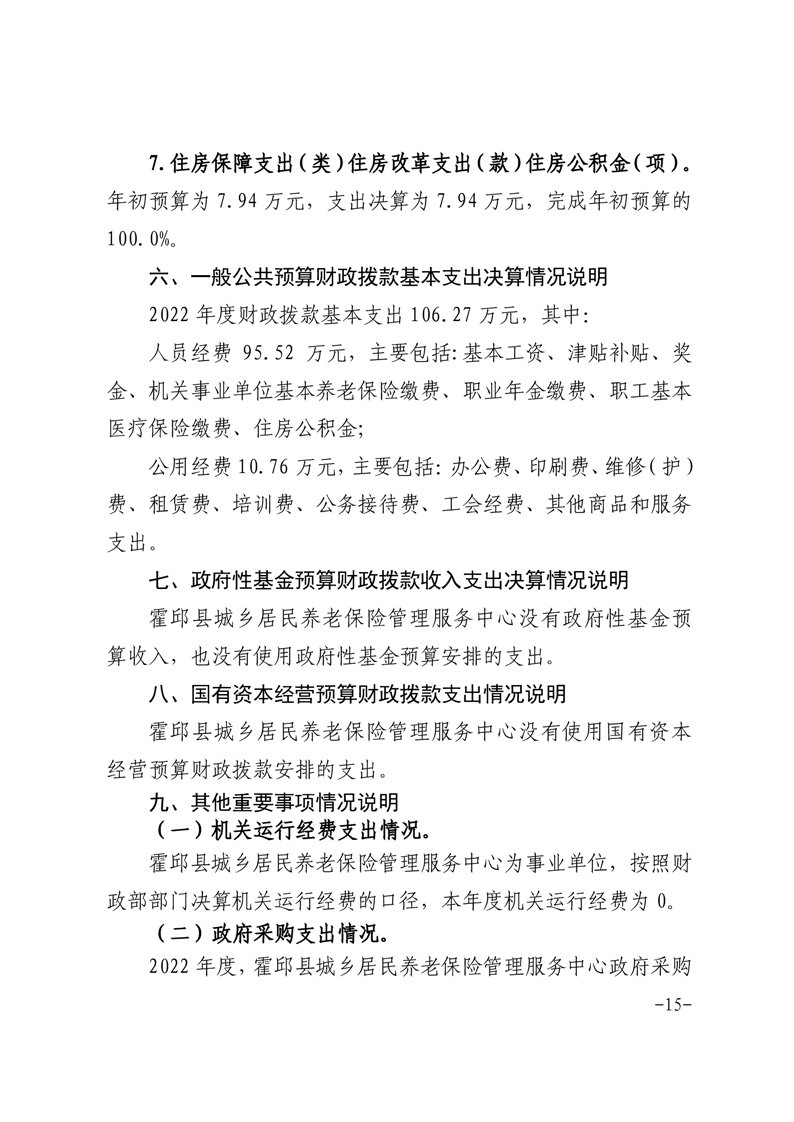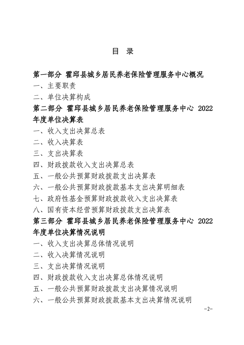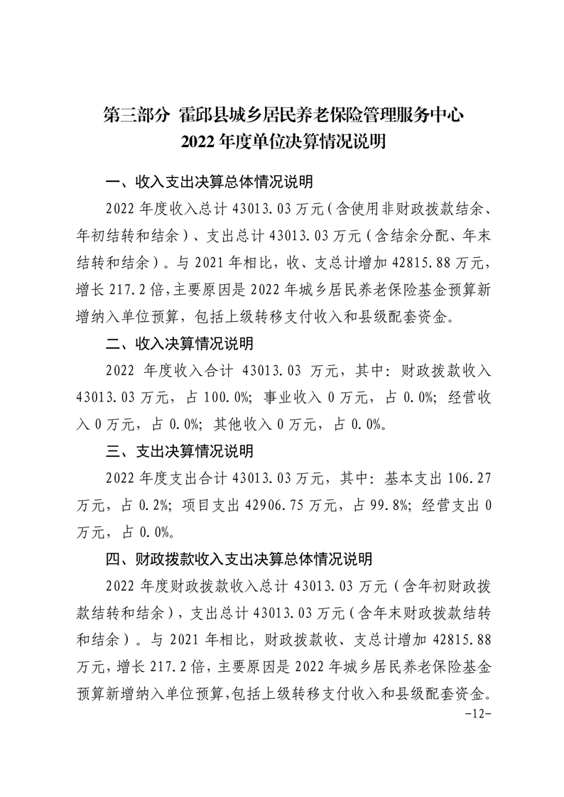 霍邱县城乡居民养老保险管理服务中心2022 年度单位决算公开