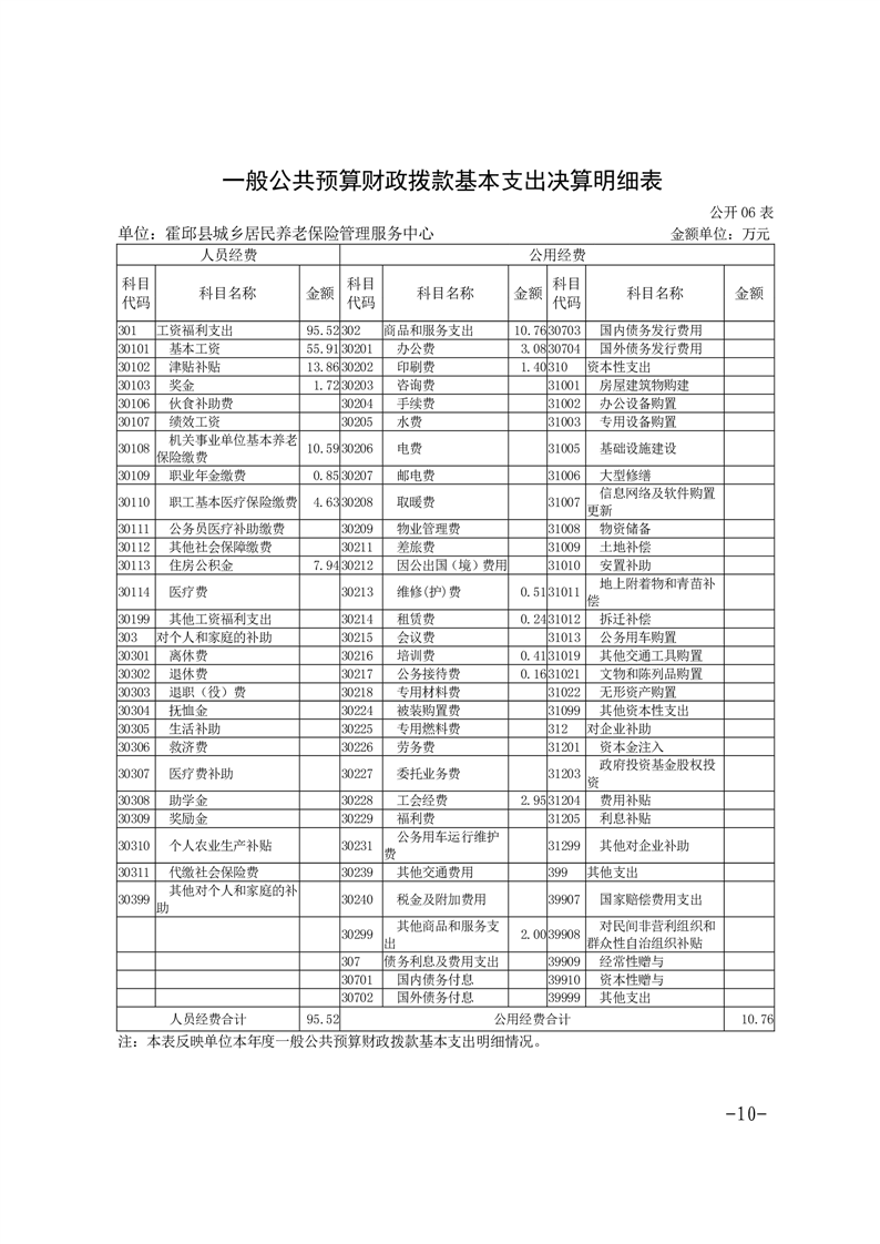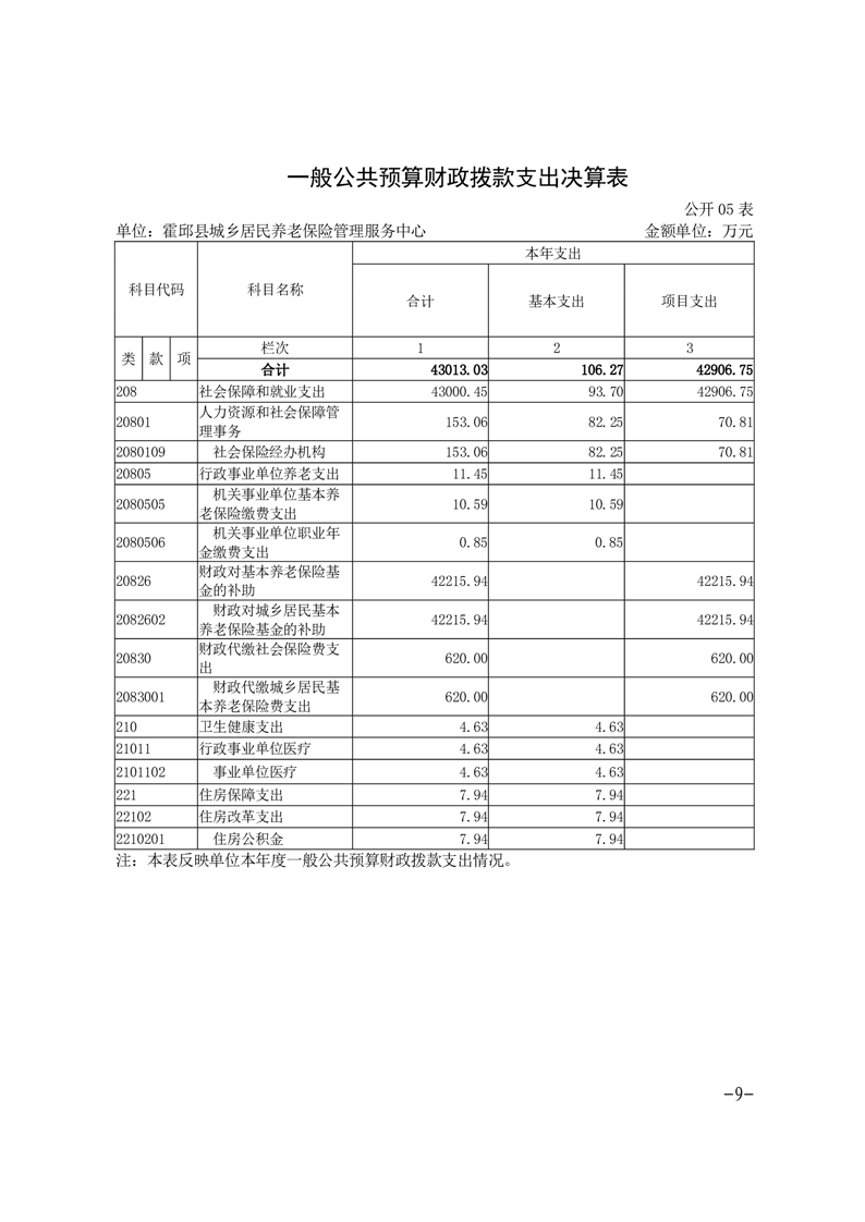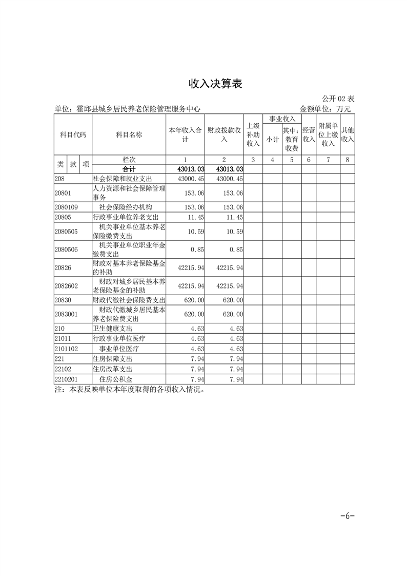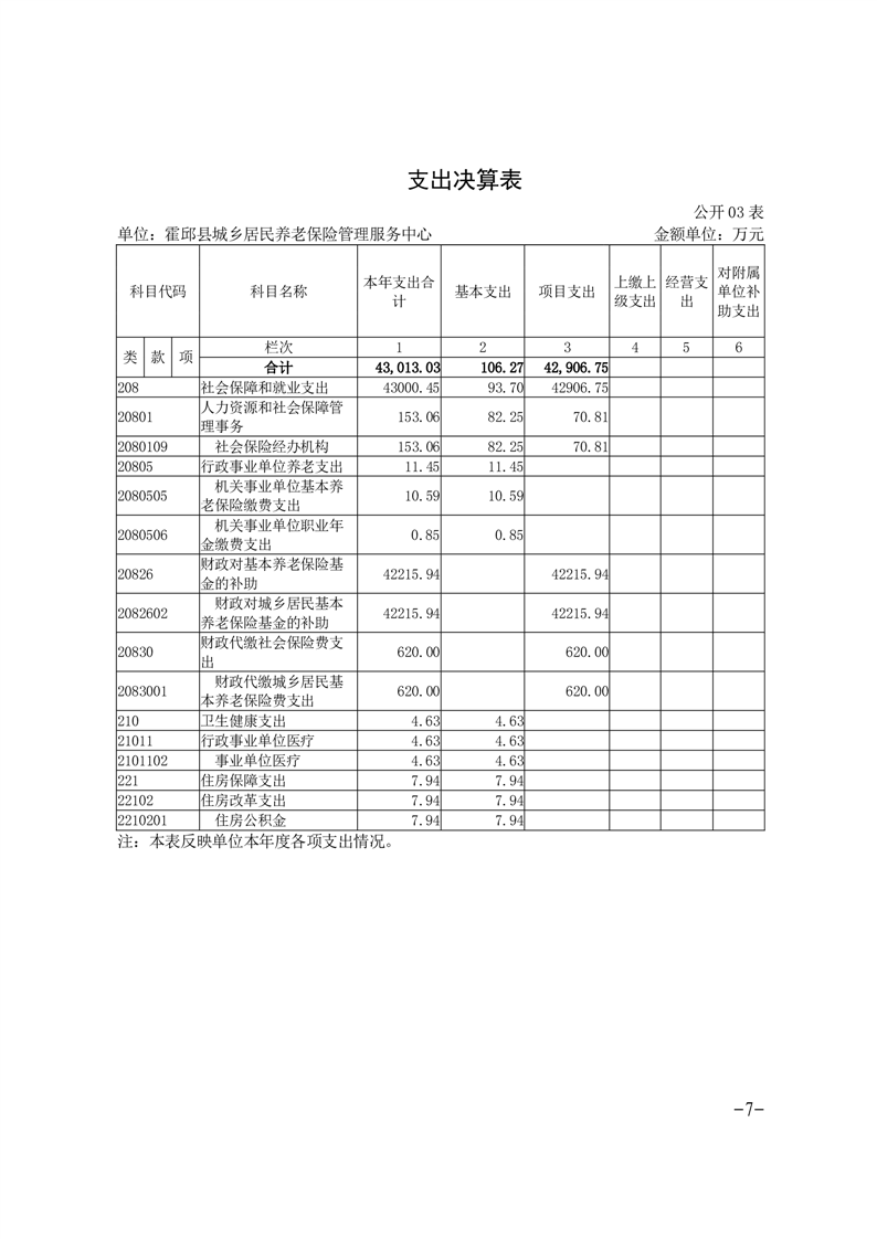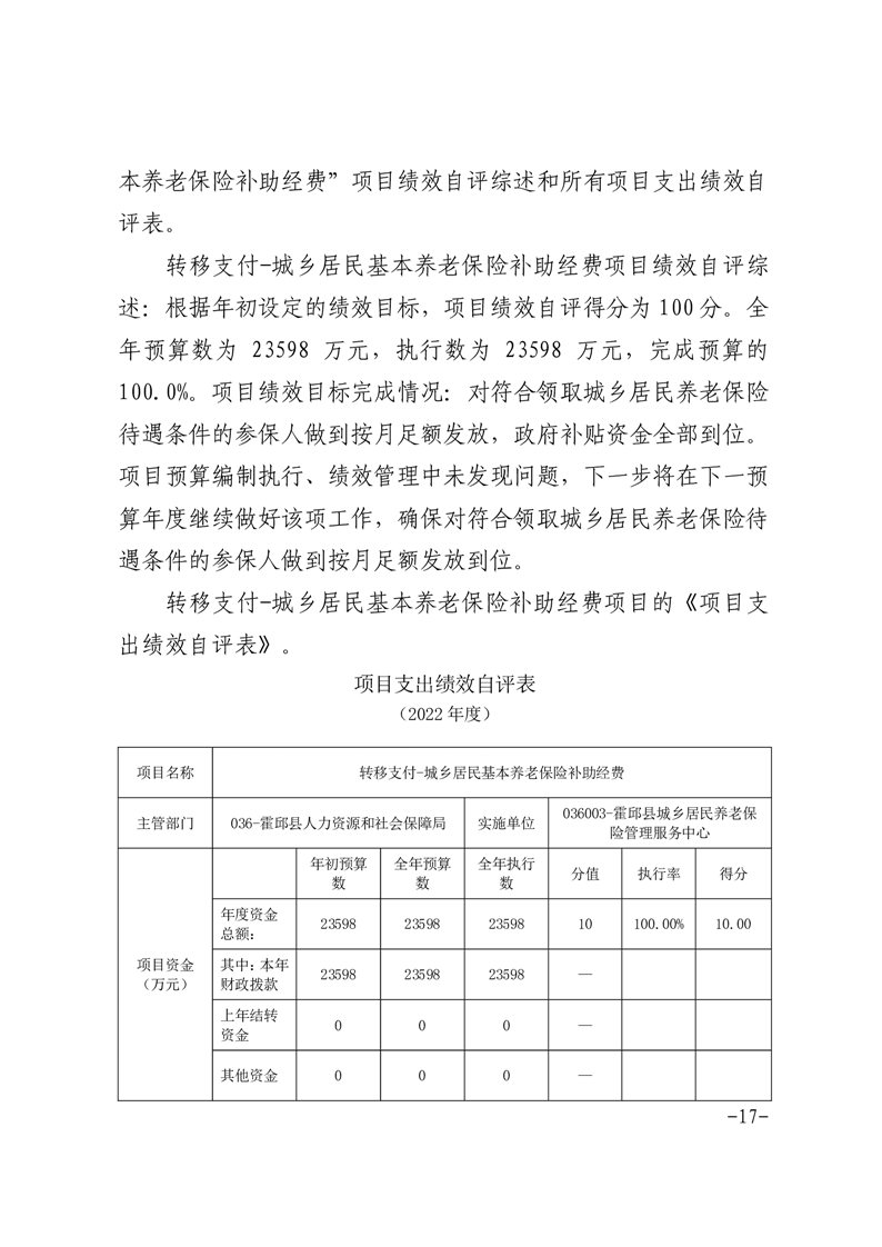 霍邱县城乡居民养老保险管理服务中心2022 年度单位决算公开