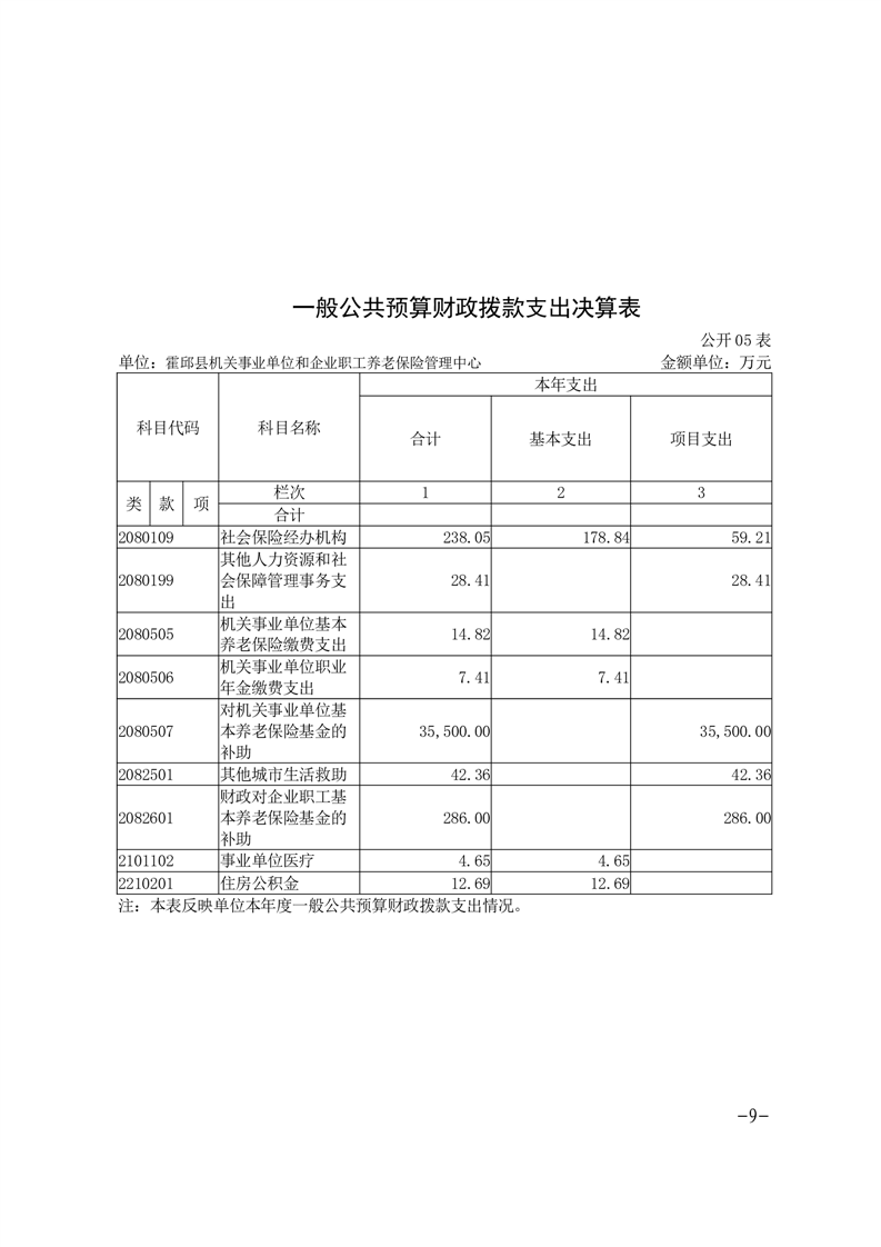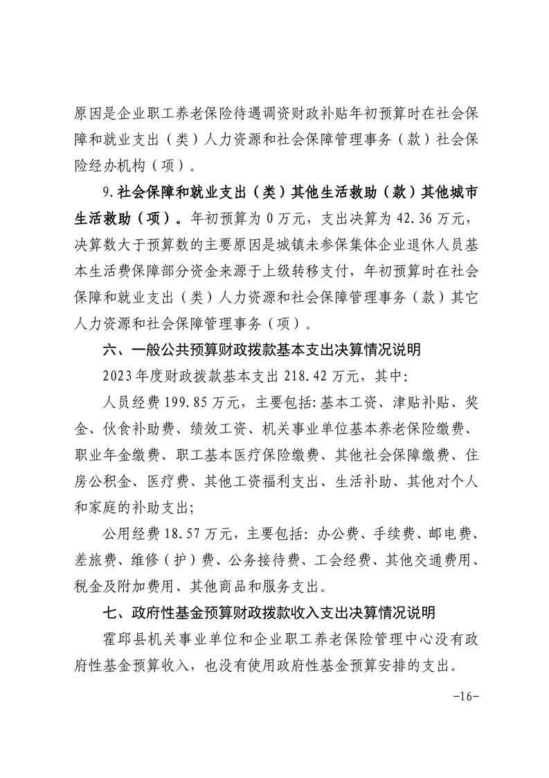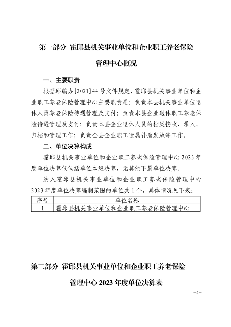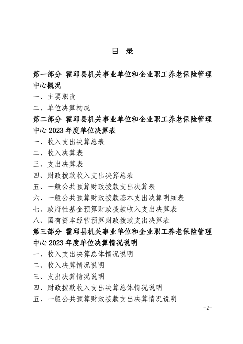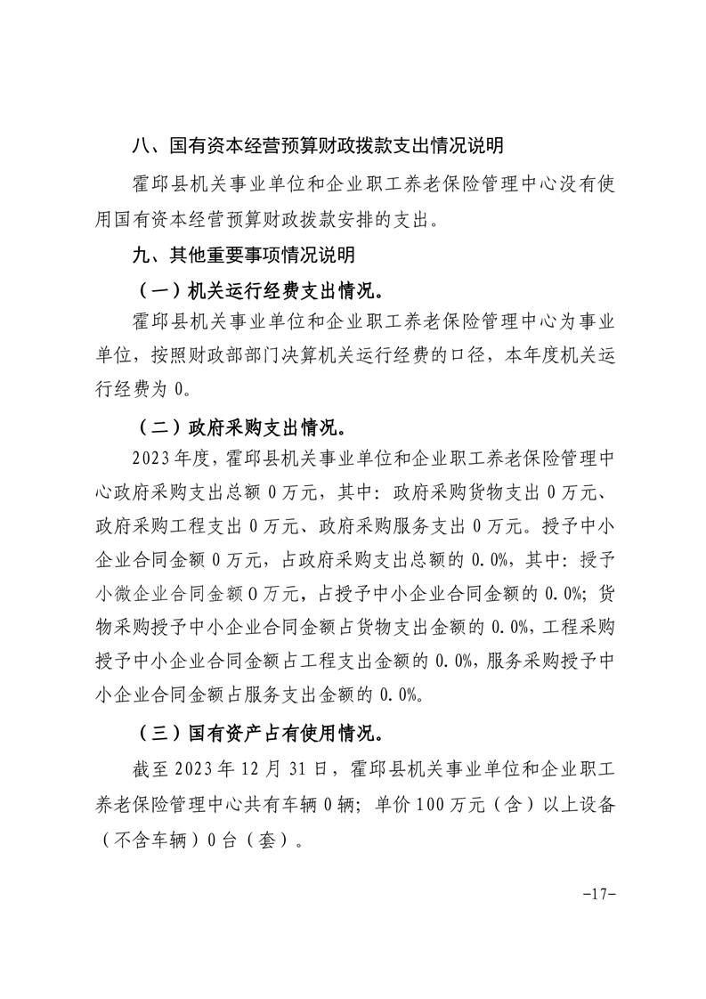 霍邱县机关事业单位和企业职工养老保险管理中心 2023年度单位决算公开