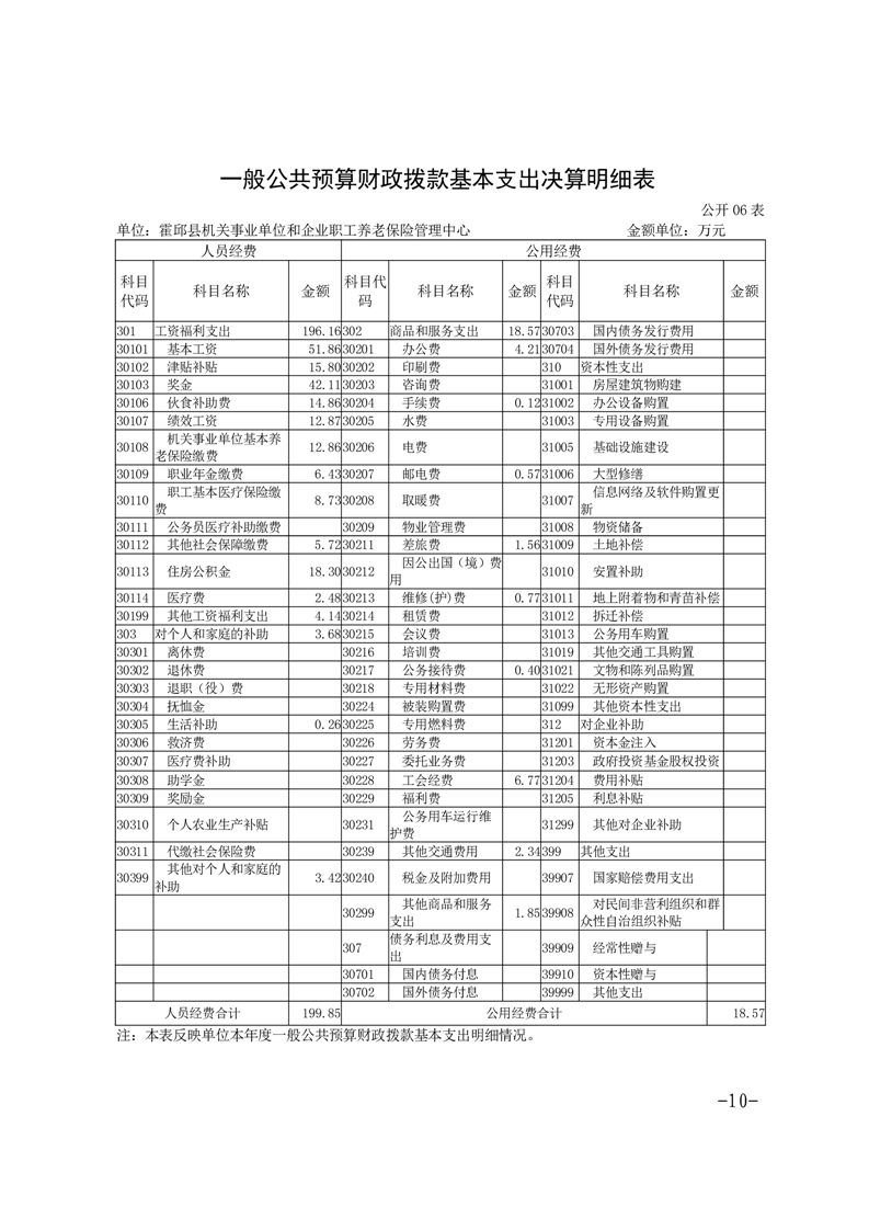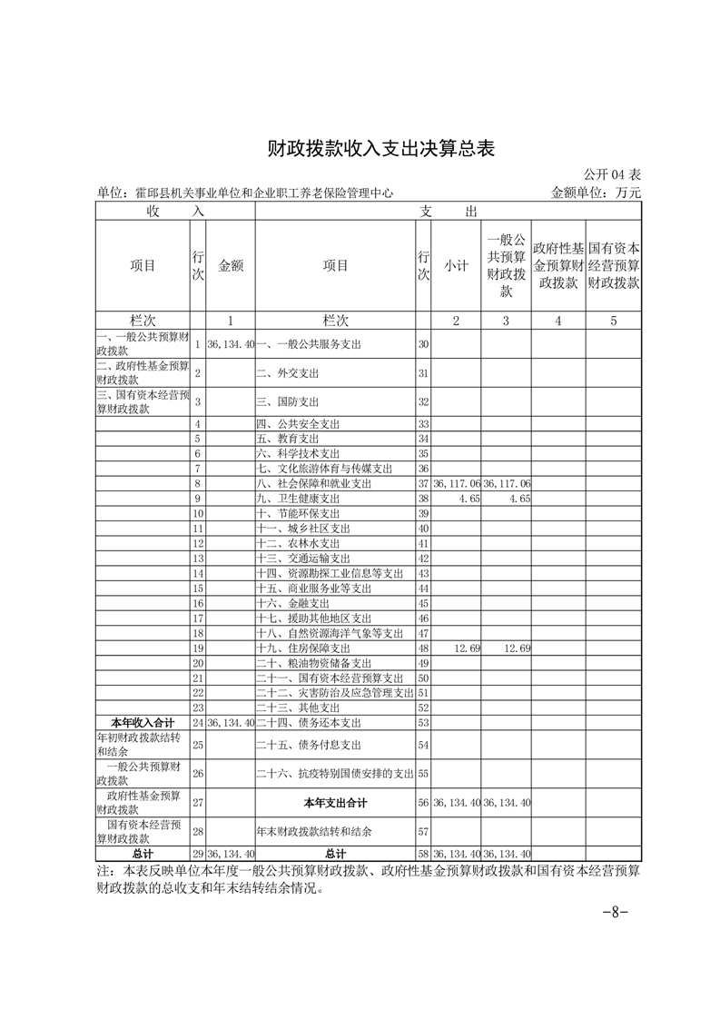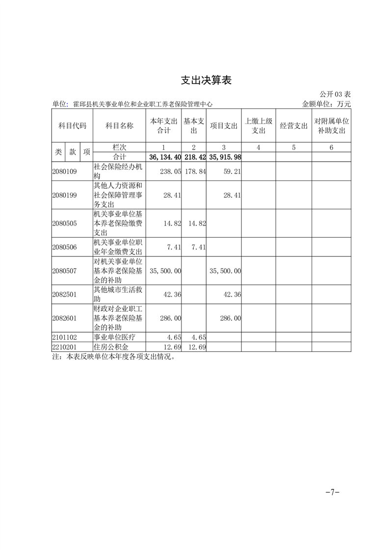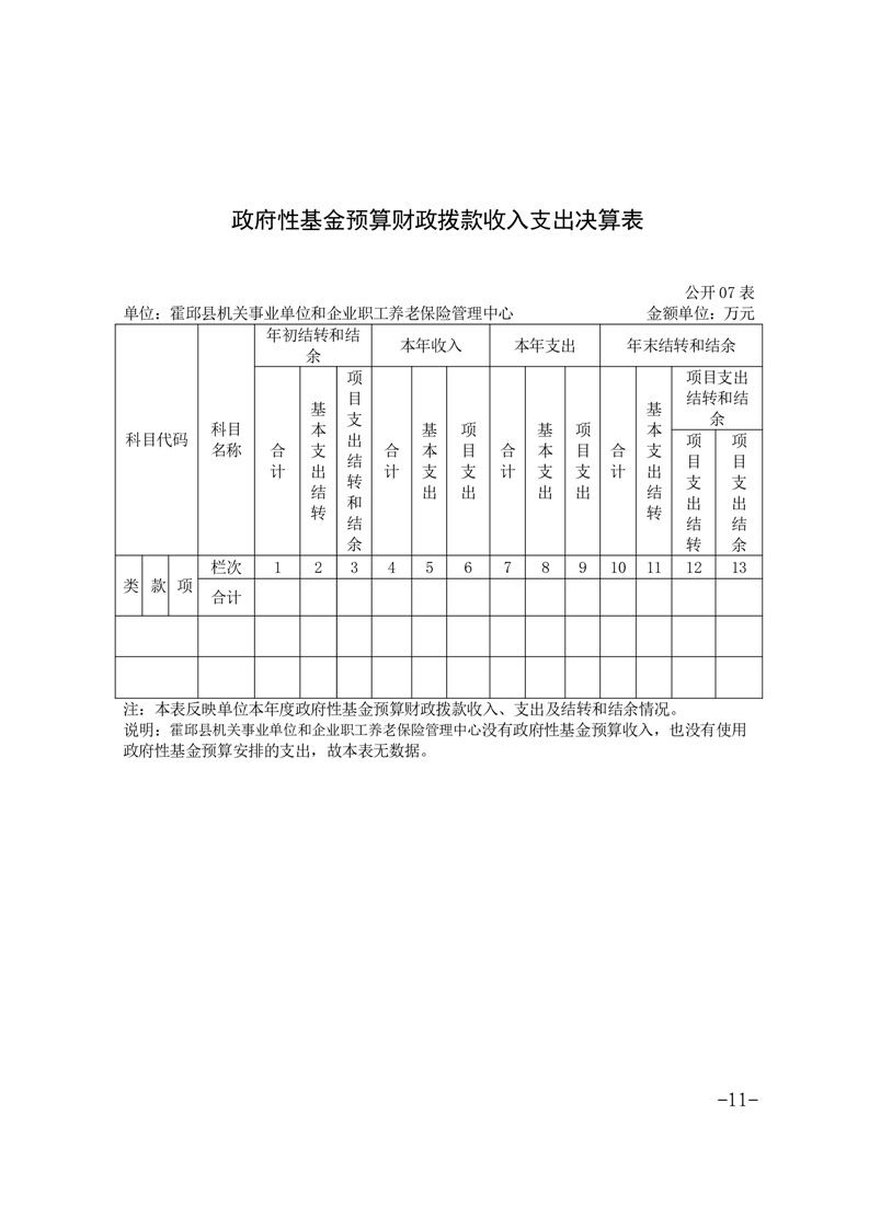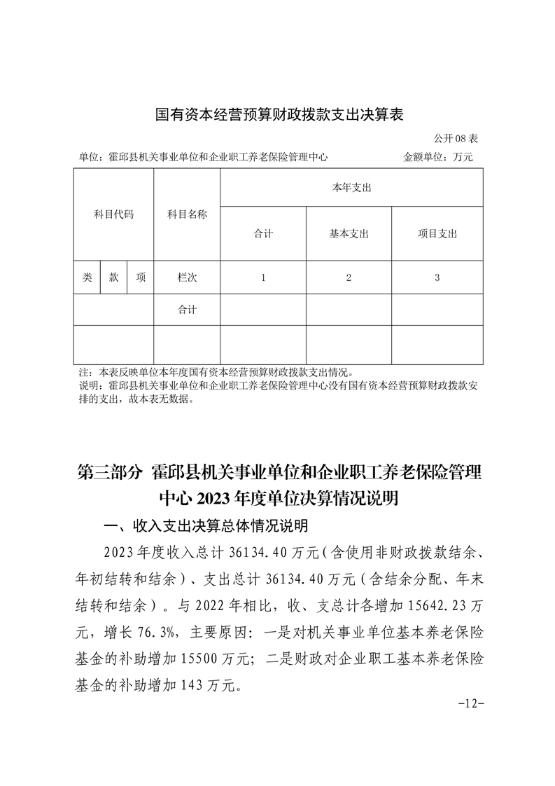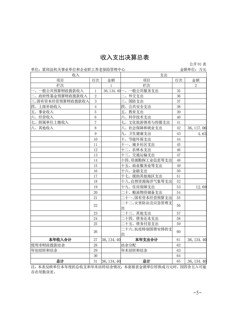 霍邱县机关事业单位和企业职工养老保险管理中心 2023年度单位决算公开
