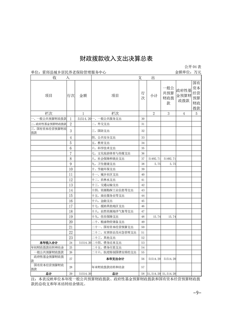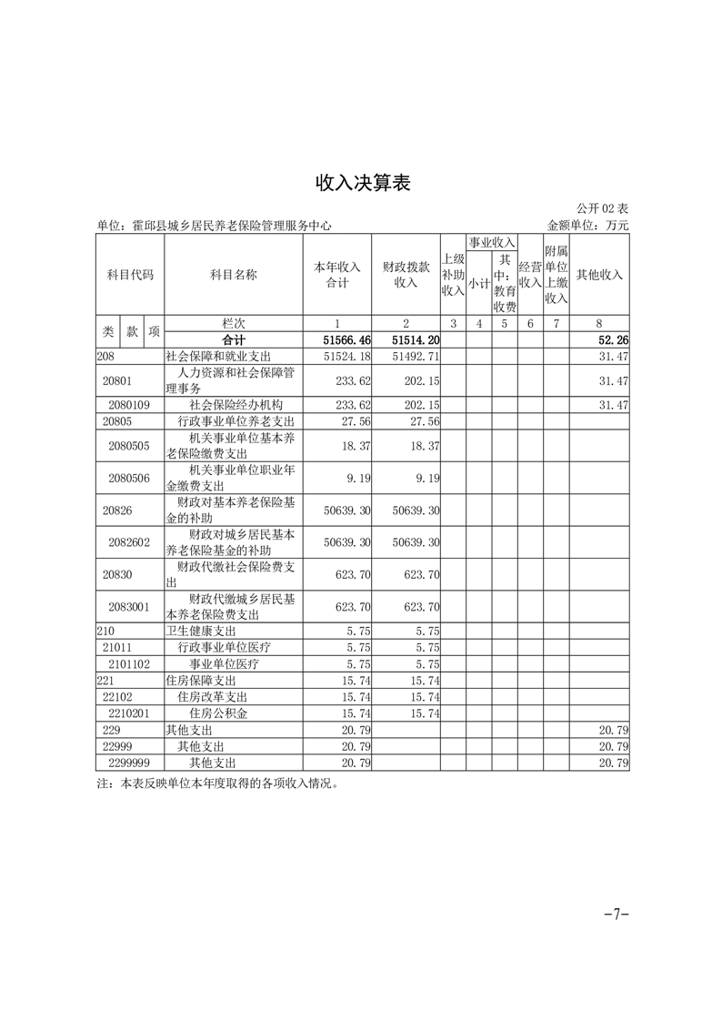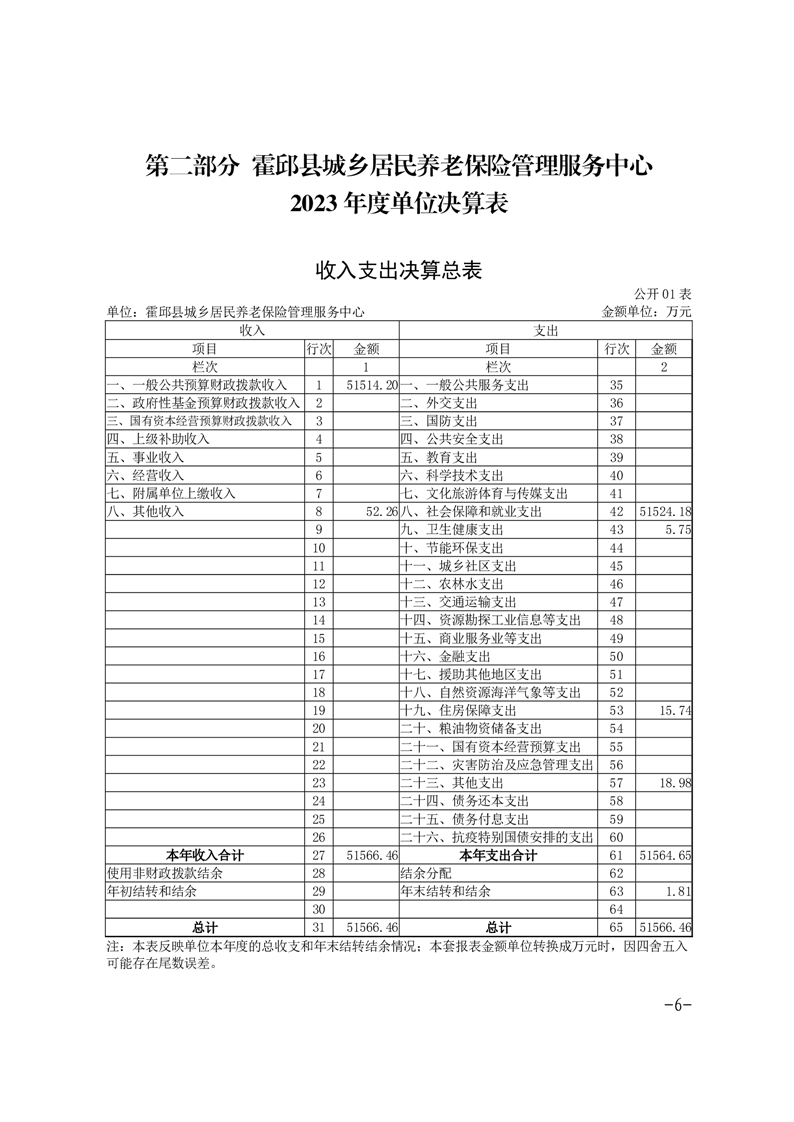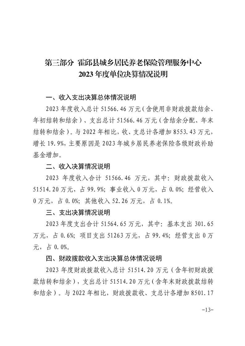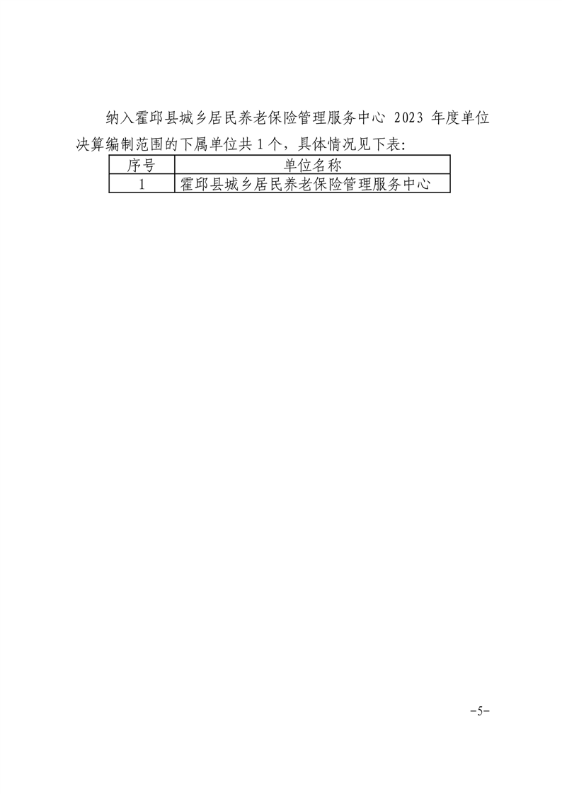 霍邱县城乡居民养老保险管理服务中心2023年度单位决算公开