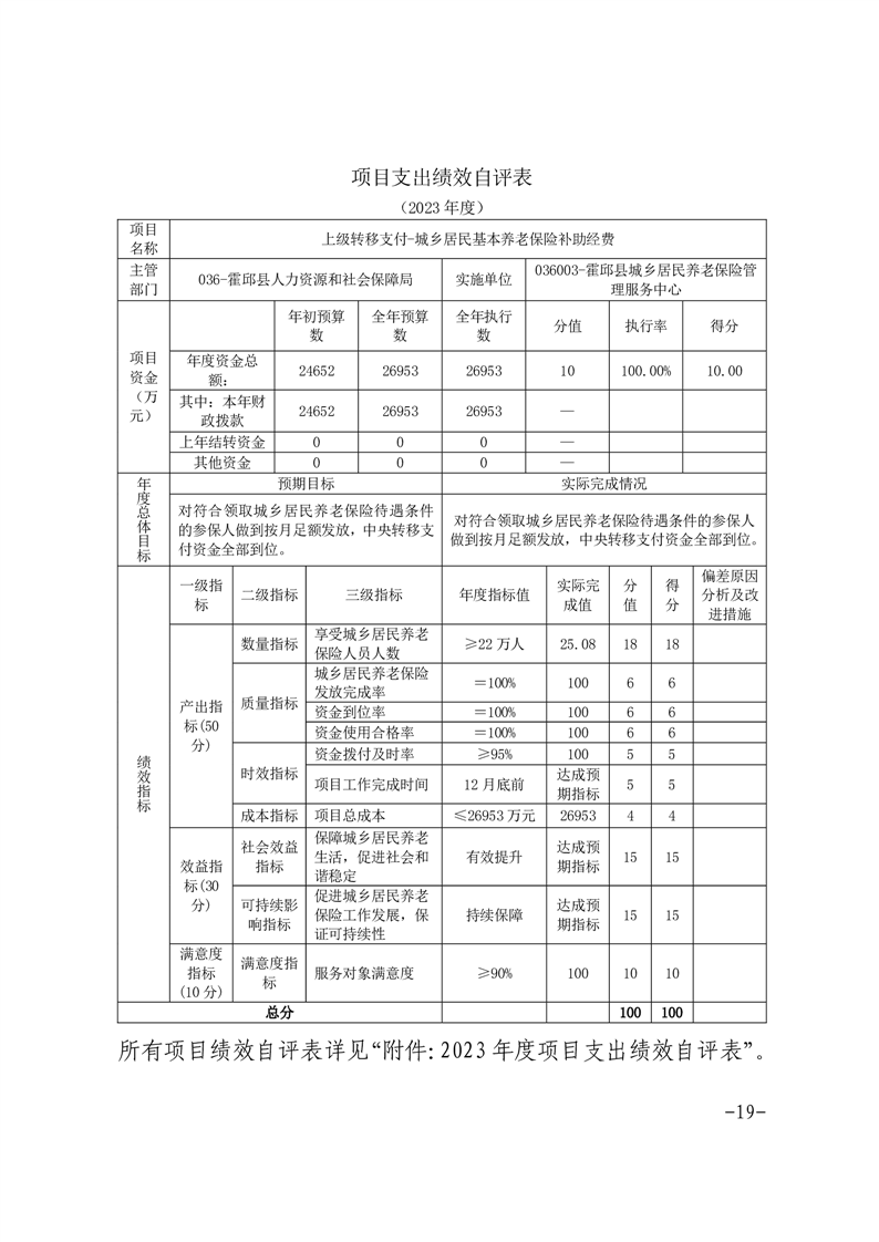 附件:2023年度项目支出绩效自评表-霍邱县城乡居民养老保险管理服务中心.pdf
