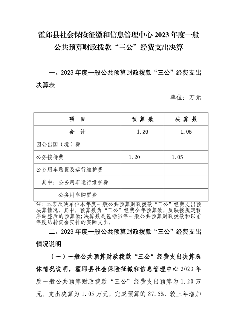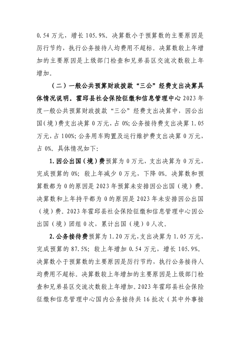 霍邱县社会保险征缴和信息管理中心 2023 年度一般公共预算财政拨款“三公”经费支出决算公开