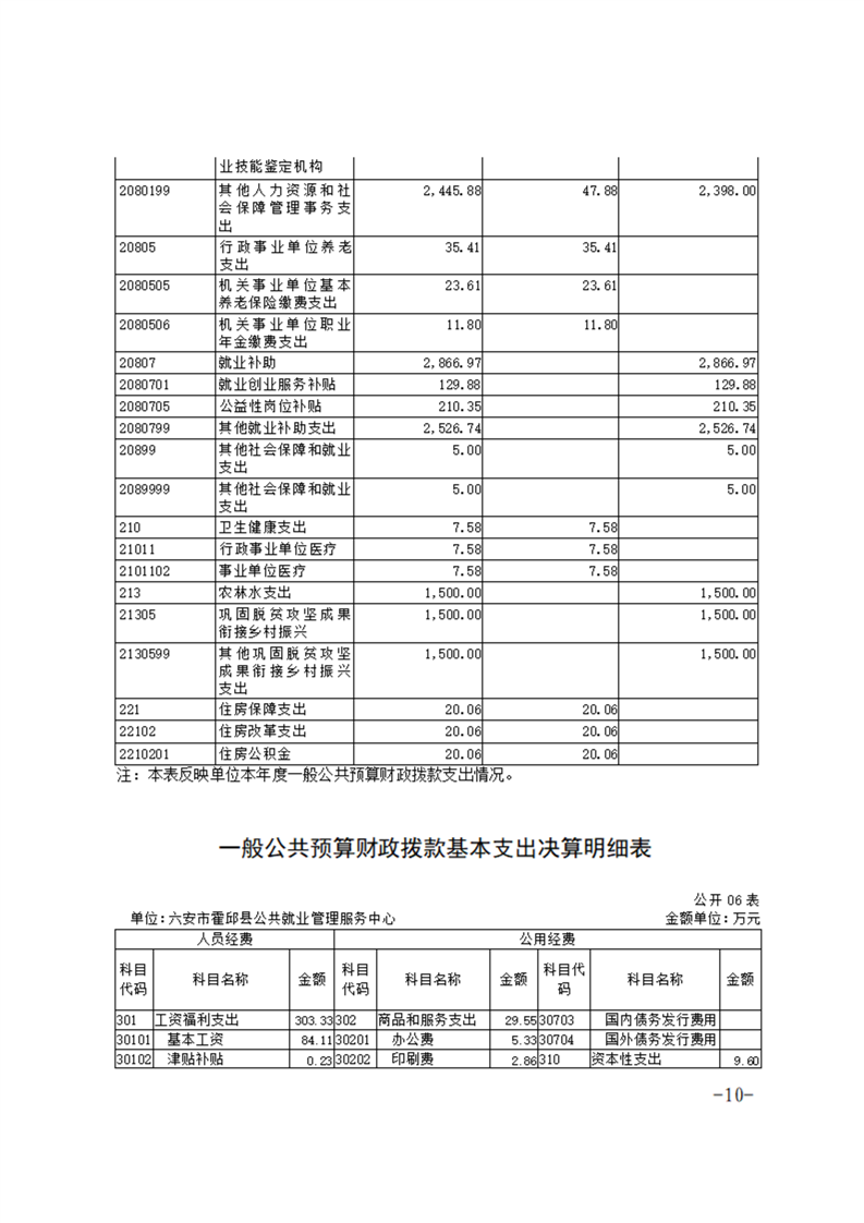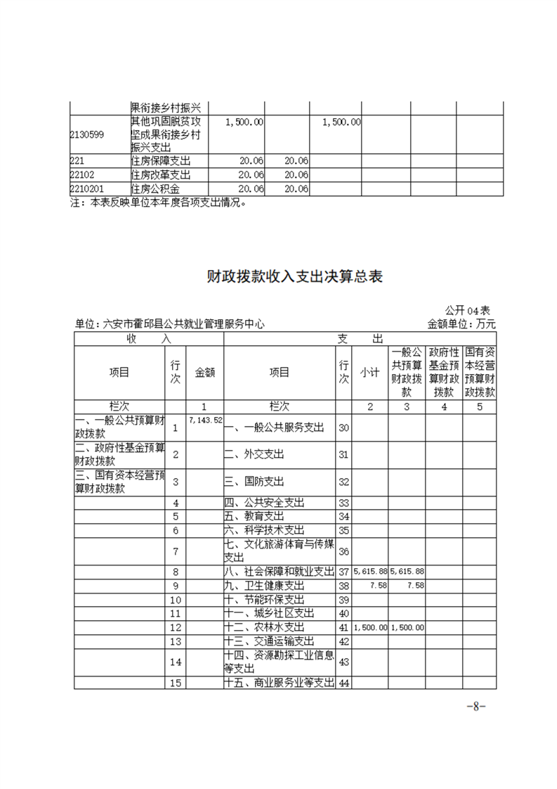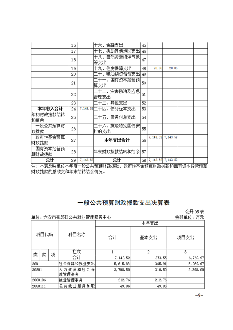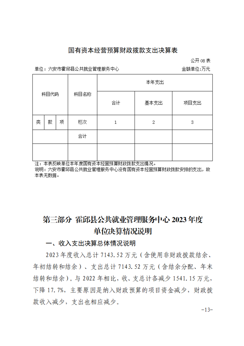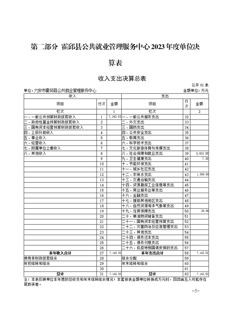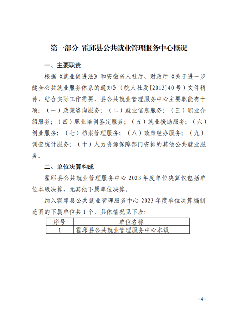 霍邱县公共就业管理服务中心2023年度单位决算公开