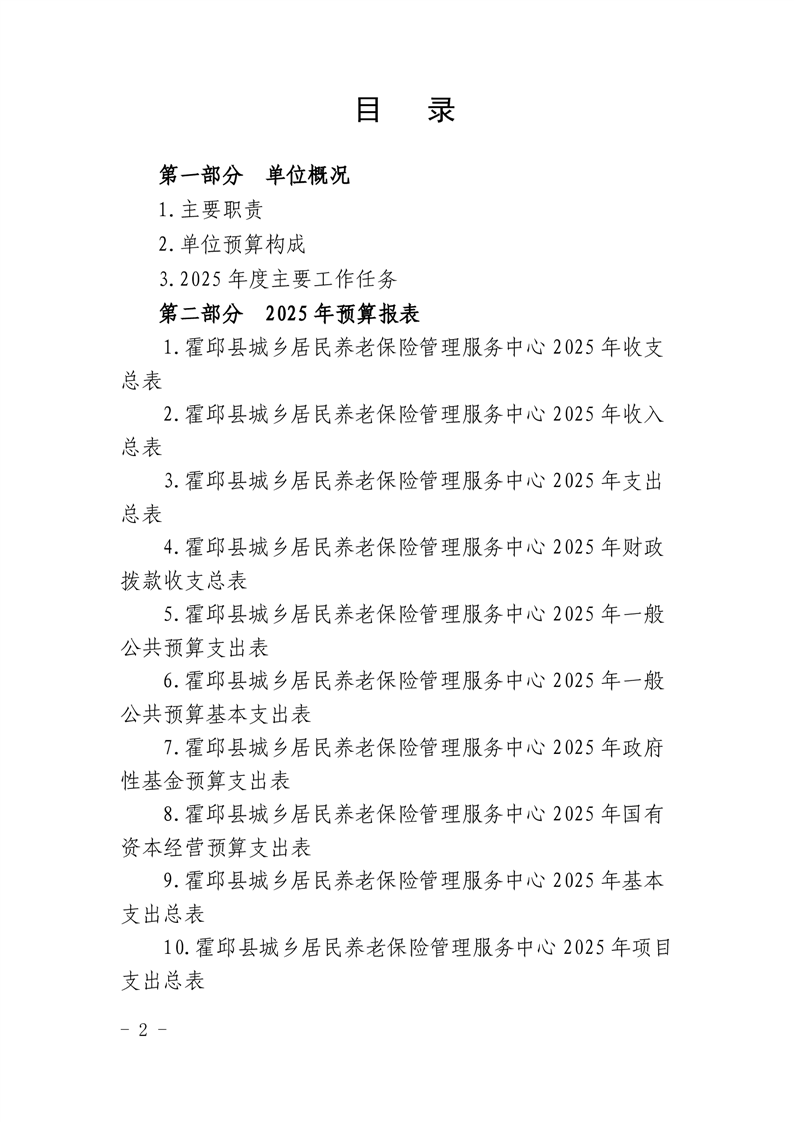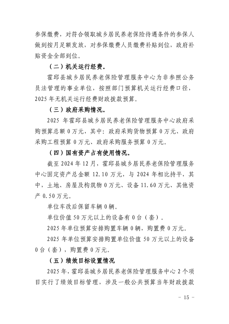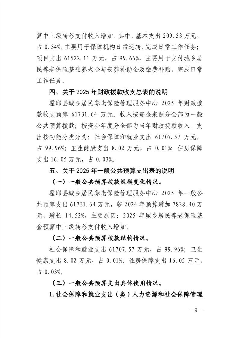 霍邱县城乡居民养老保险管理服务中心2025年单位预算公开