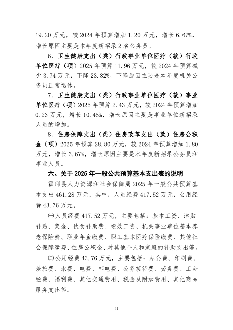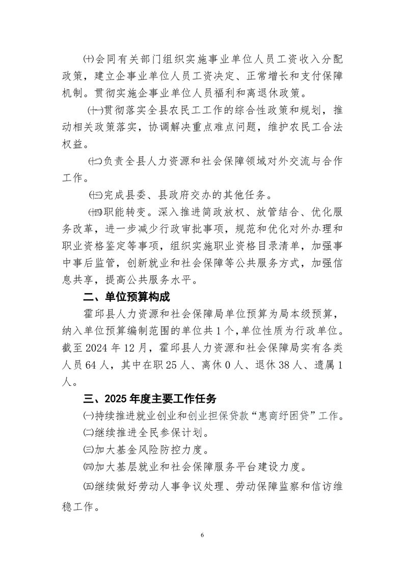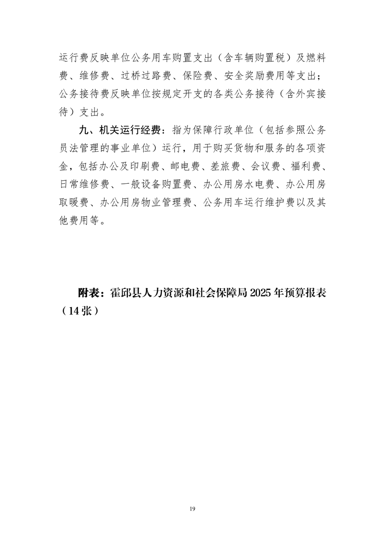 霍邱县人力资源和社会保障局2025年单位预算公开