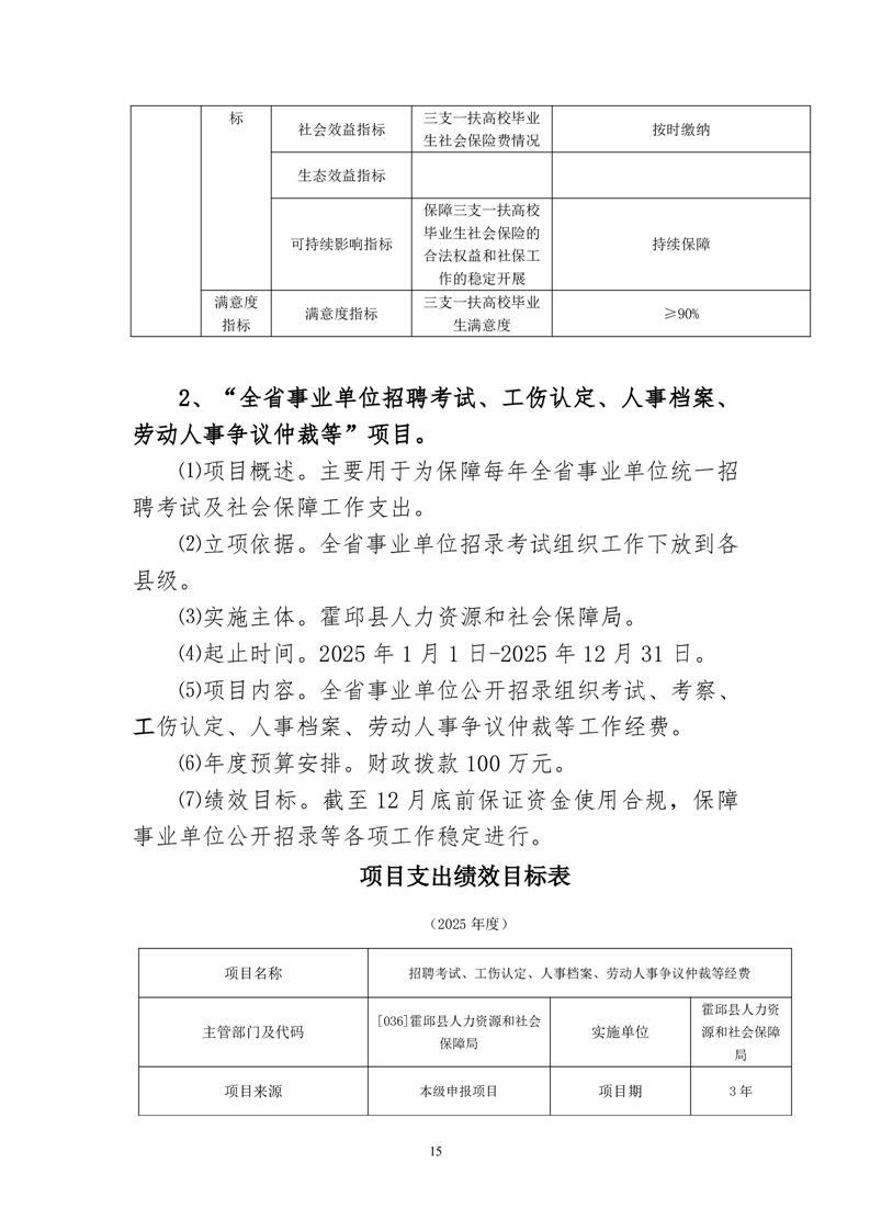 附件3:霍邱县人力资源和社会保障局2025年项目支出绩效目标表公开表_4862.pdf