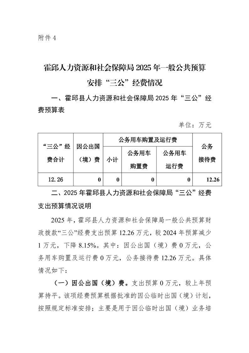 霍邱县人力资源和社会保障局2025年部门一般公共预算安排“三公”经费情况公开