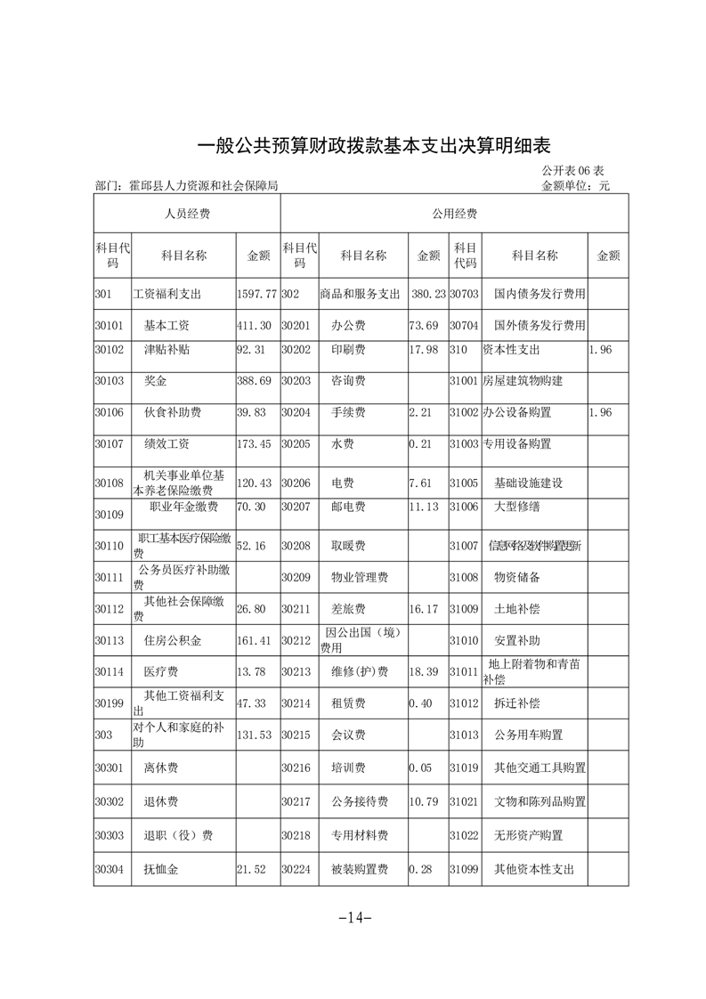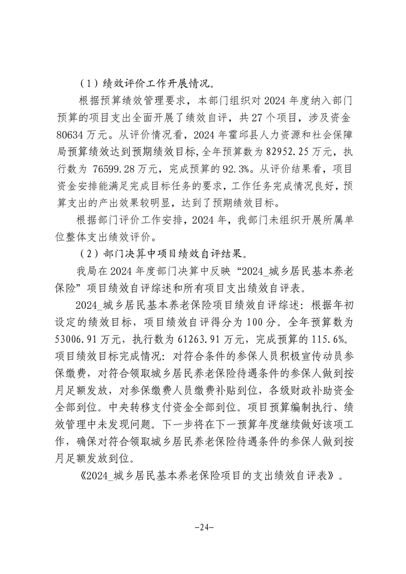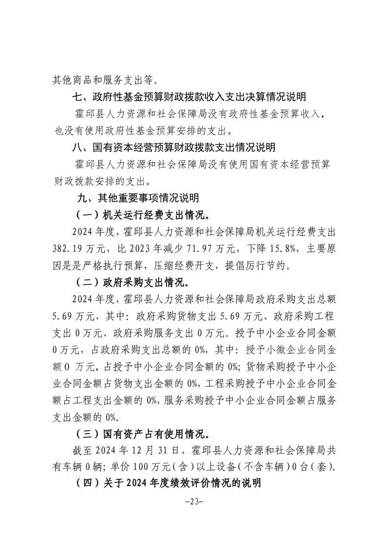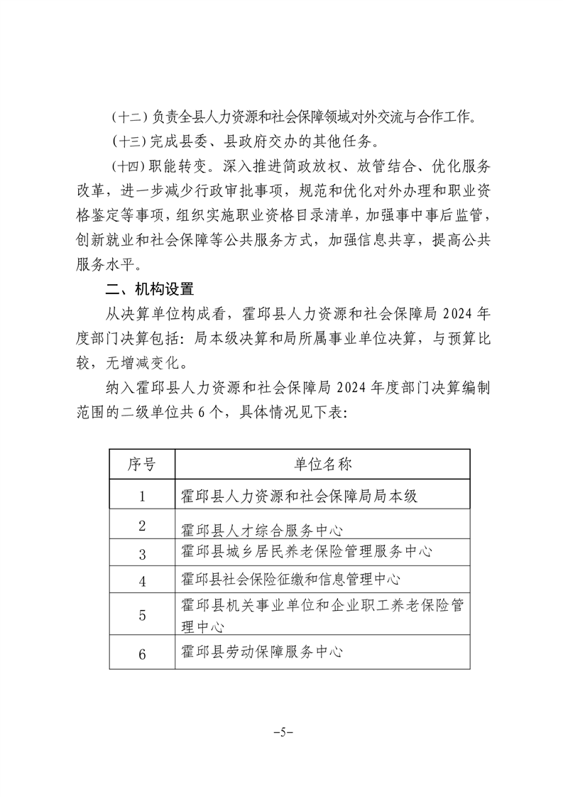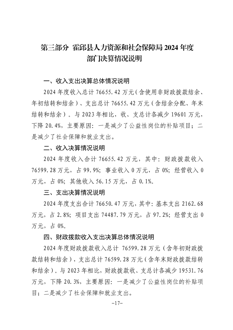 霍邱县人力资源和社会保障局2024年部门决算公开
