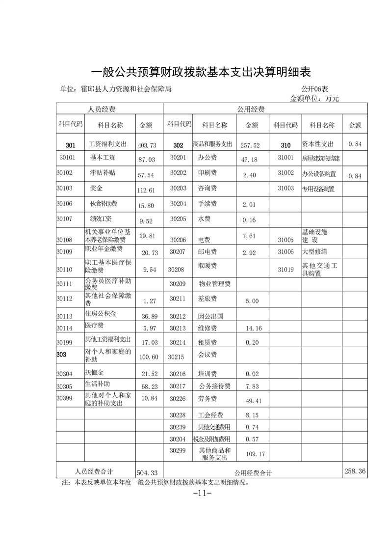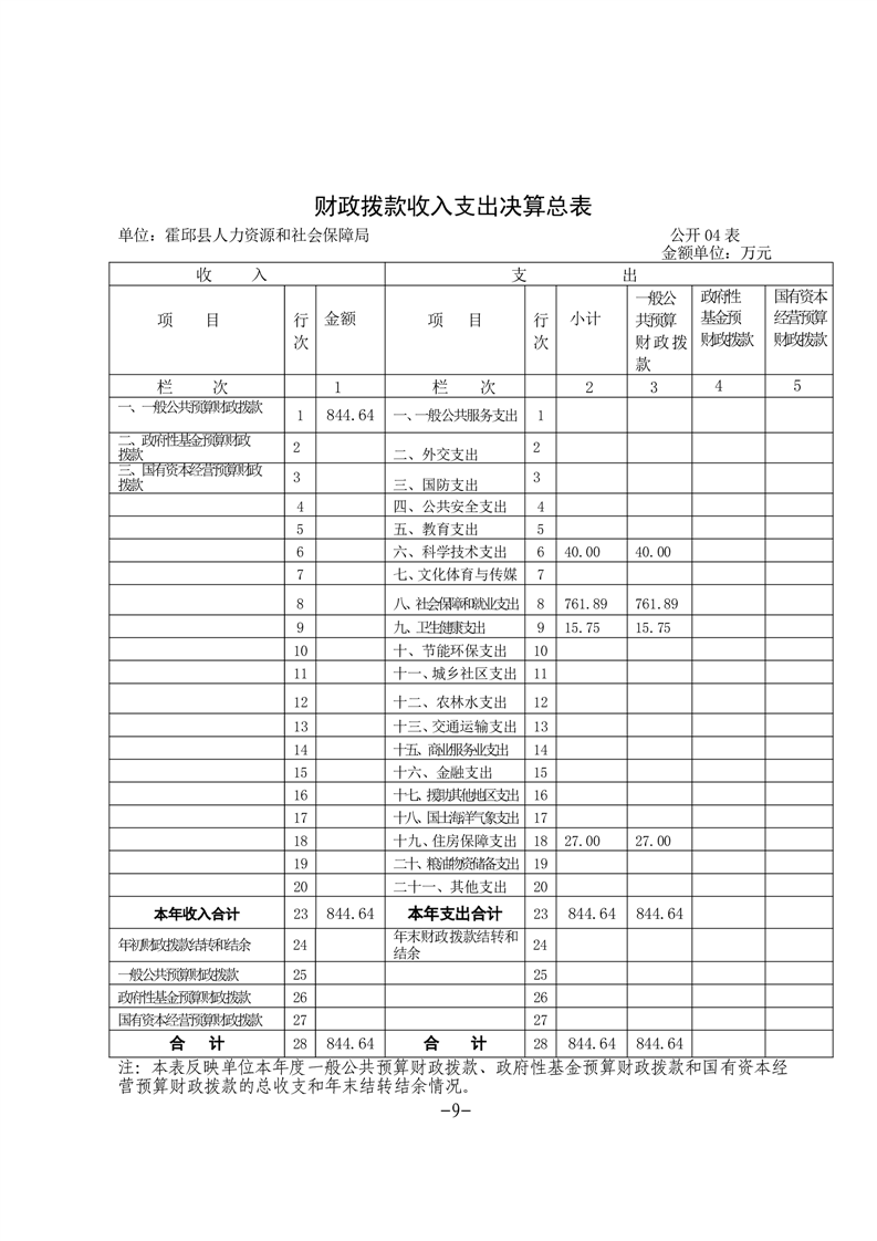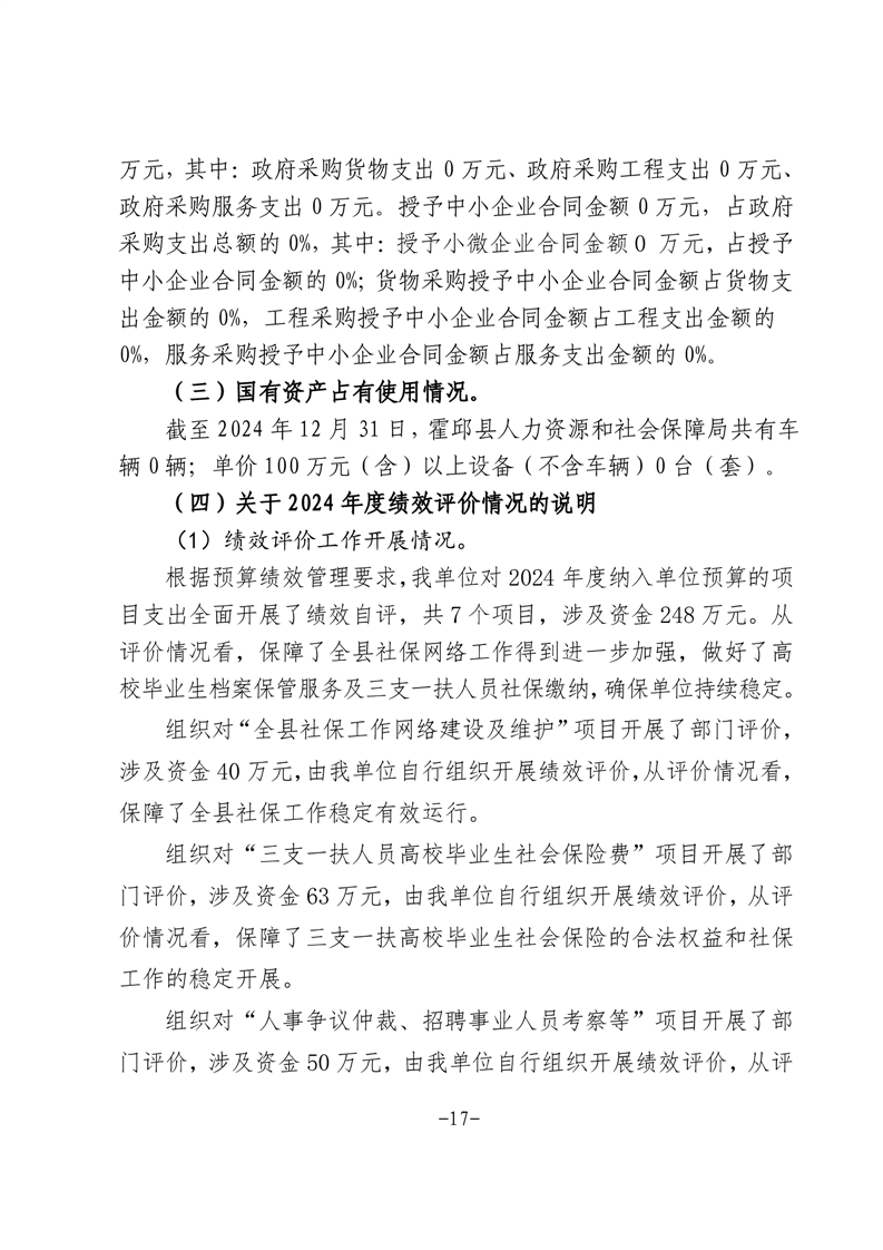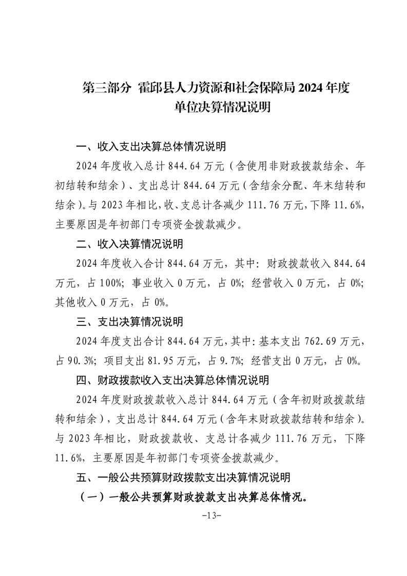 霍邱县人力资源和社会保障局 2024年度单位决算公开