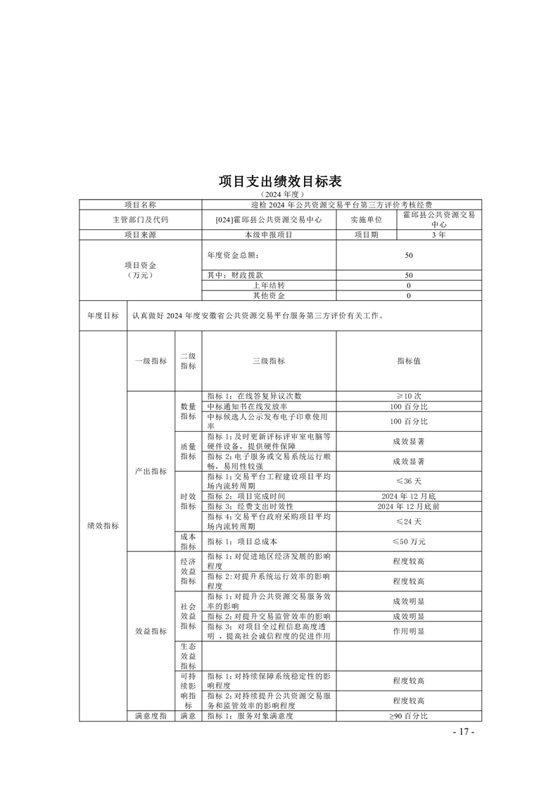 霍邱县公共资源交易中心2024年度项目支出绩效目标.pdf