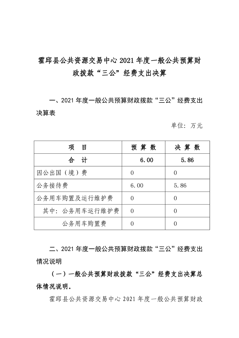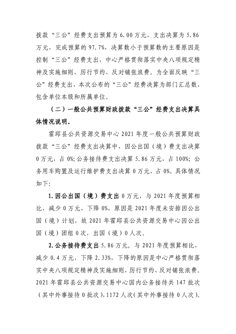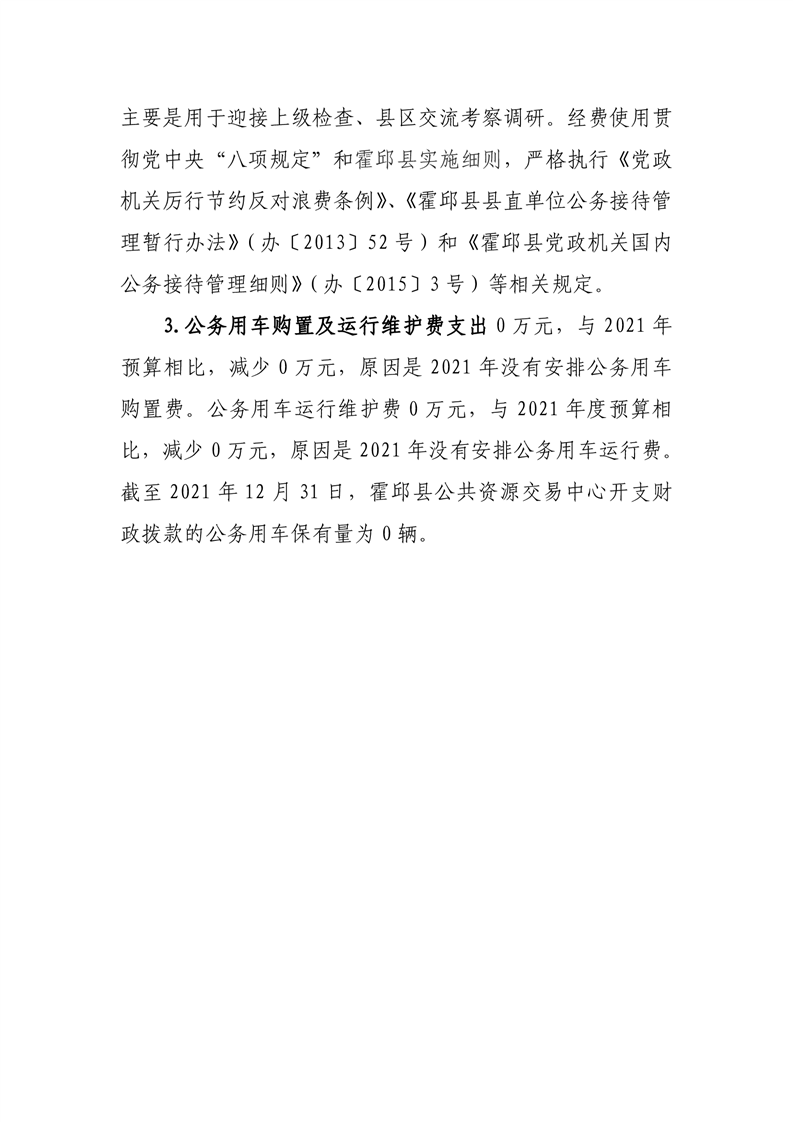 霍邱县公共资源交易中心2021年度一般公共预算财政拨款“三公”经费支出决算