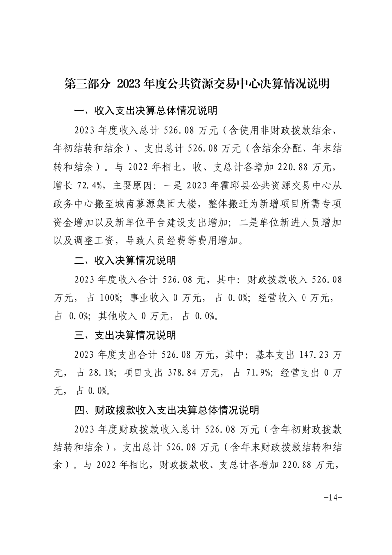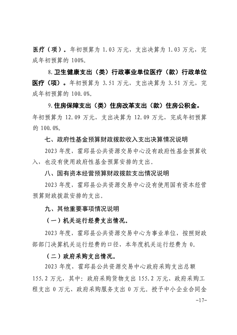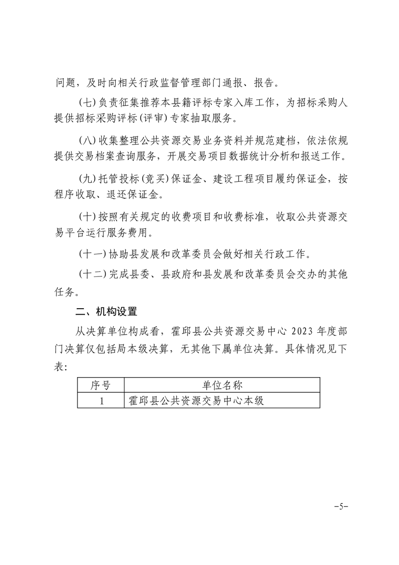 霍邱县公共资源交易中心2023年度部门决算
