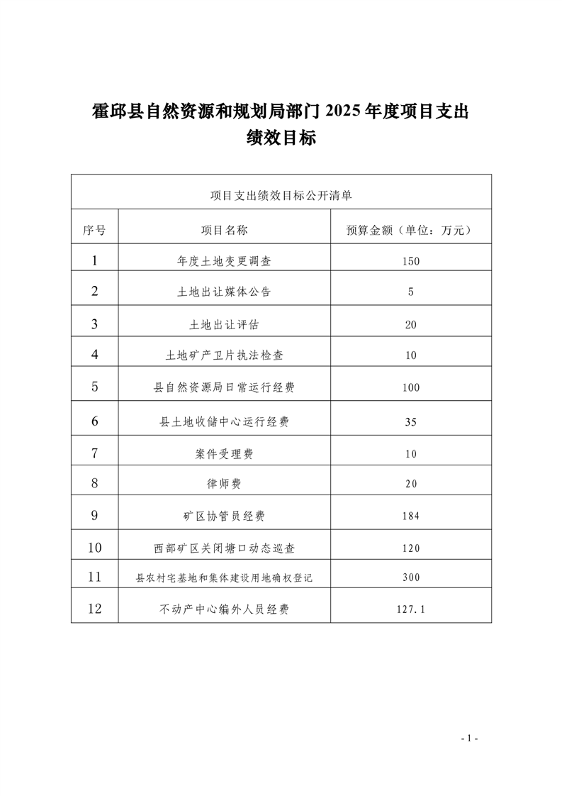 霍邱县自然资源局2025年部门项目支出绩效目标表