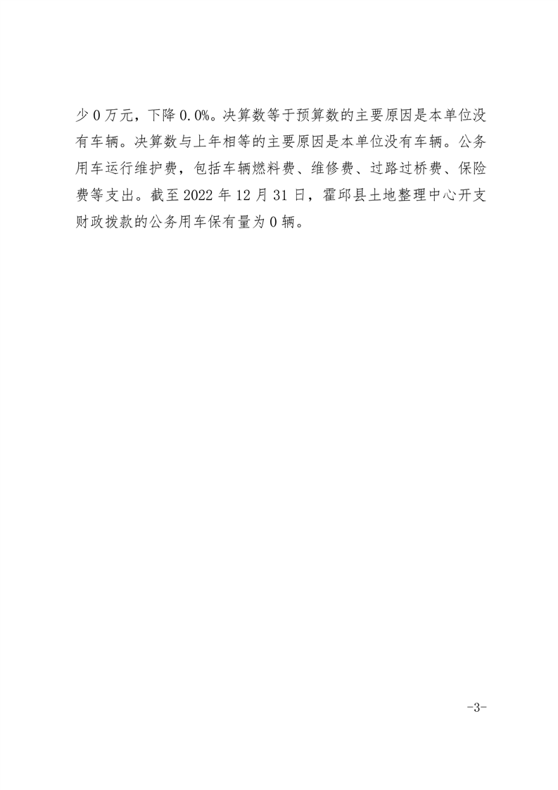 霍邱县土地整理中心单位2022年一般公共决算安排“三公”经费情况