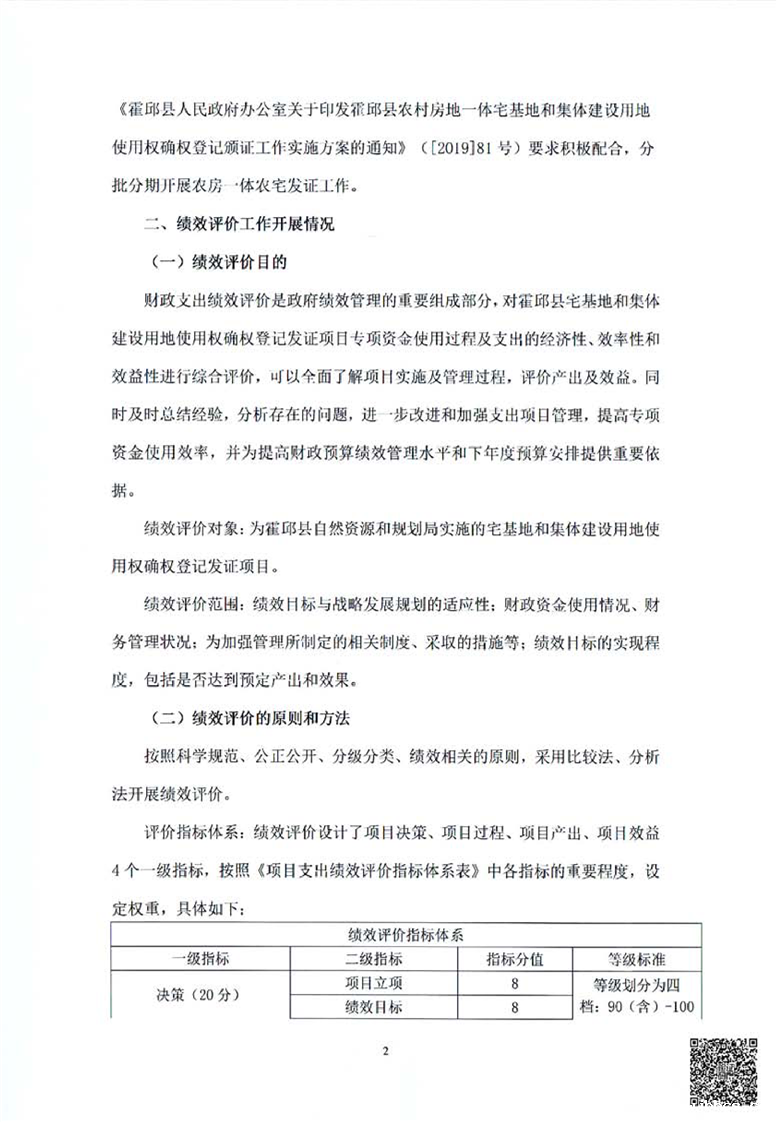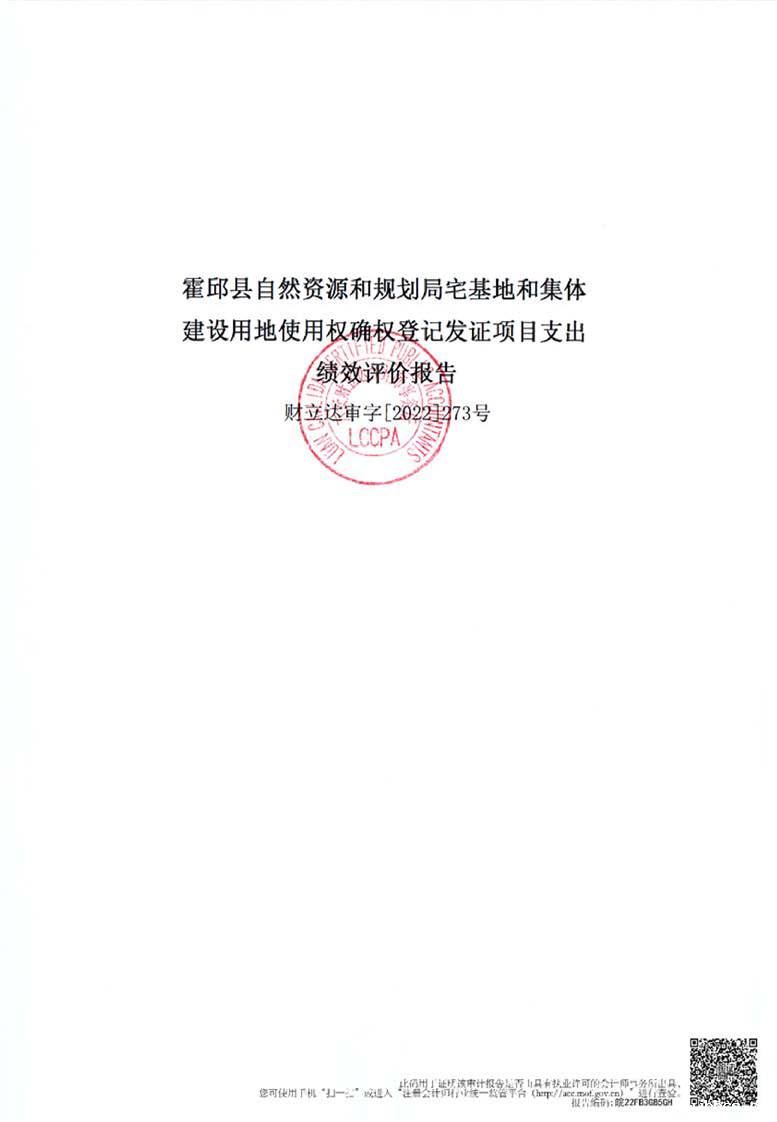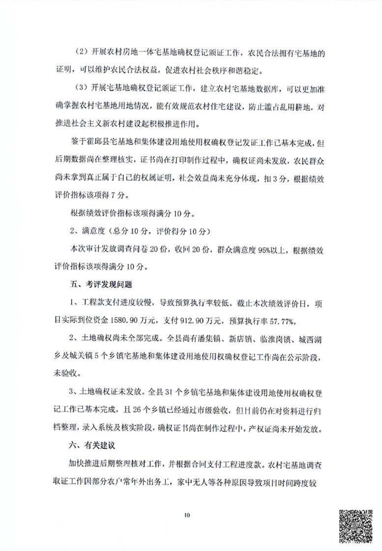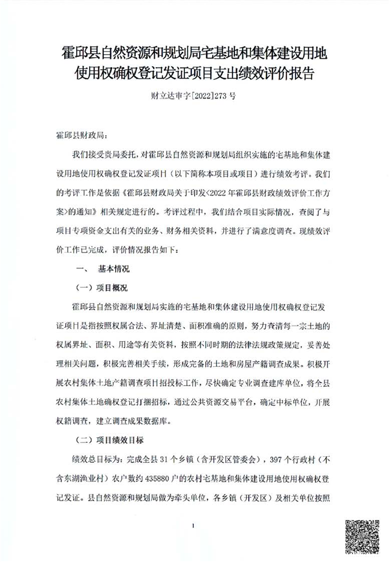 霍邱县自然资源和规划局宅基地和集体建设用地使用权确认登记发证项目支出绩效评价报告