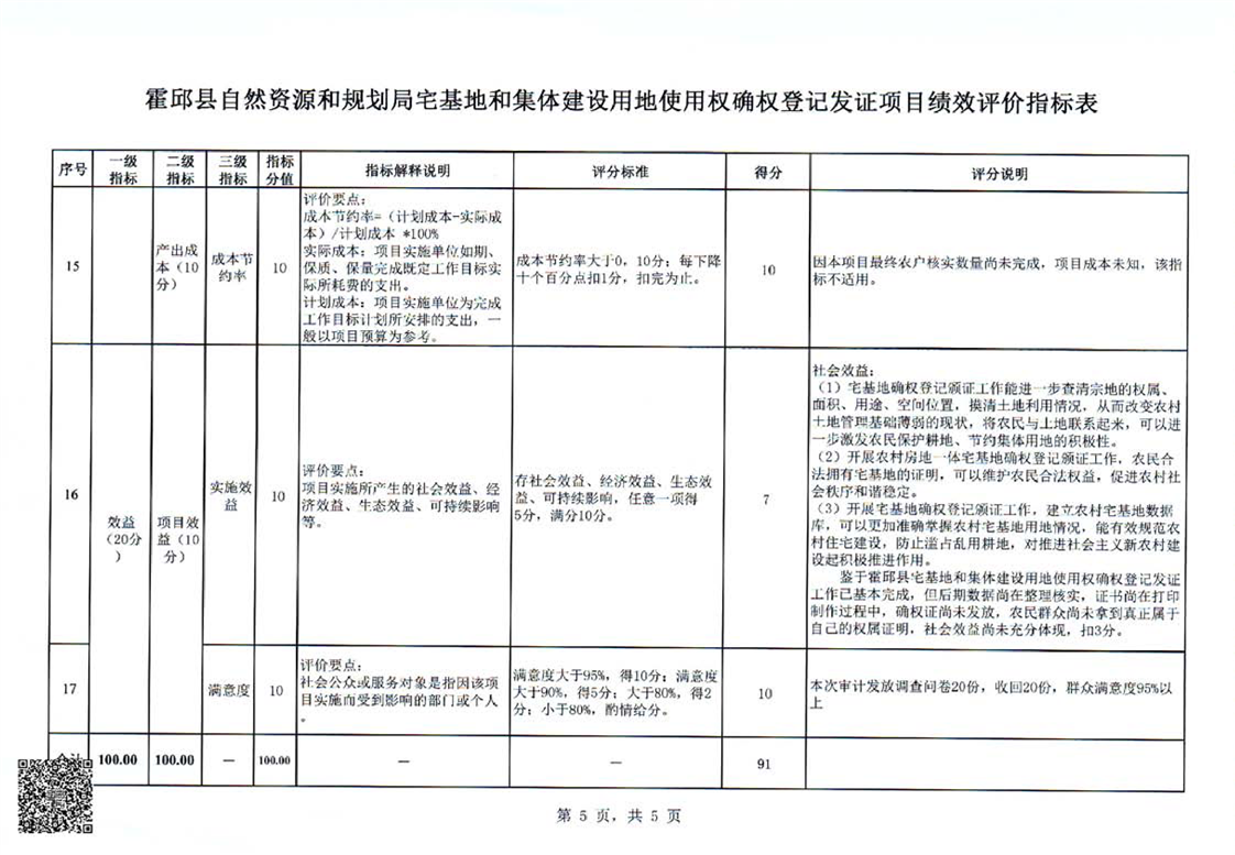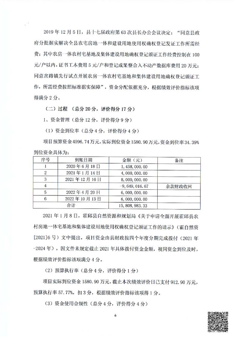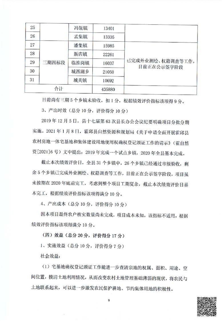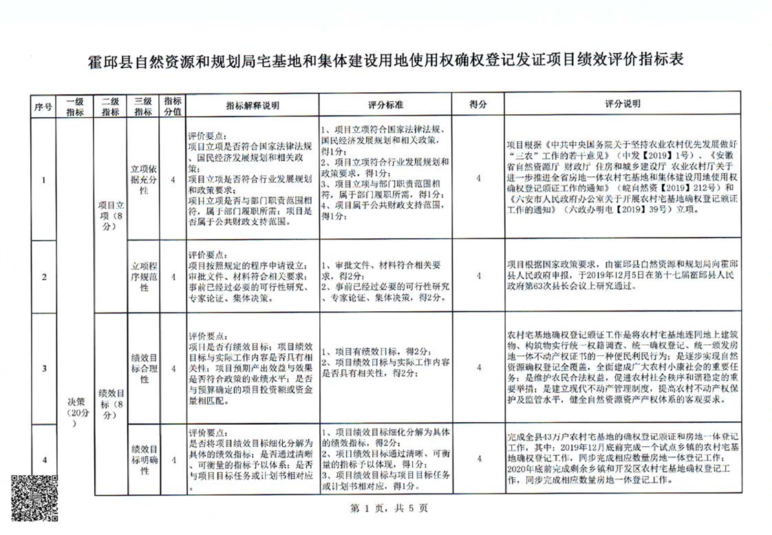 霍邱县自然资源和规划局宅基地和集体建设用地使用权确认登记发证项目支出绩效评价报告